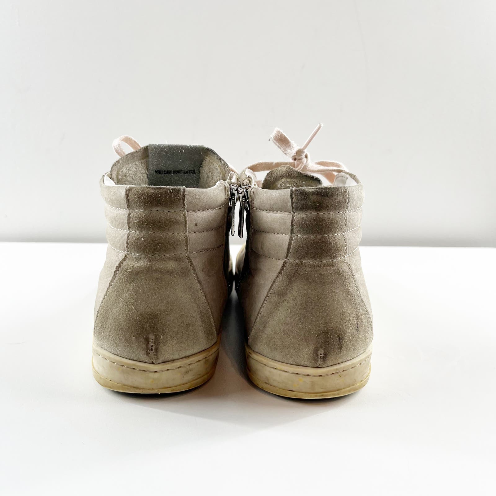 high top, skate, glitter tag, evereve, suede, leather, side zipper, lace up, court shoes, comfort, intentionally distressed, high top