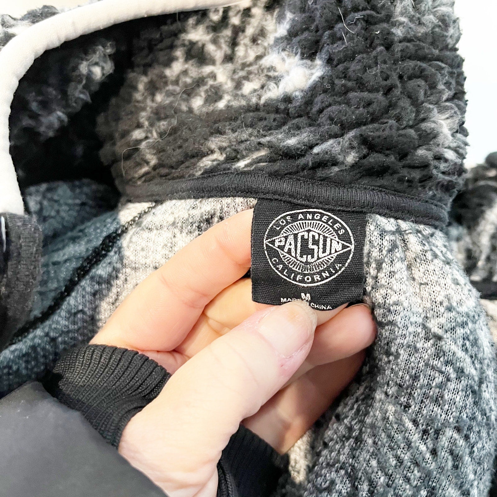 Pacsun Celestial Doodle Cropped Full Zip Sherpa Fleece Jacket Black White Medium