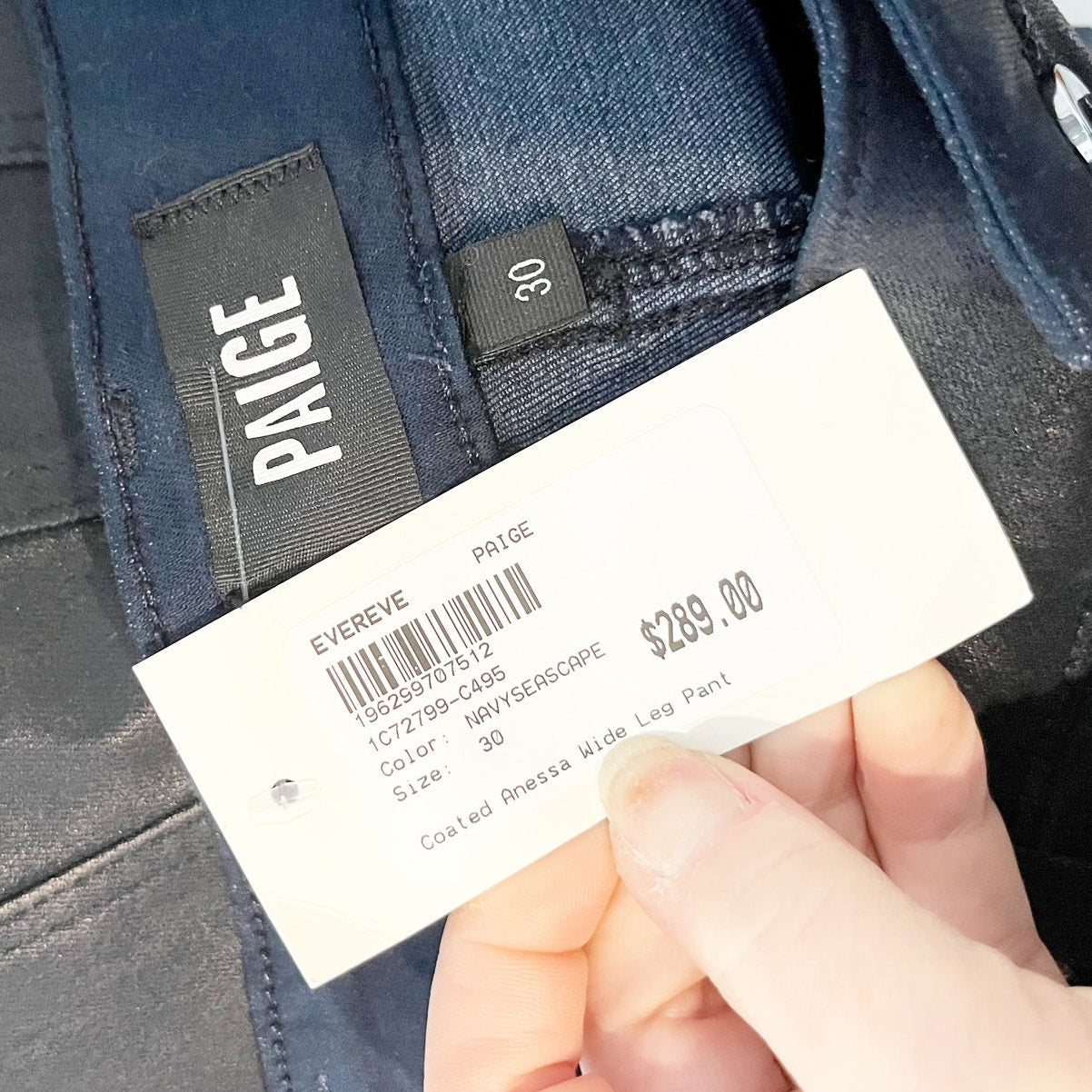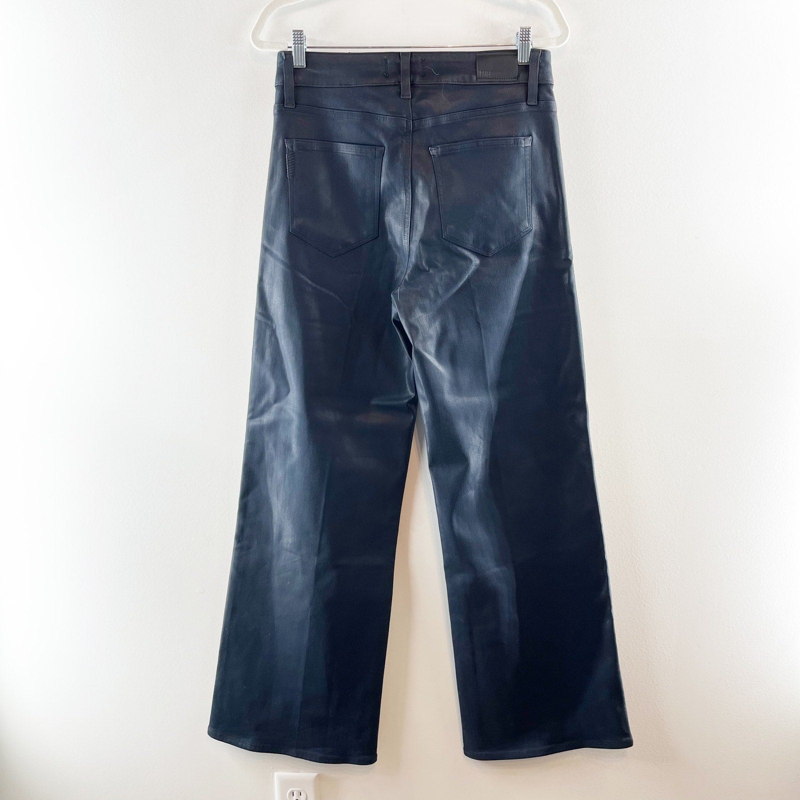 Paige High Rise Coated Anessa Wide Leg Pants In Navy Seascape Blue 30 / 10