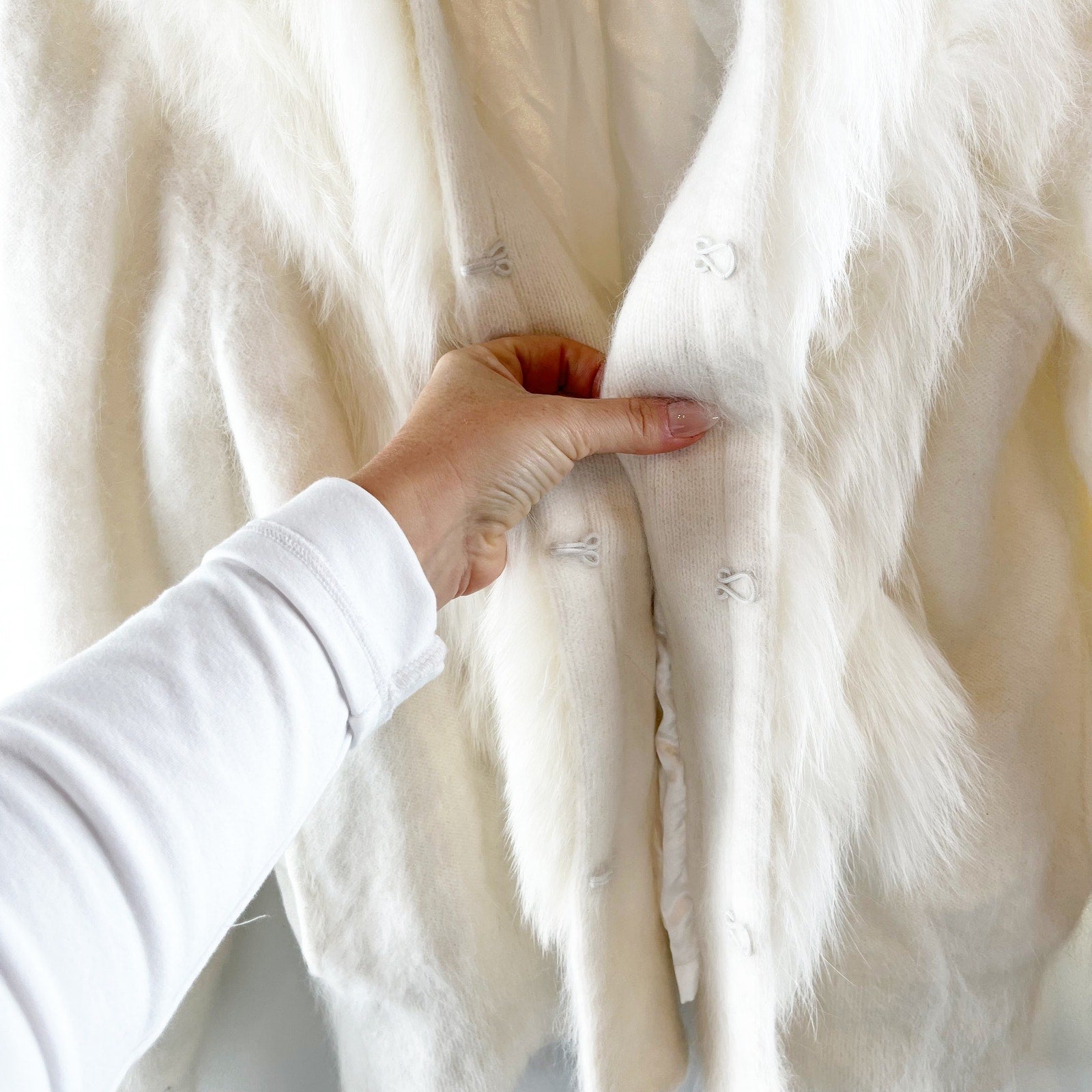 long sleeve, rabbit fur, open front, cabincore, minimalist, lined, cardigan, sweater, relaxed fit, cardi, cabincore, winter, glam, clasp closure, jacket