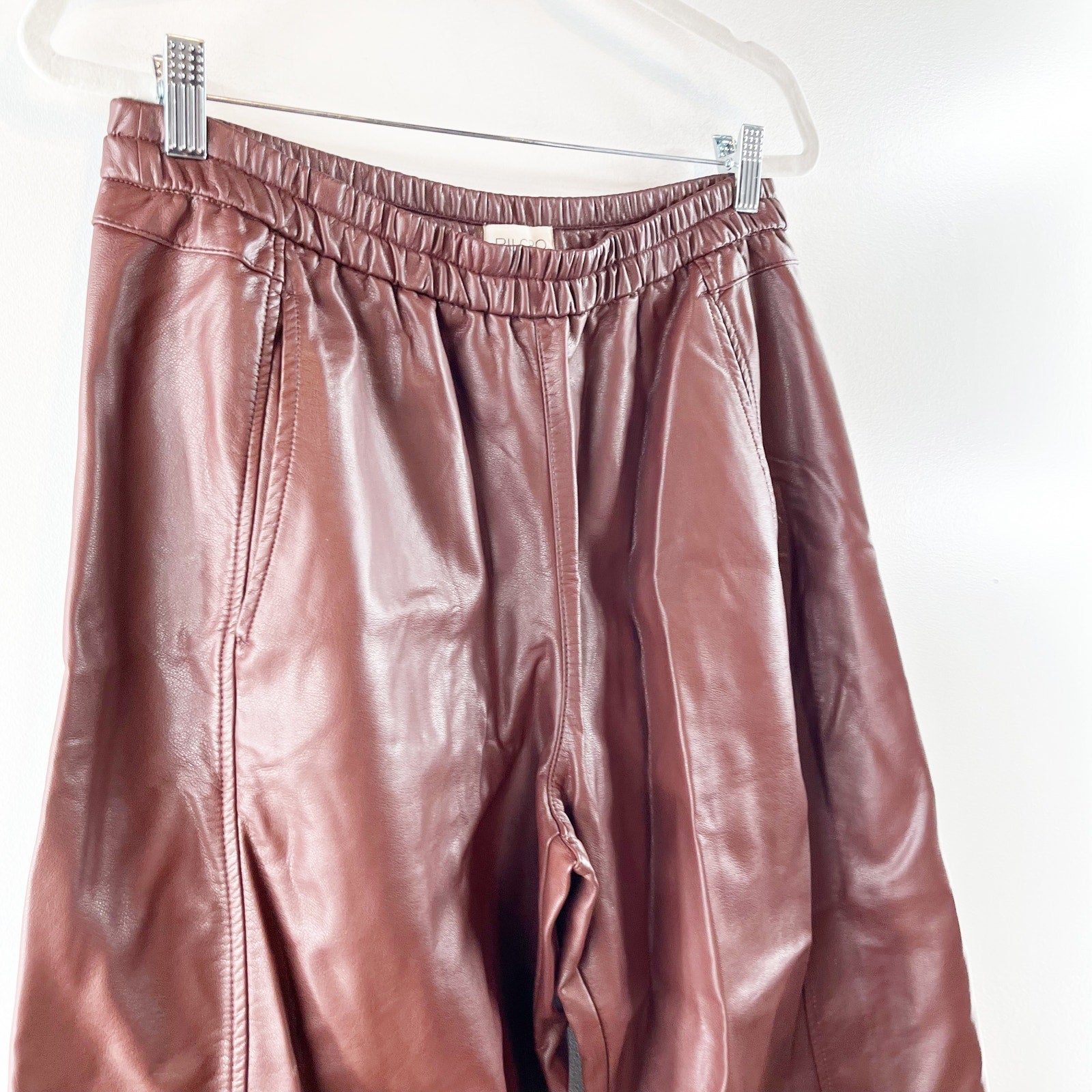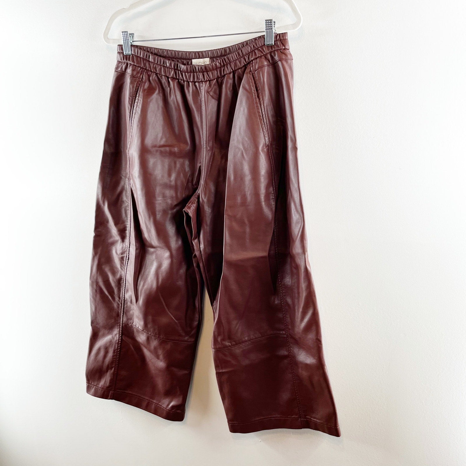 Pilcro Anthropologie The Breaker Cropped Wide Leg Faux Leather Pants Burgundy MP