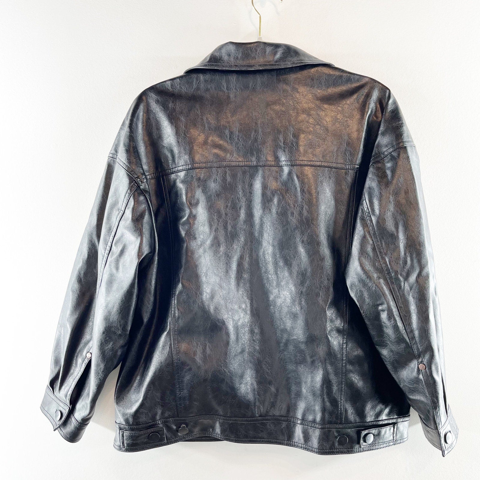 long sleeve, button closure, chest pocket, button cuffs, faux leather, biker, moto, boyfriend jacket, rugged, streetwear, gothic, goth, shacket