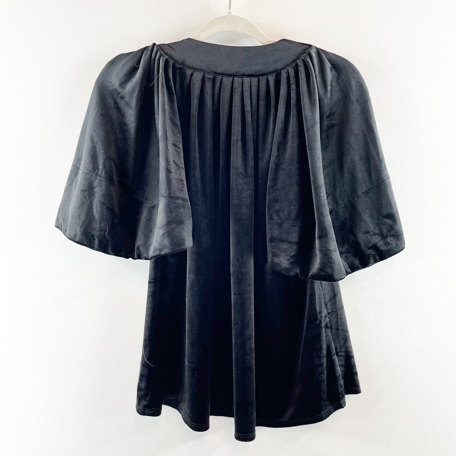 Pomander Place Tuckernuck Velvet Finley Flutter Sleeve Top Blouse Black XS