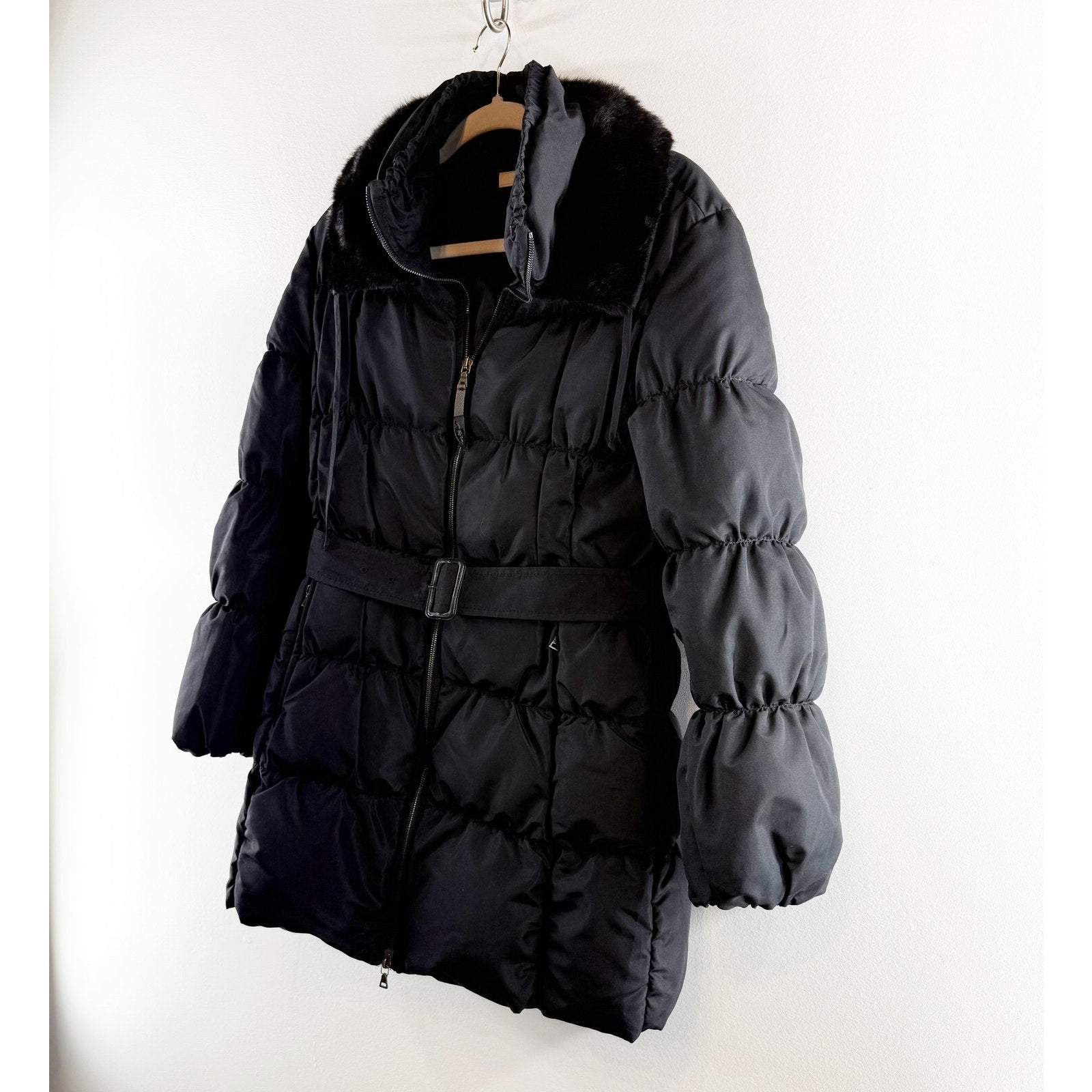 Prada Down Fur Trim Parka Puffer Coat Jacket Belted Black 42 / 12