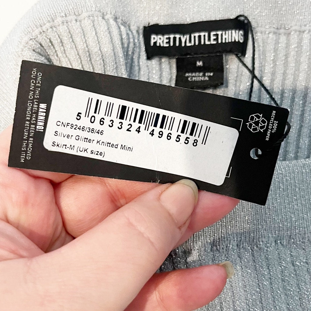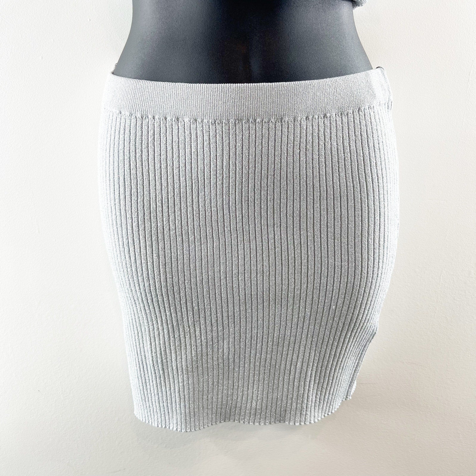 PrettyLittleThing Silver Glitter Knit Open Back Top and Mini Skirt Set S / M