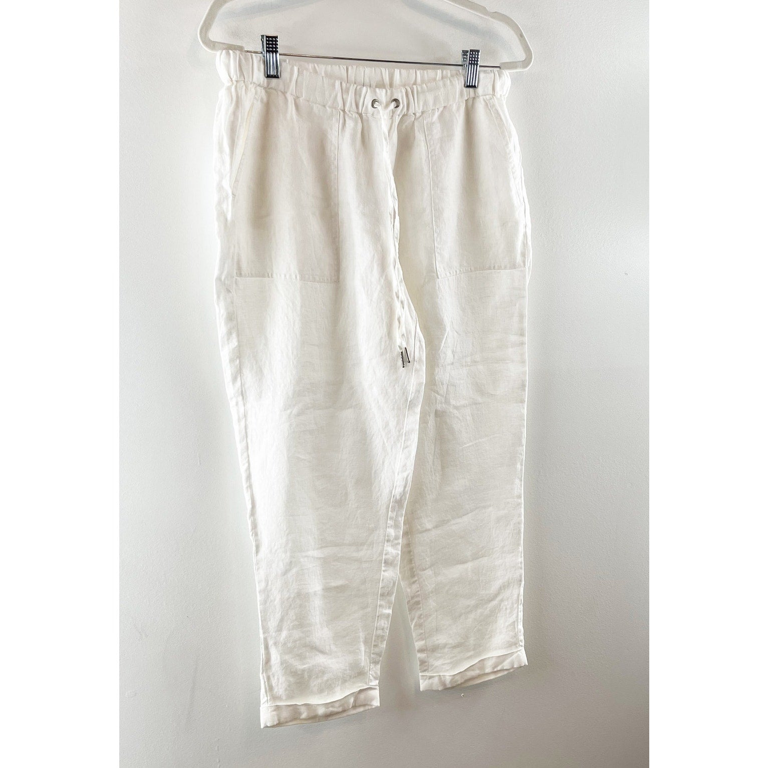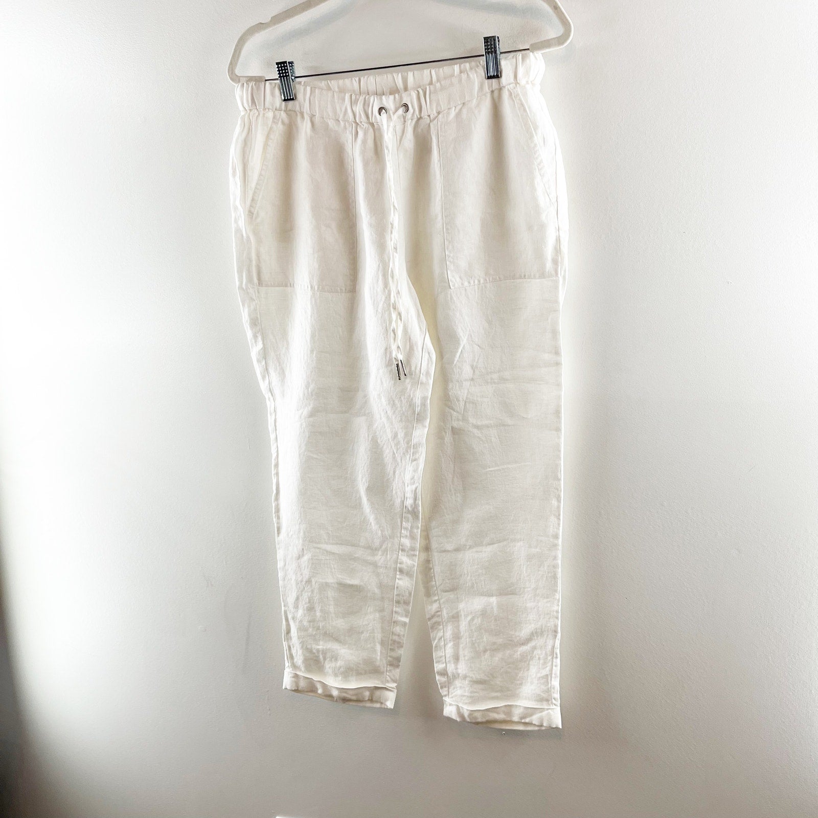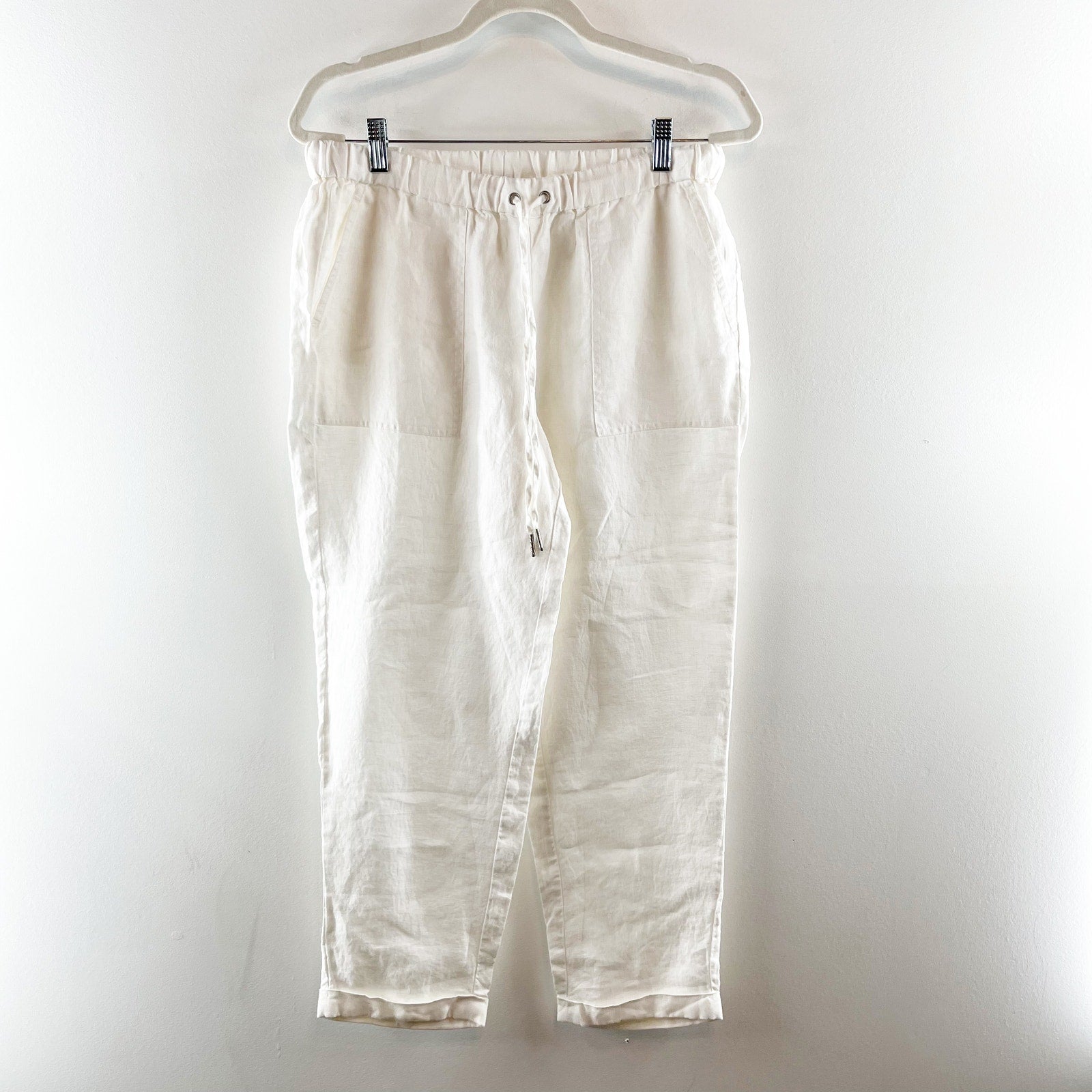 high rise, pull on, cuffed hem, ankle, drawstring, 100% linen, beachy, boho, casual, lagenlook