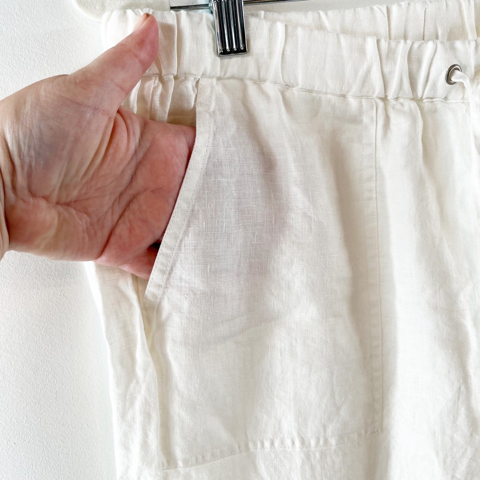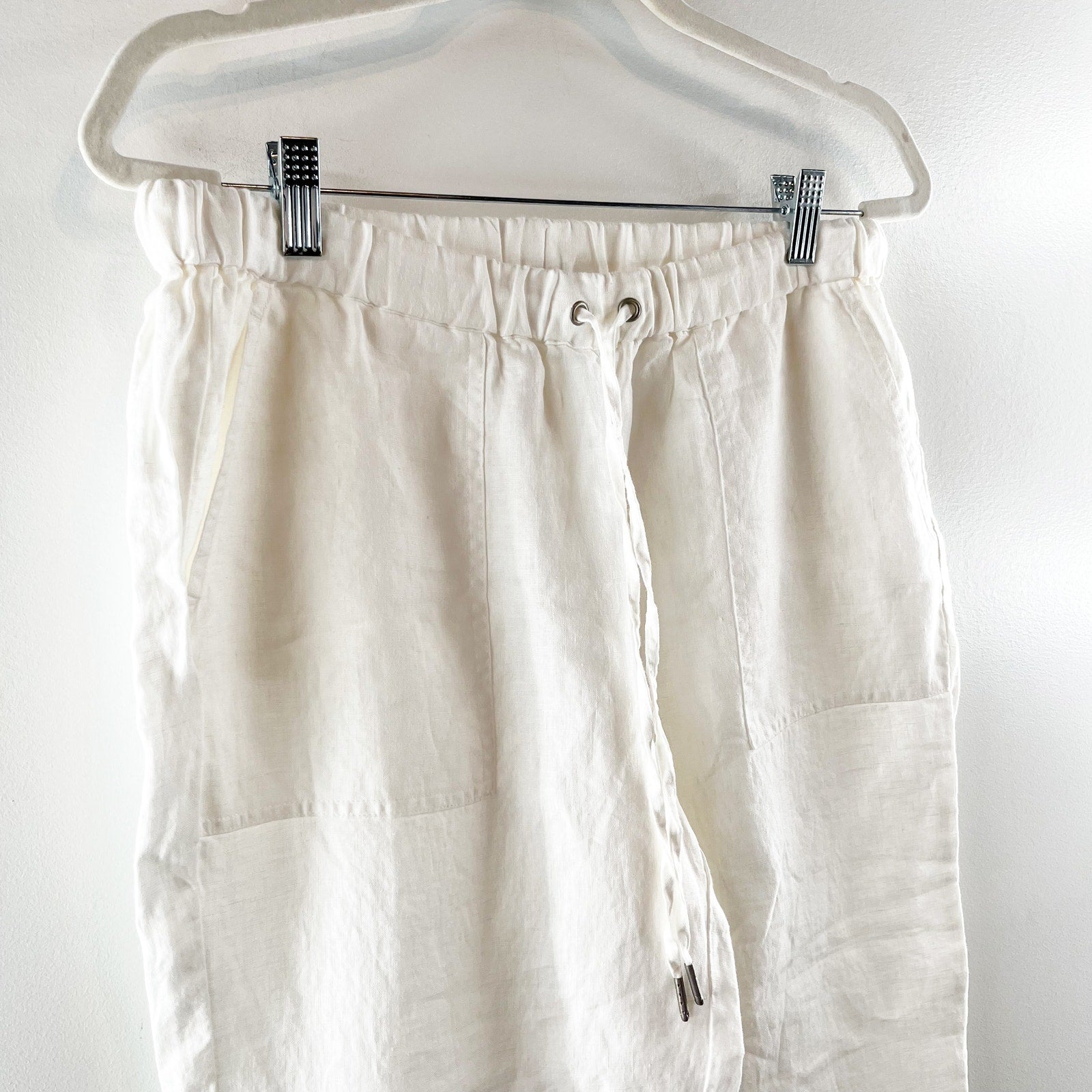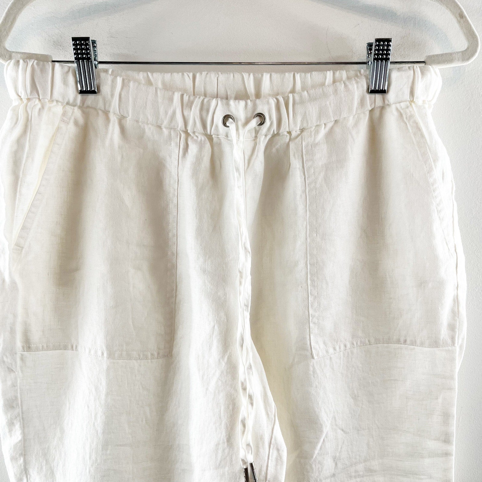high rise, pull on, cuffed hem, ankle, drawstring, 100% linen, beachy, boho, casual, lagenlook