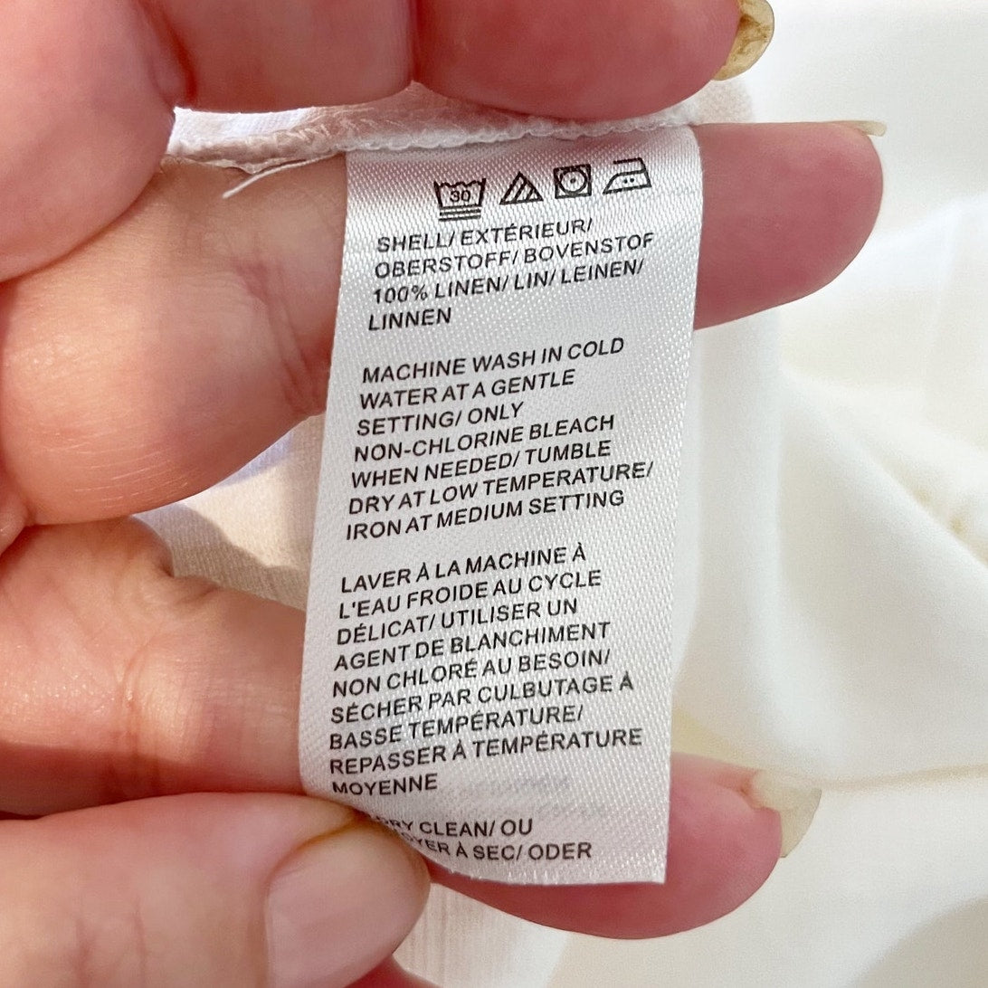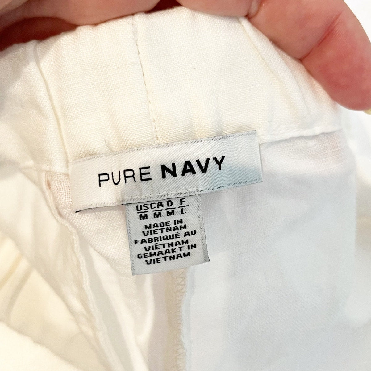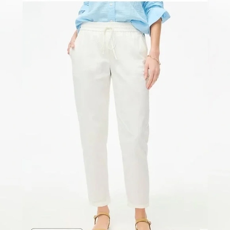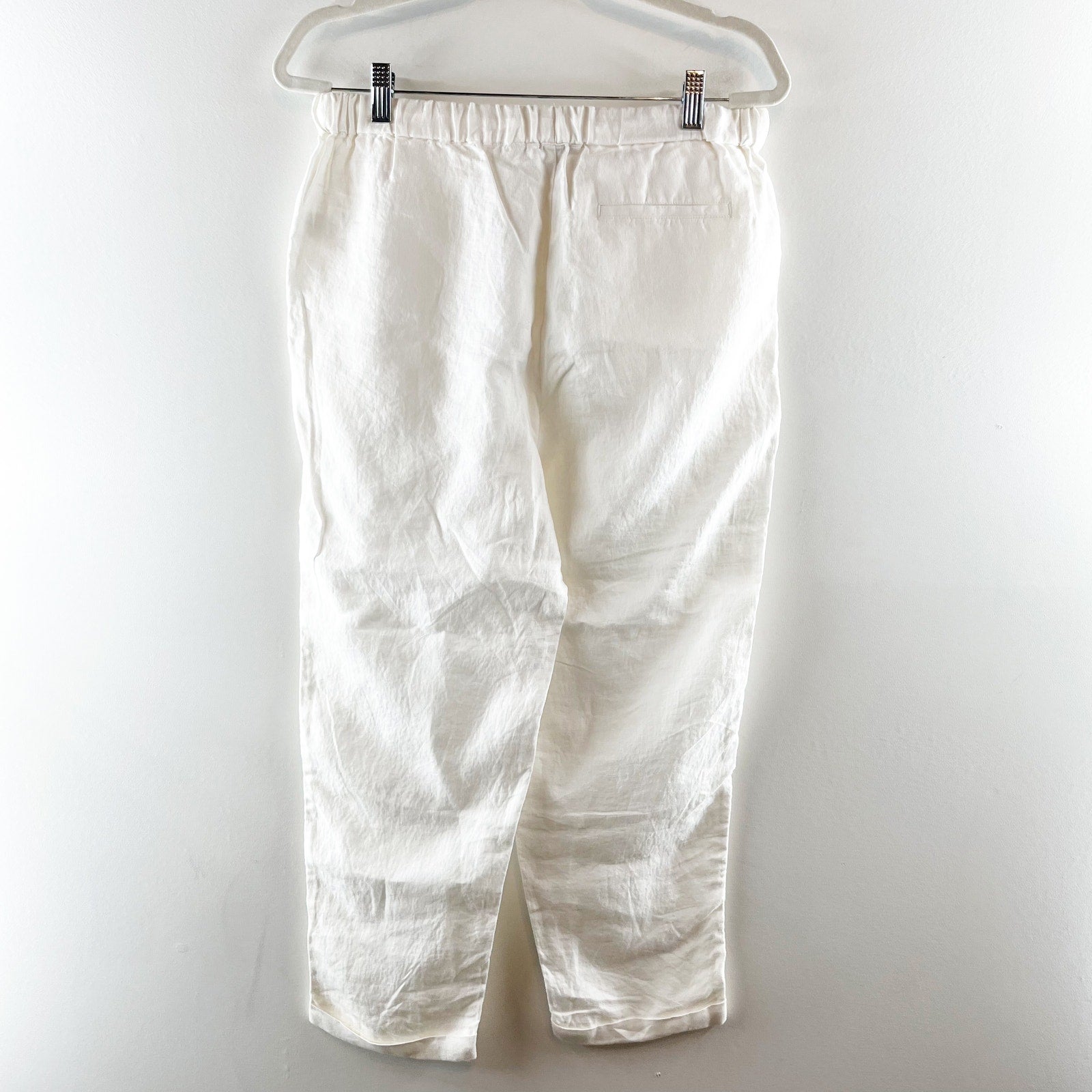Pure Navy High Rise Linen Pull On Elastic Waist Ankle Pants White Medium