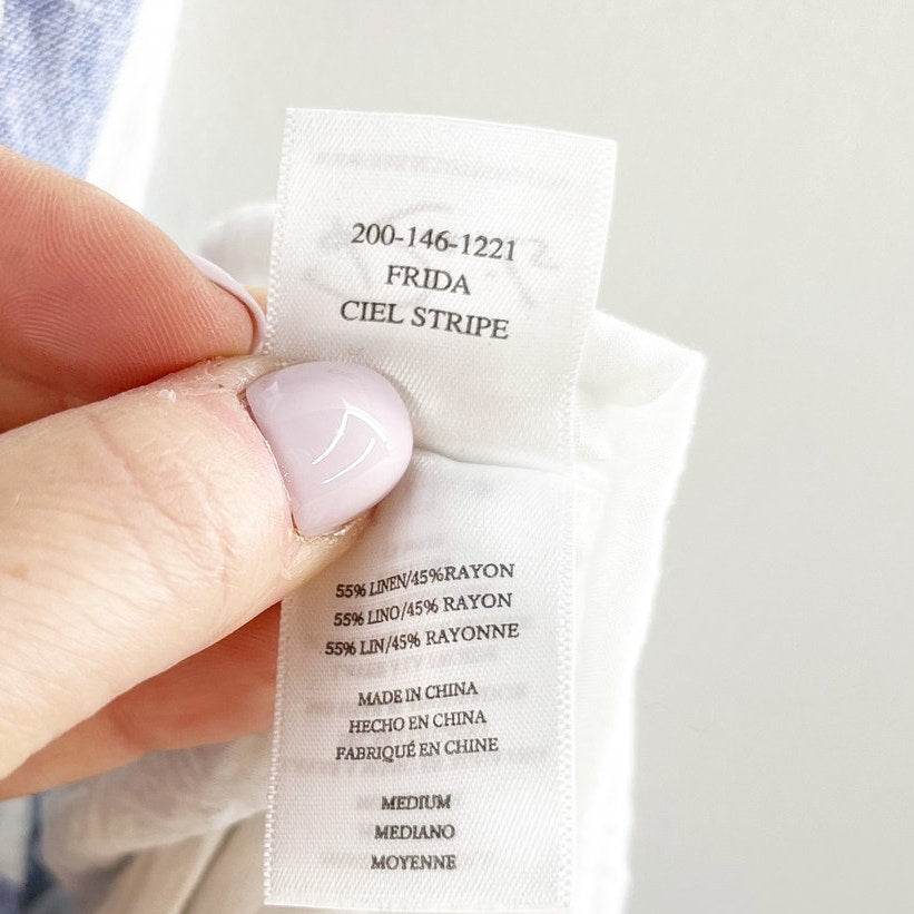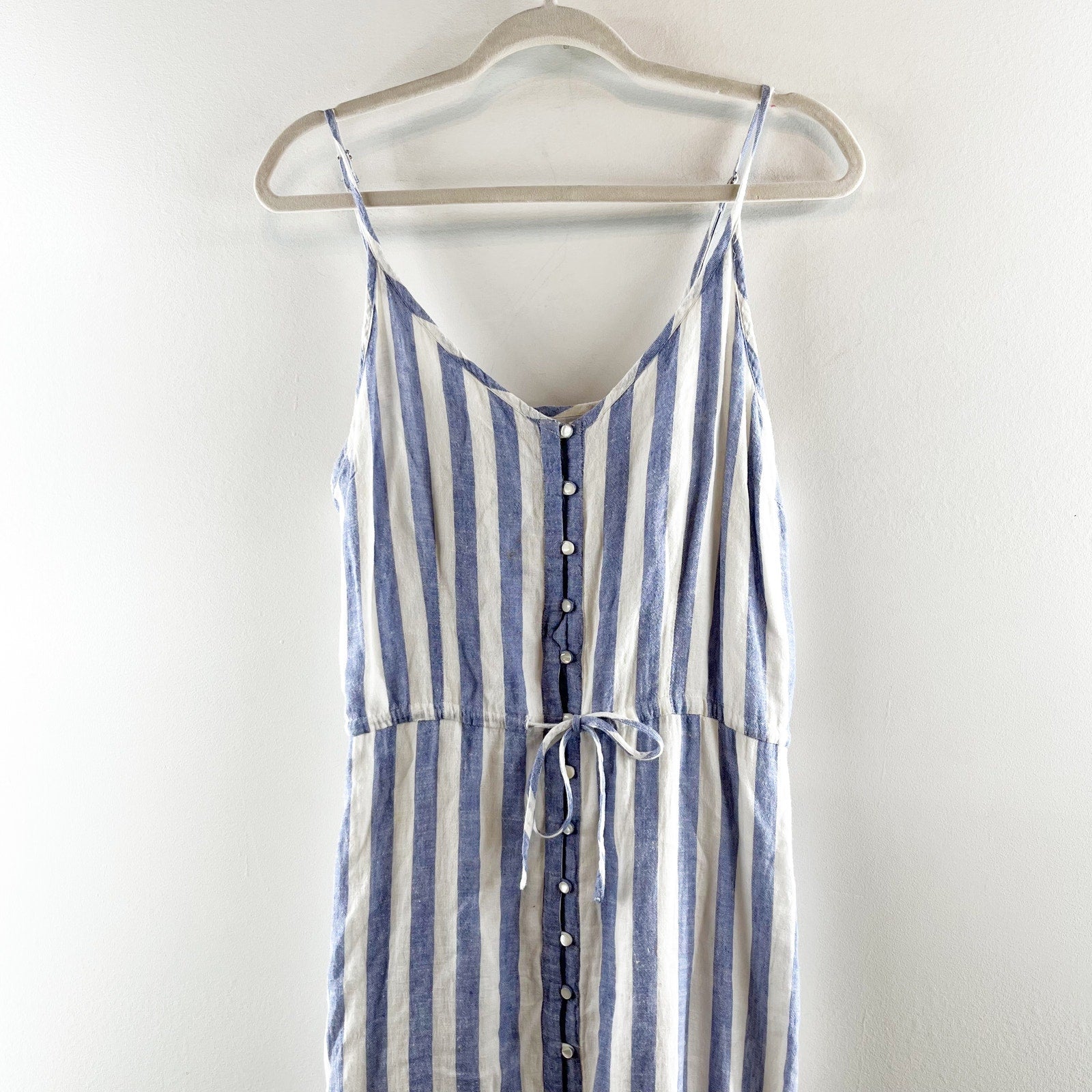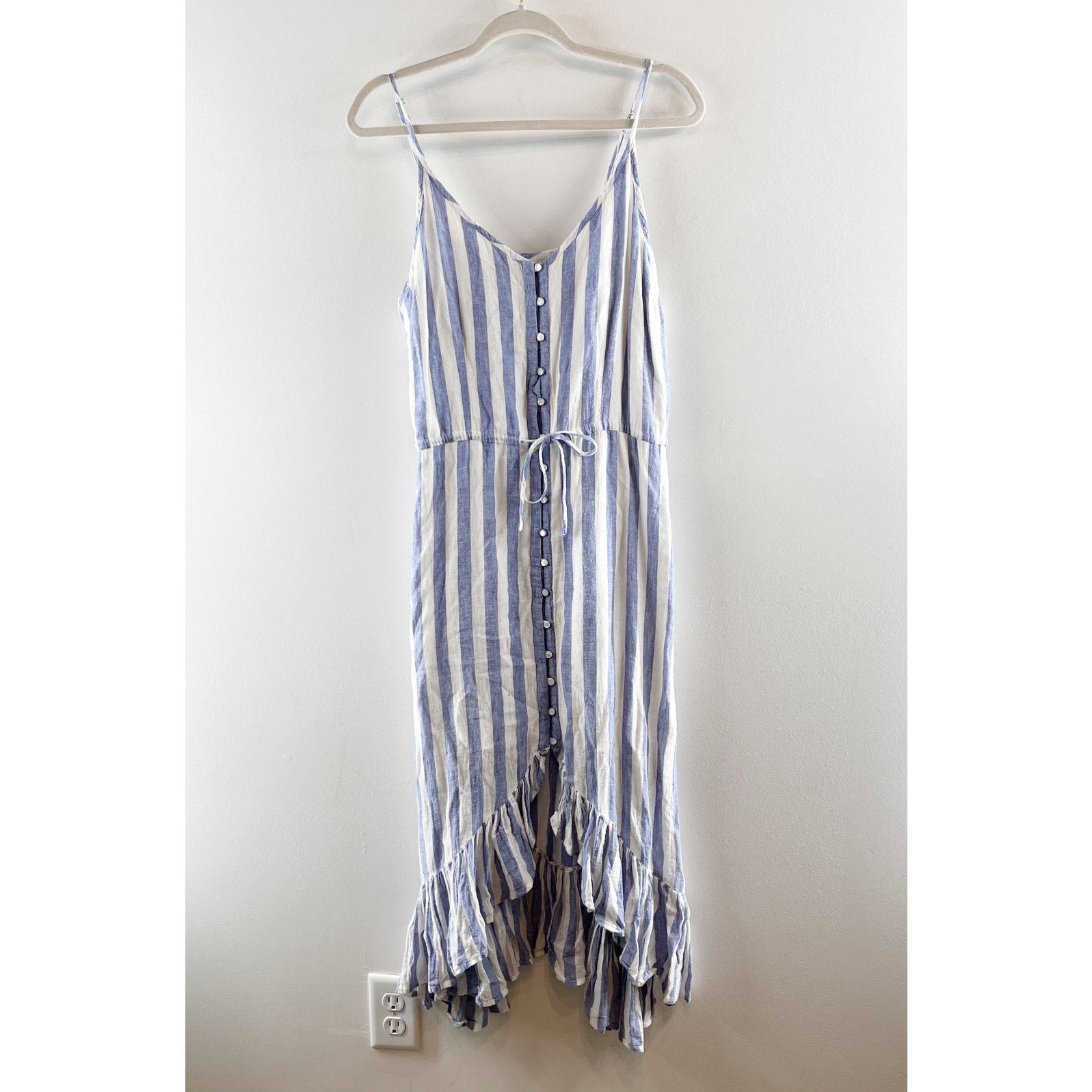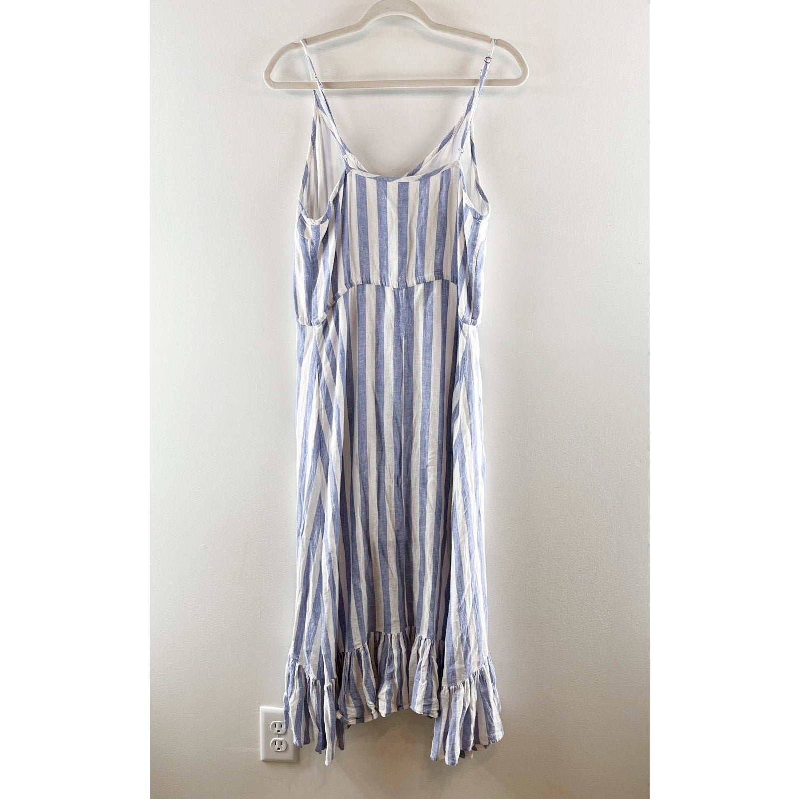 Rails Frida Ciel Striped Linen Ruffle Hem Midi Dress Blue White Medium