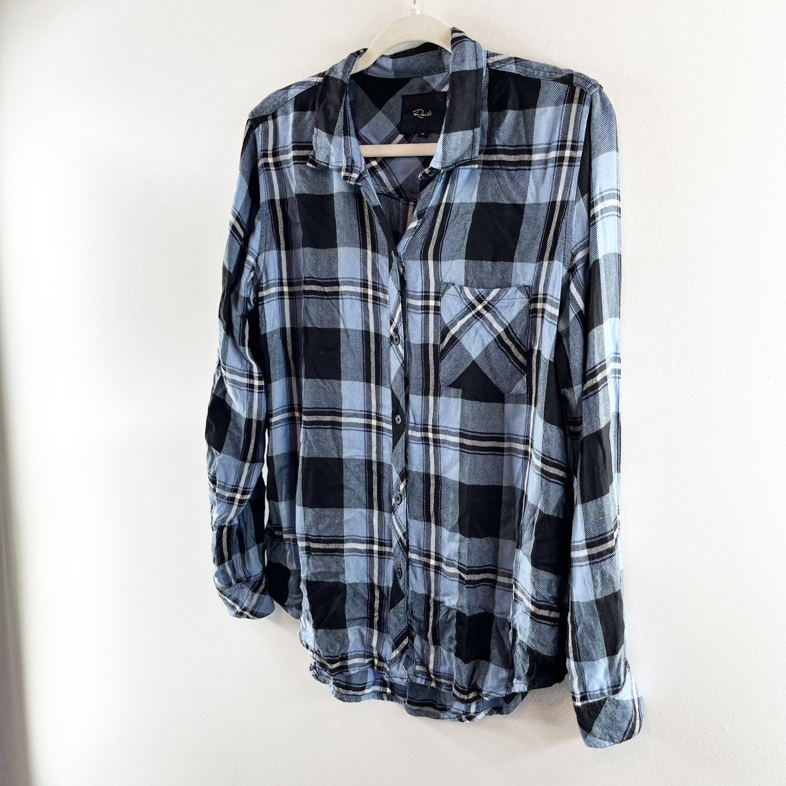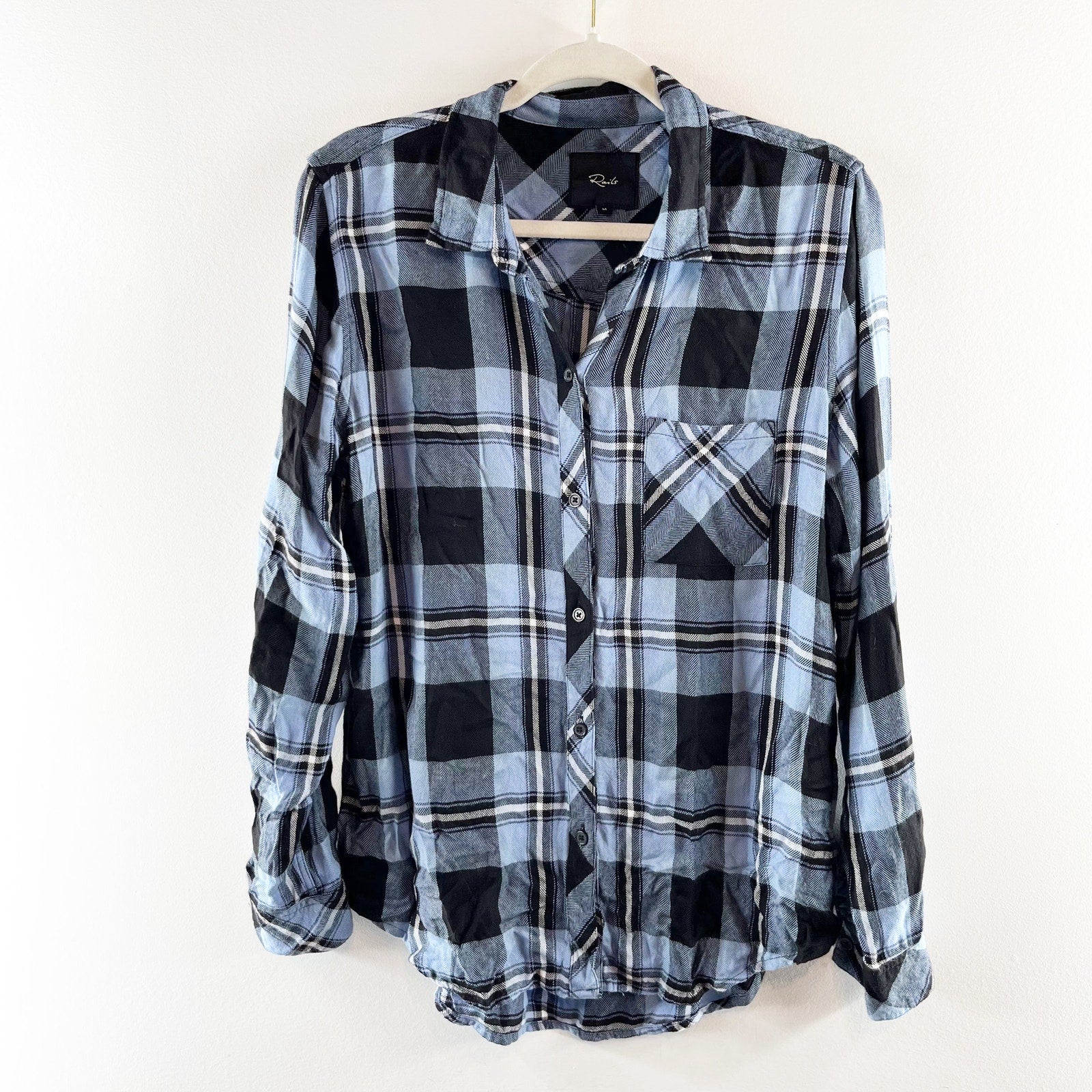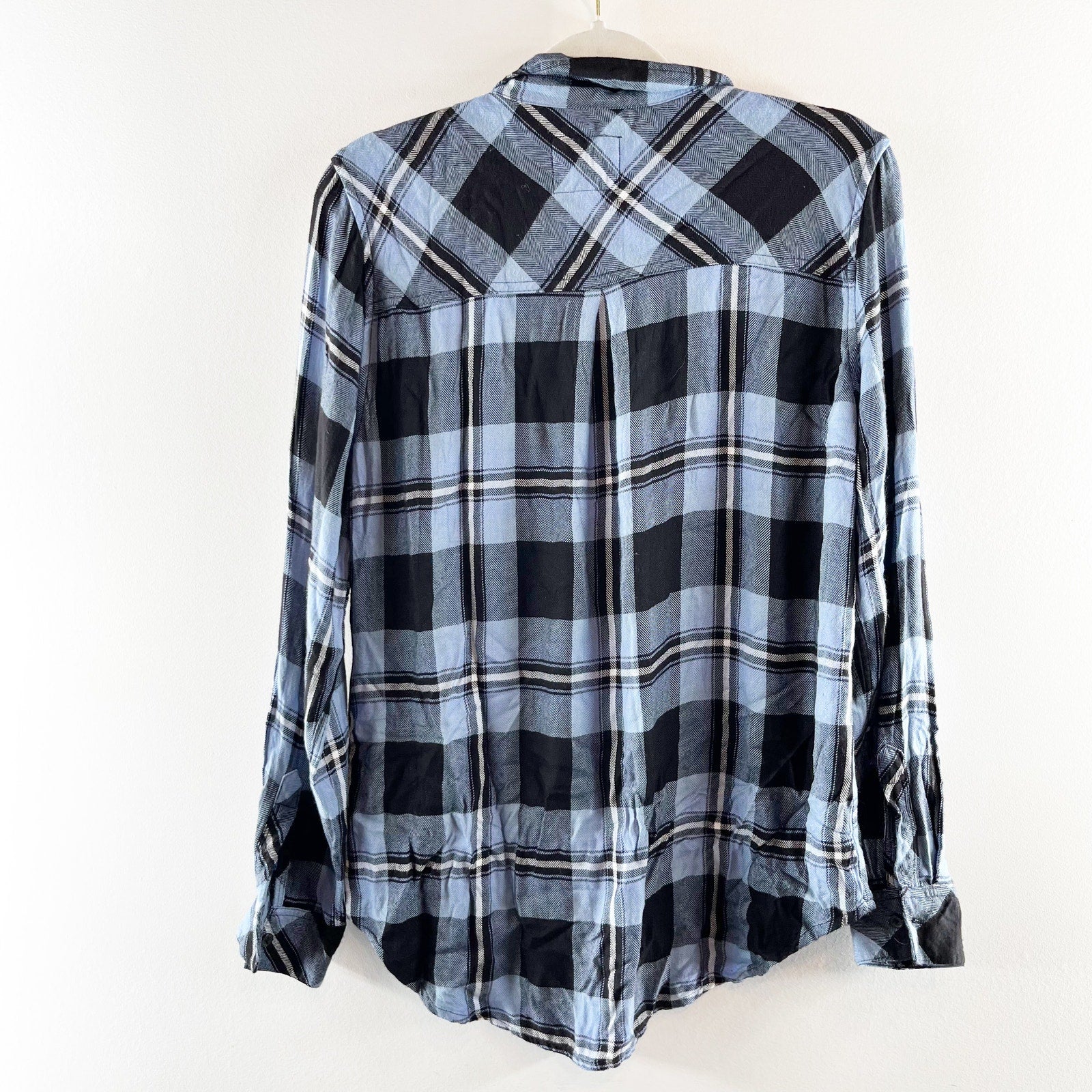 Rails Hunter Long Sleeve Flannel Plaid Button Down Shirt Current Onyx White M