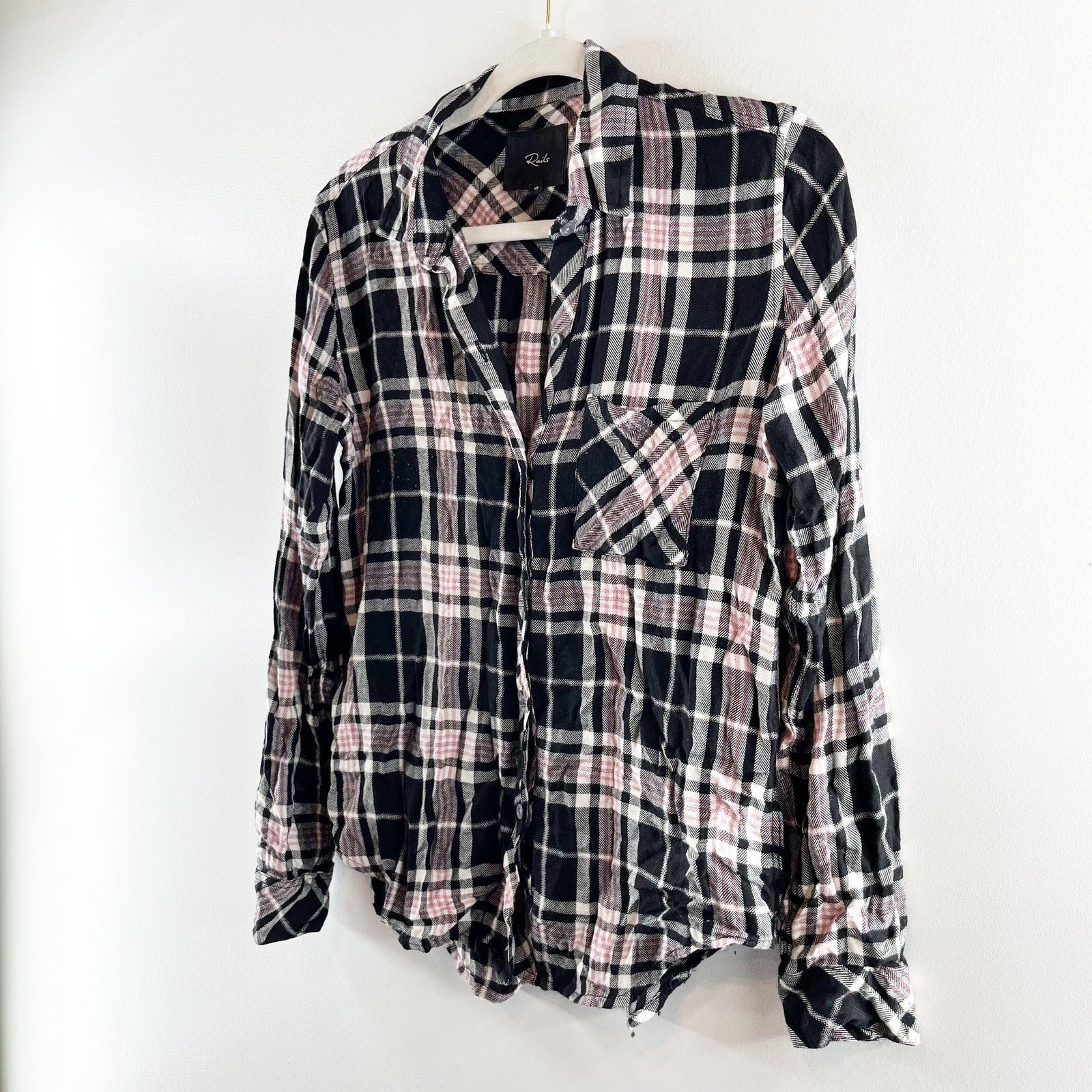 Rails Hunter Long Sleeve Plaid Flannel Button Down Shirt Onyx Rose Gold XS