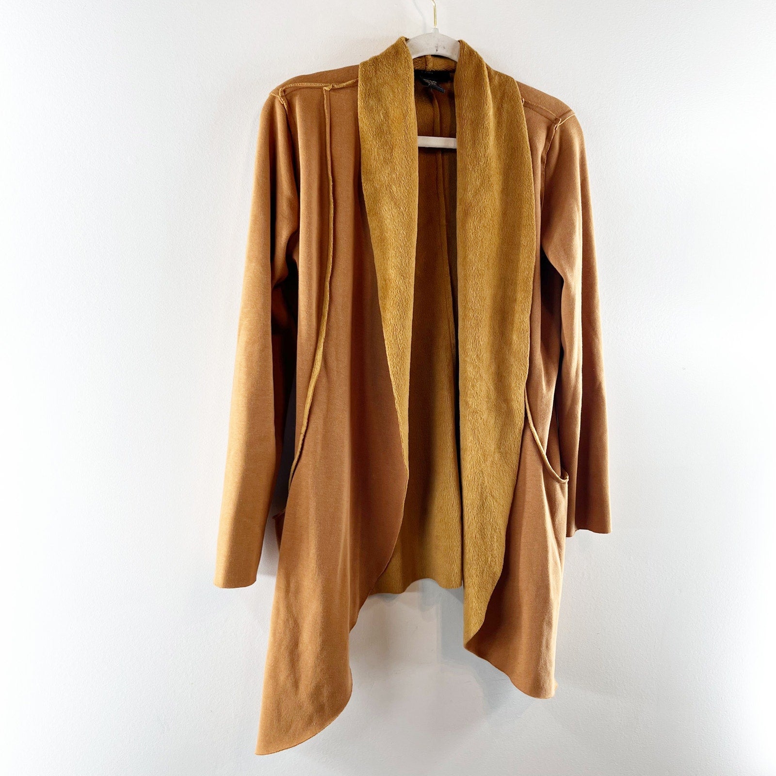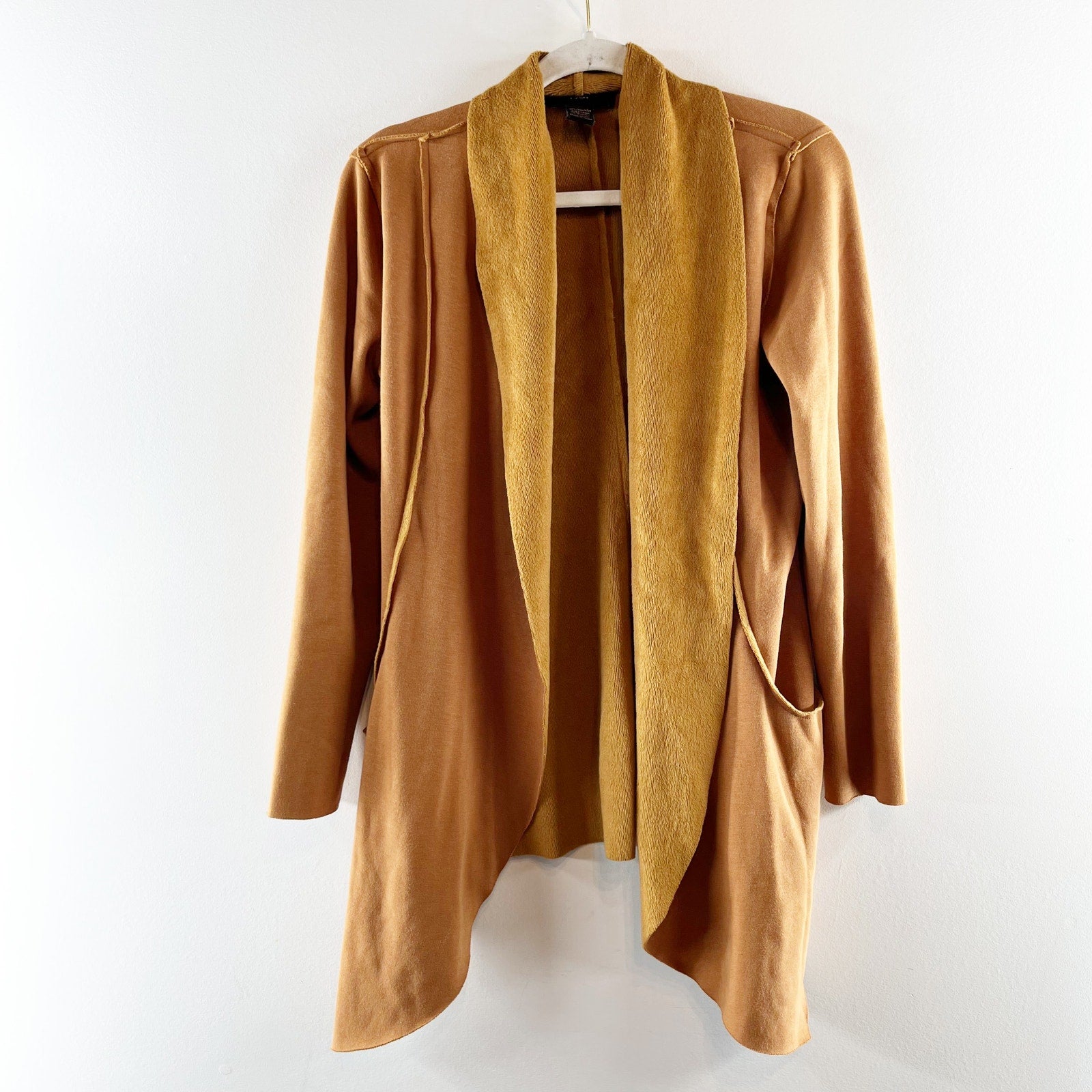 Rain and Rose Drape Front Long Sleeve Duster Cardigan Sweater Camel Mocha Small