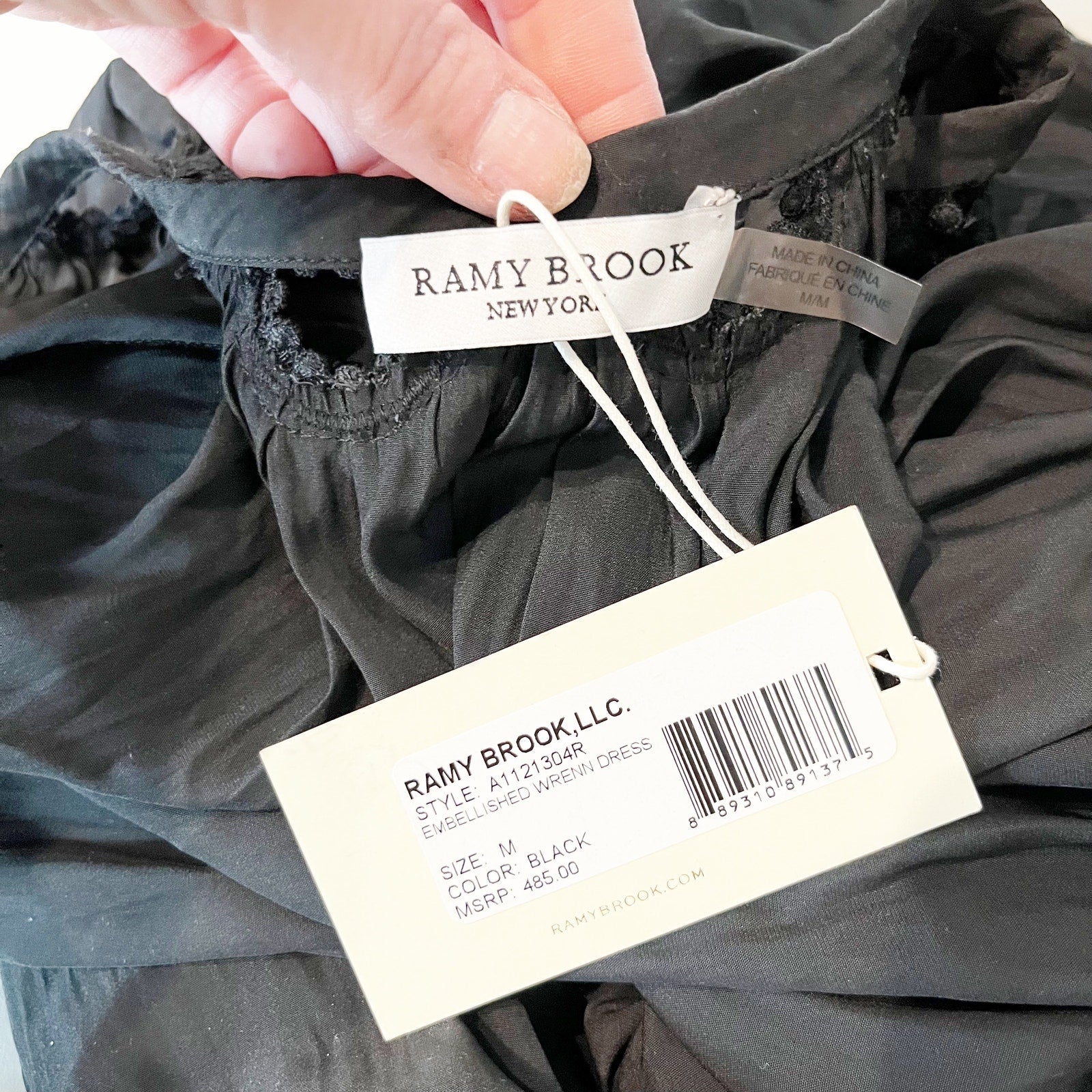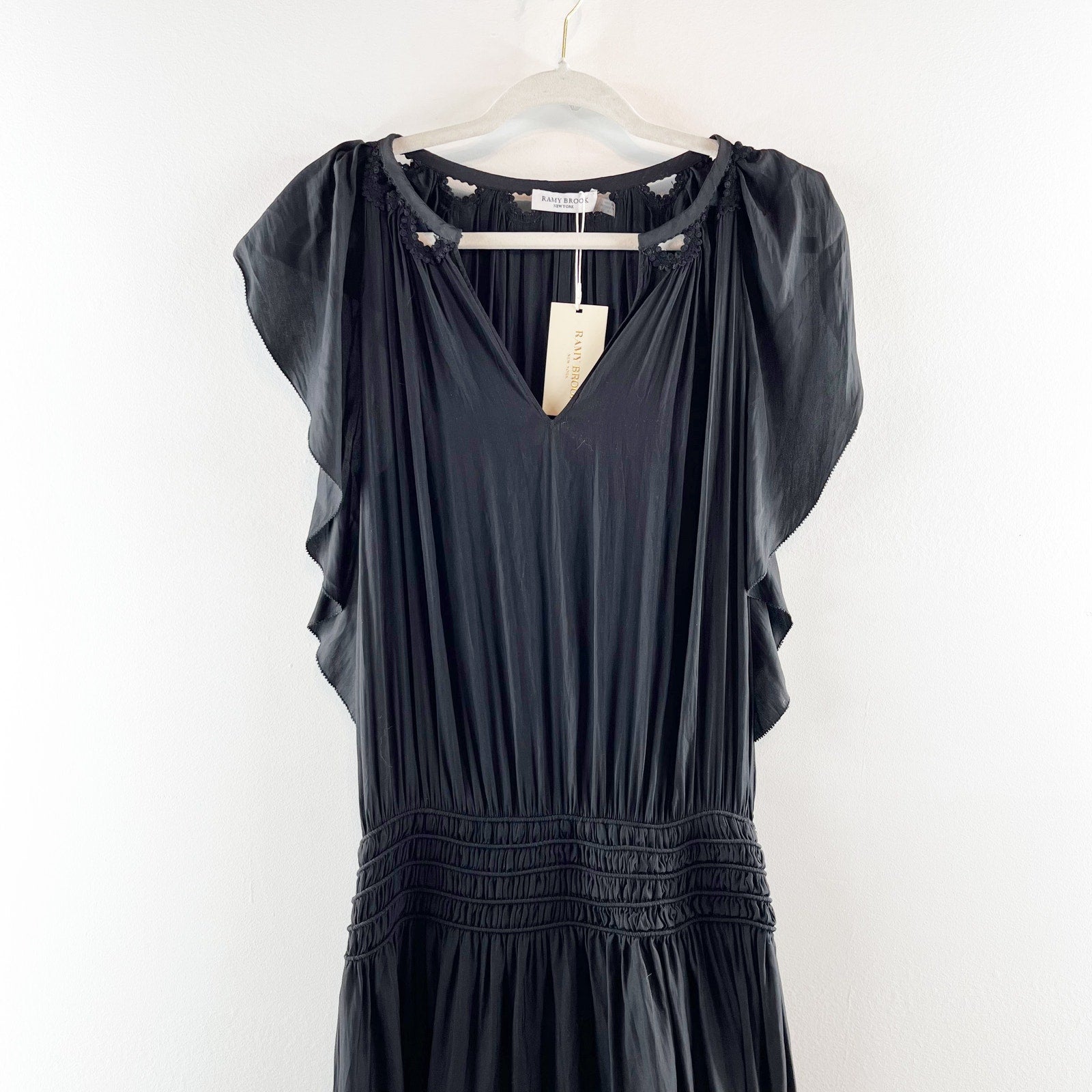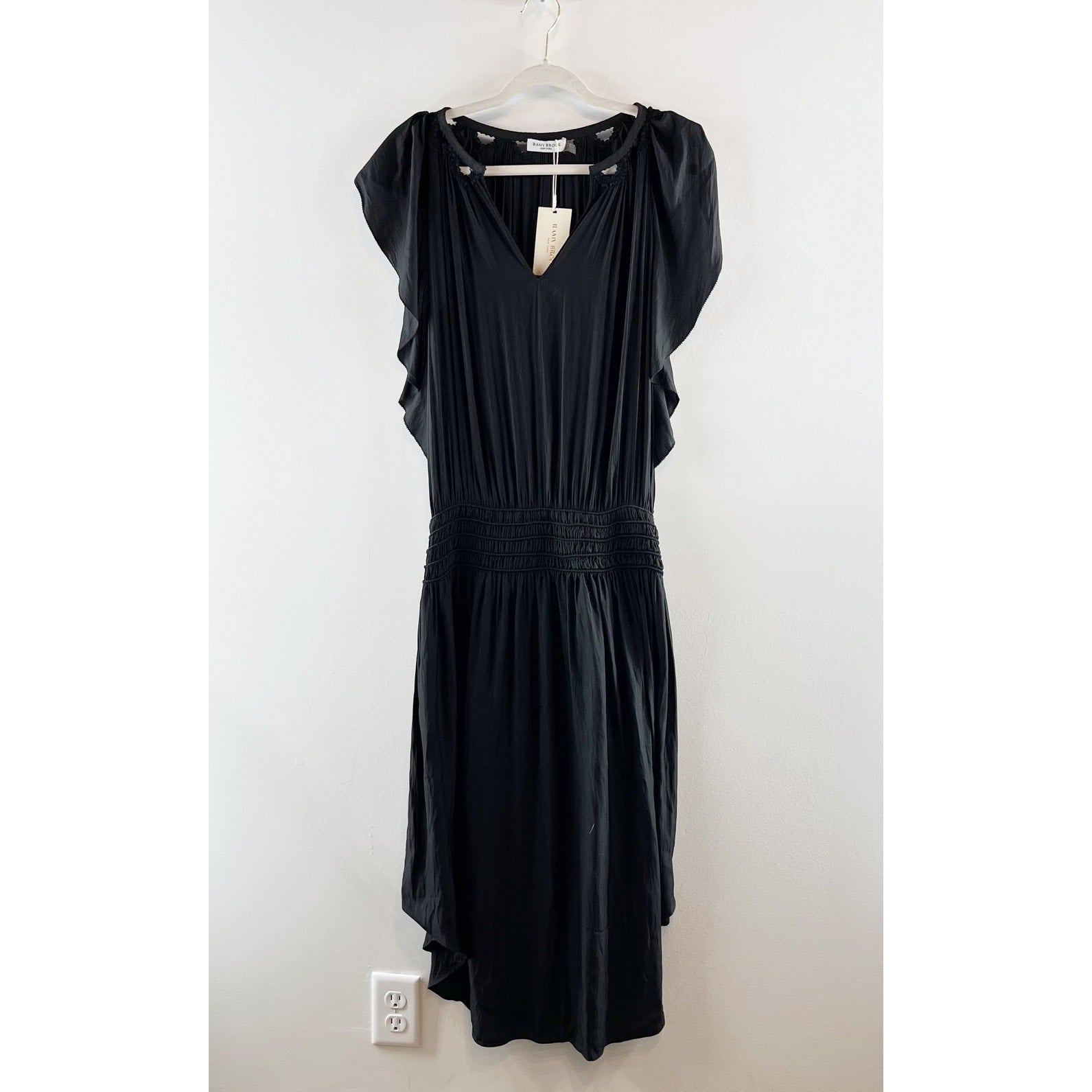 Ramy Brook Wrenn Flutter Sleve Smocked Waist Midi Dress Black Medium