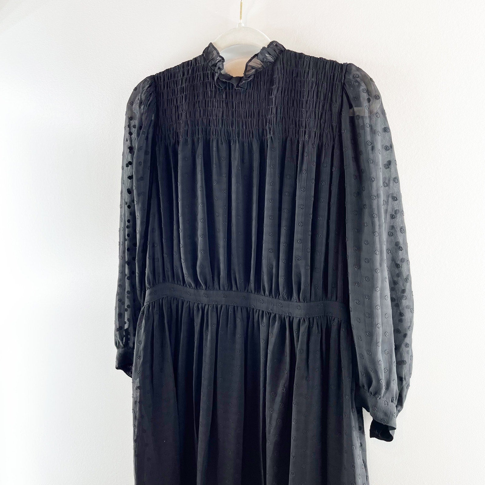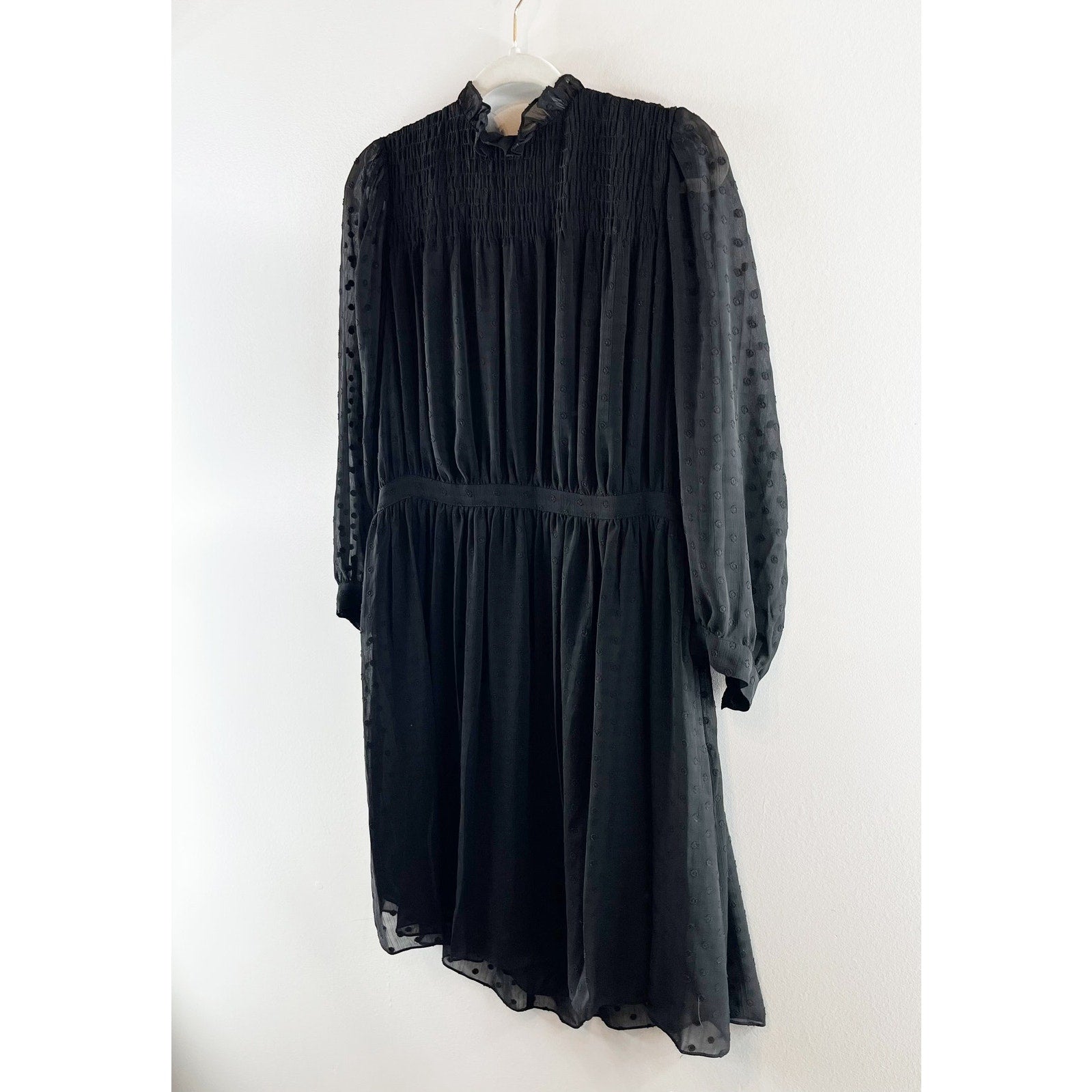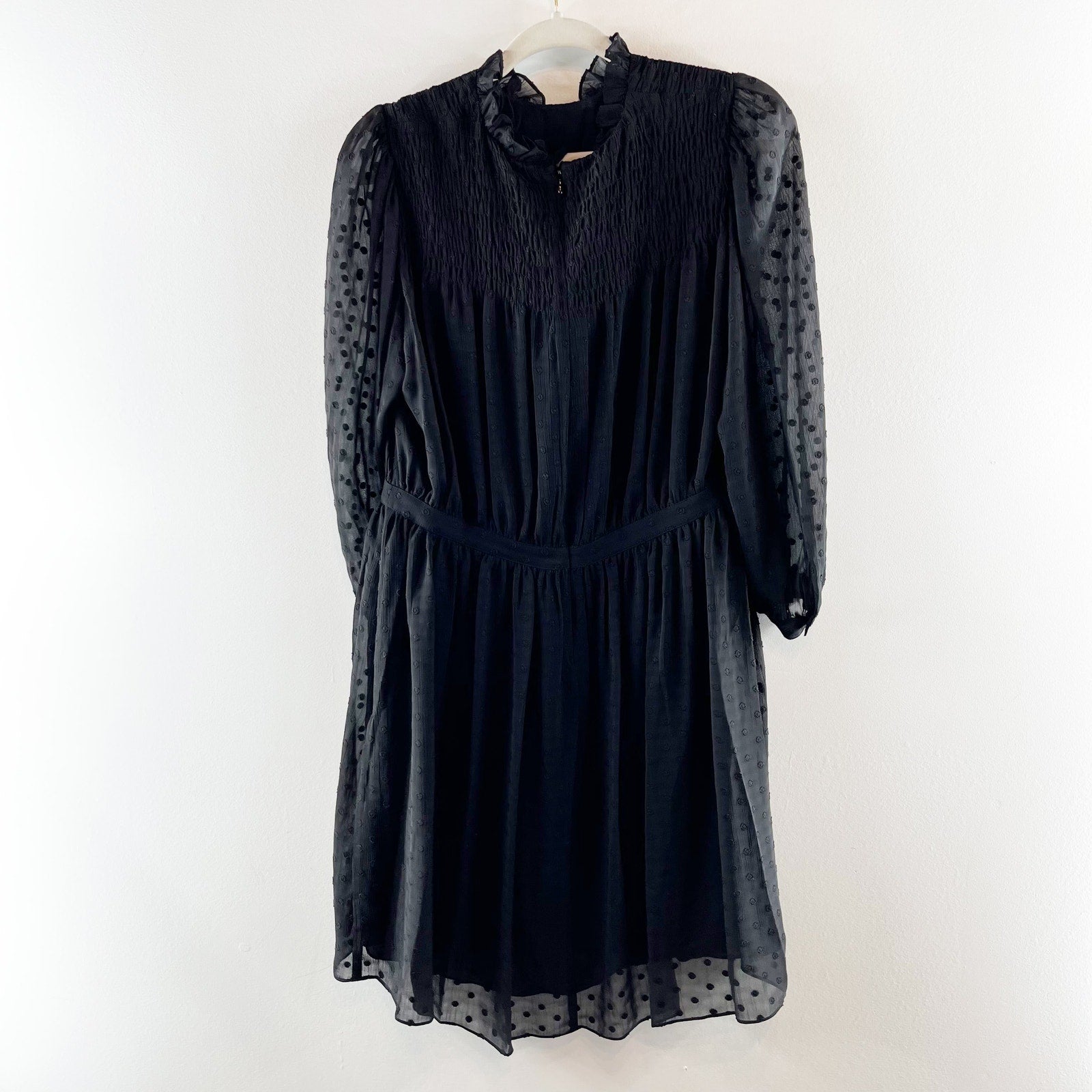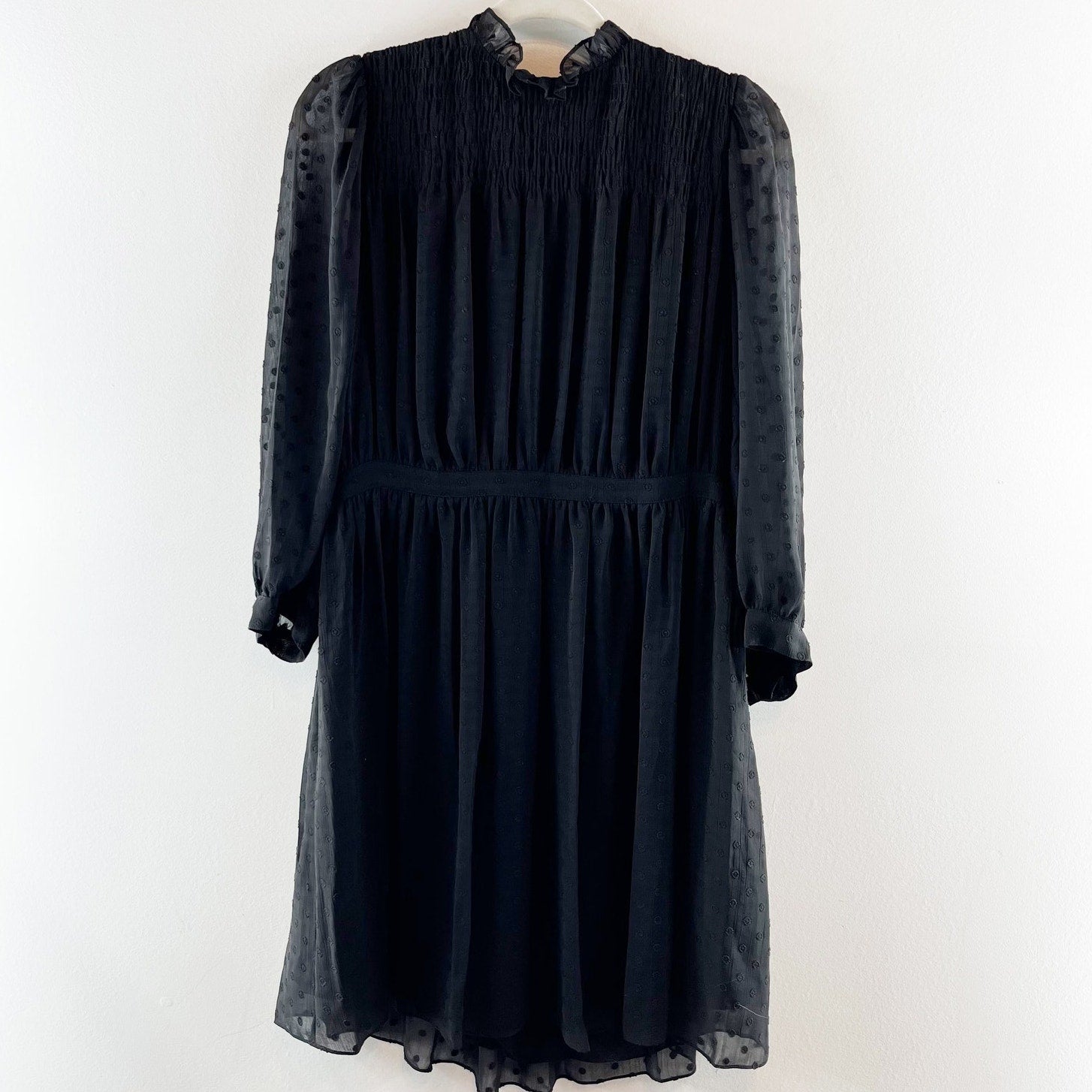 Rebecca Taylor 3/4 Sheer Sleeves Clip Dot Mini Dress Black 8