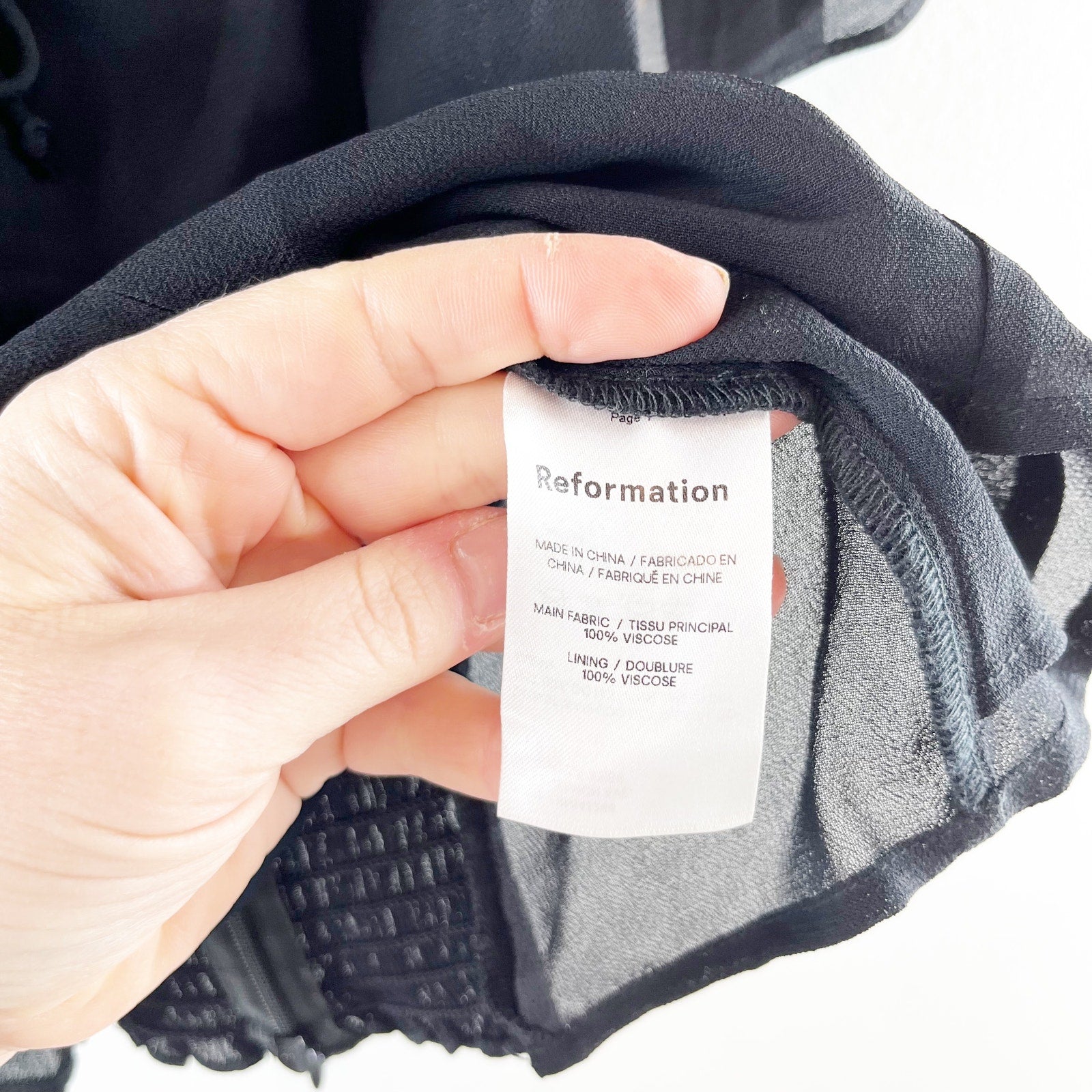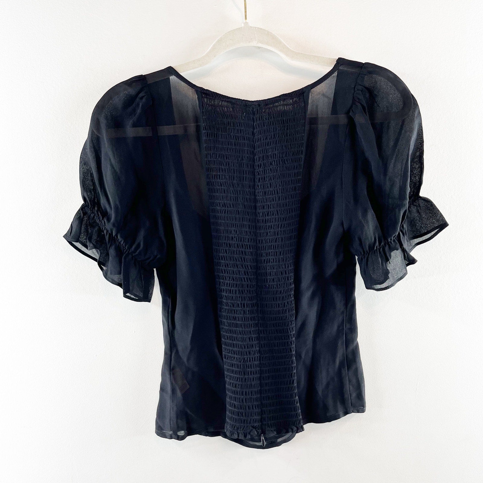 Reformation Delevan Slim Fit Puff Sleeve Lined Smocked Back Top Blouse Black 2