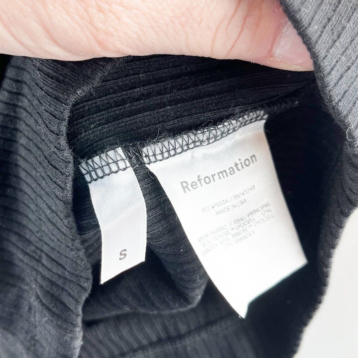 Reformation Kelsi Ribbed Square Neck Sleeveless Jumpsuit Black Small