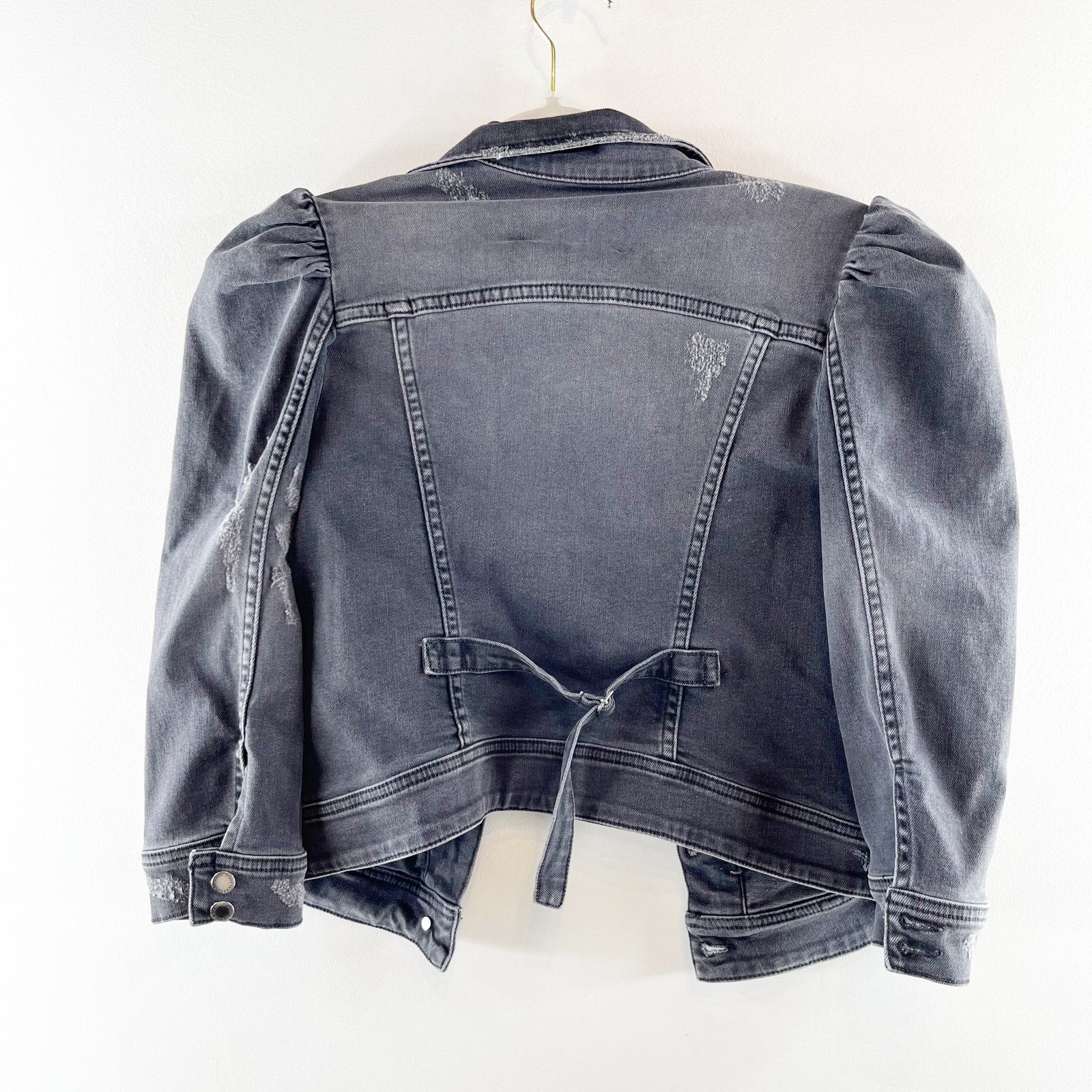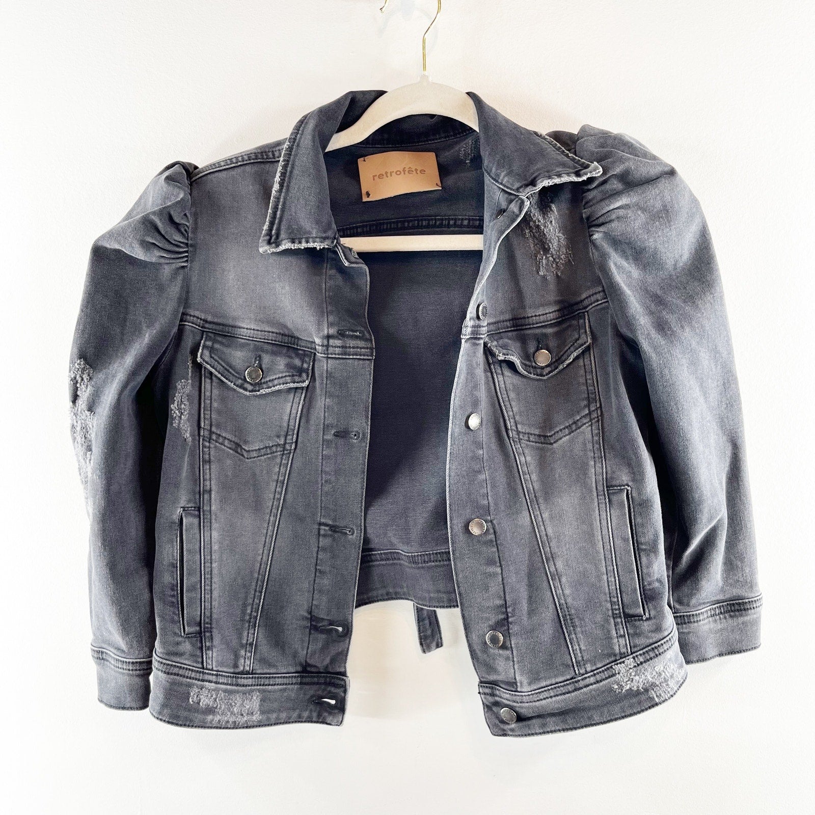 retrofete Ada Puff Sleeve Button-Front Denim Jean Jacket Faded Black Small