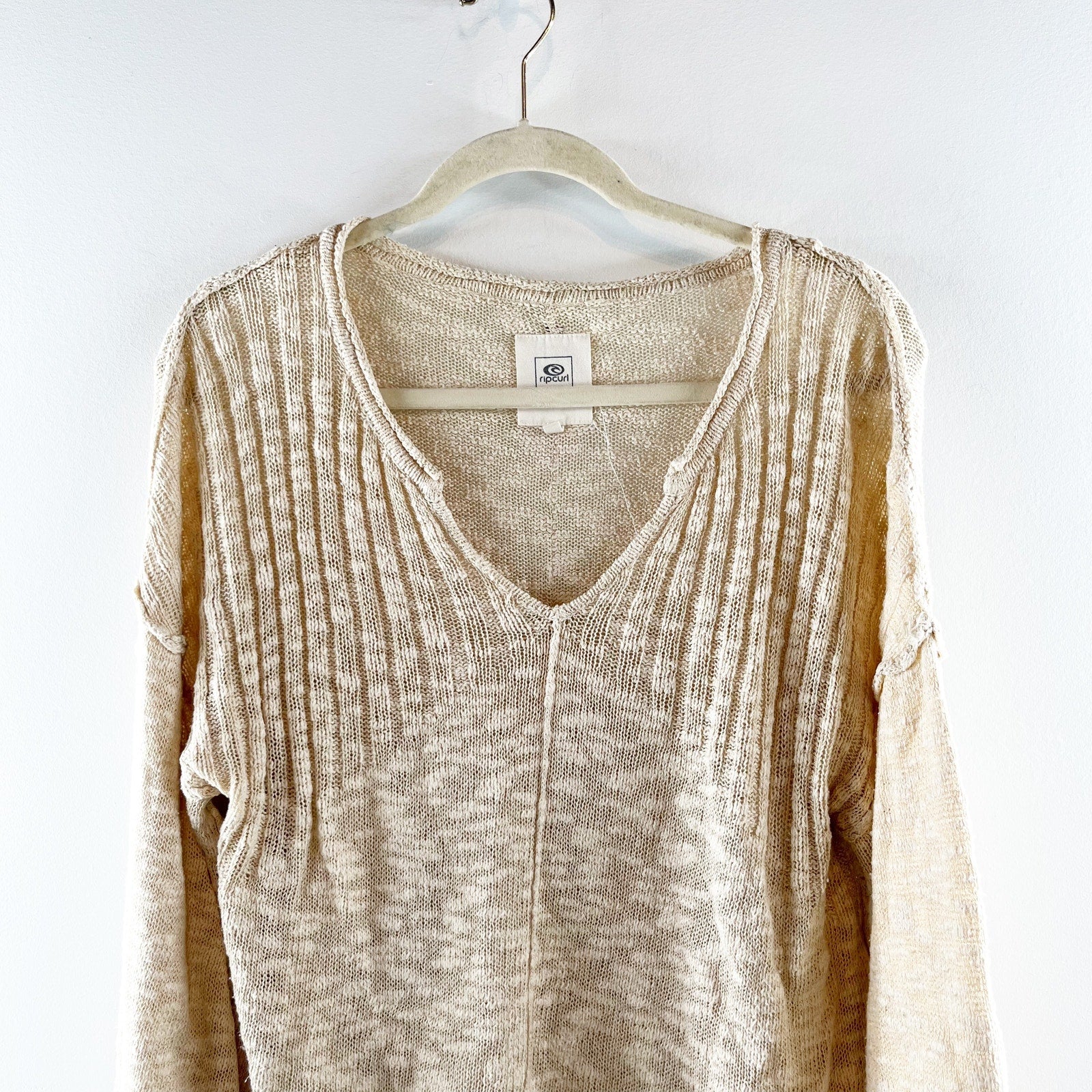 Rip Curl Long Sleeve Lightweight V Neck Sweater Tan Medium