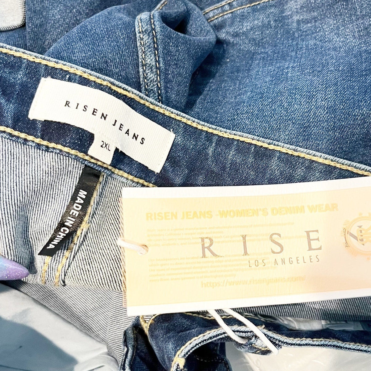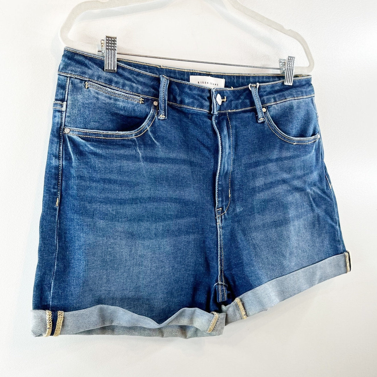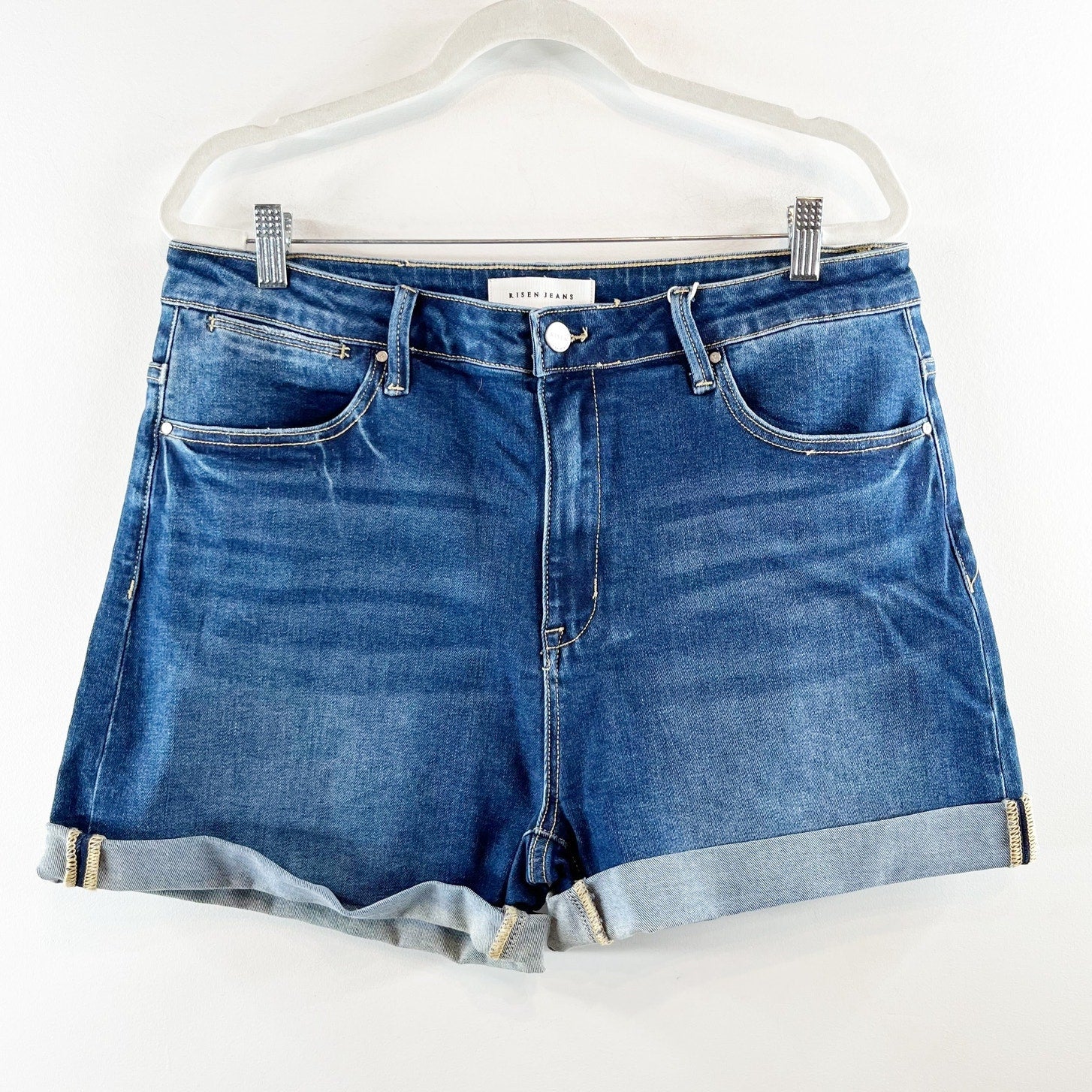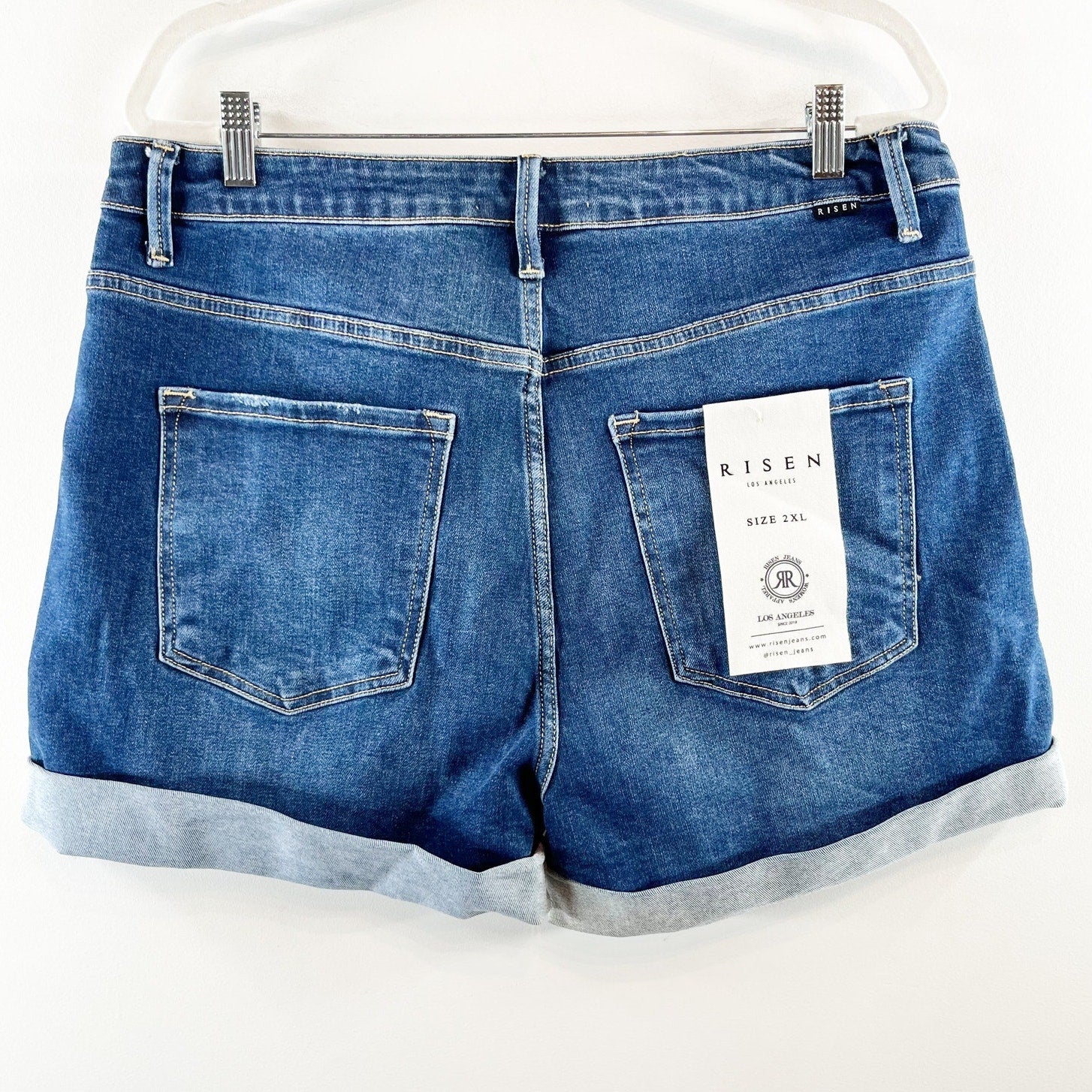 Risen High Rise Cuffed Denim Jean Shorts Blue 2X
