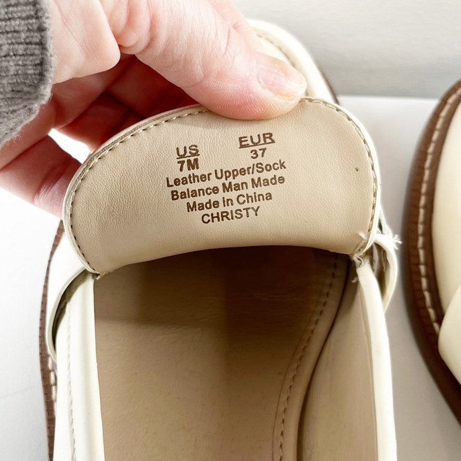 slip on, leather, cream, ivory, loafer, shoes, gold chain, flats