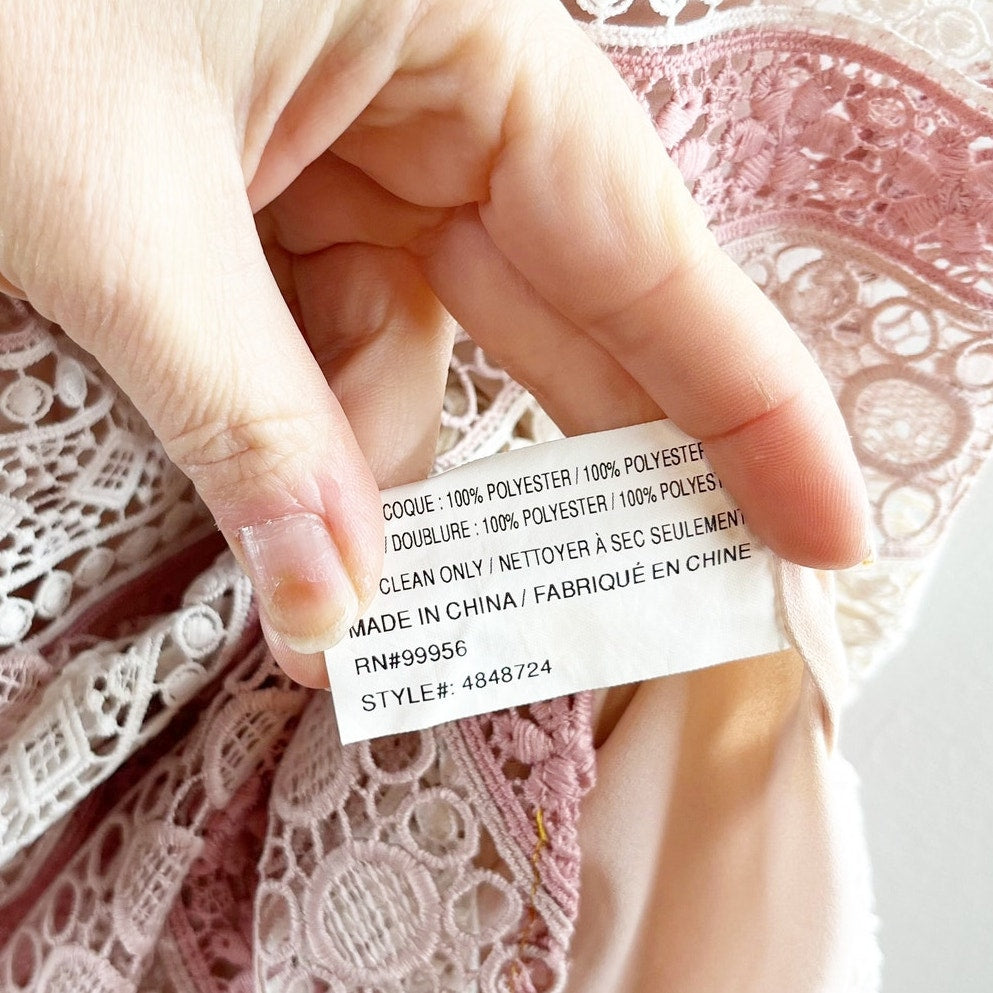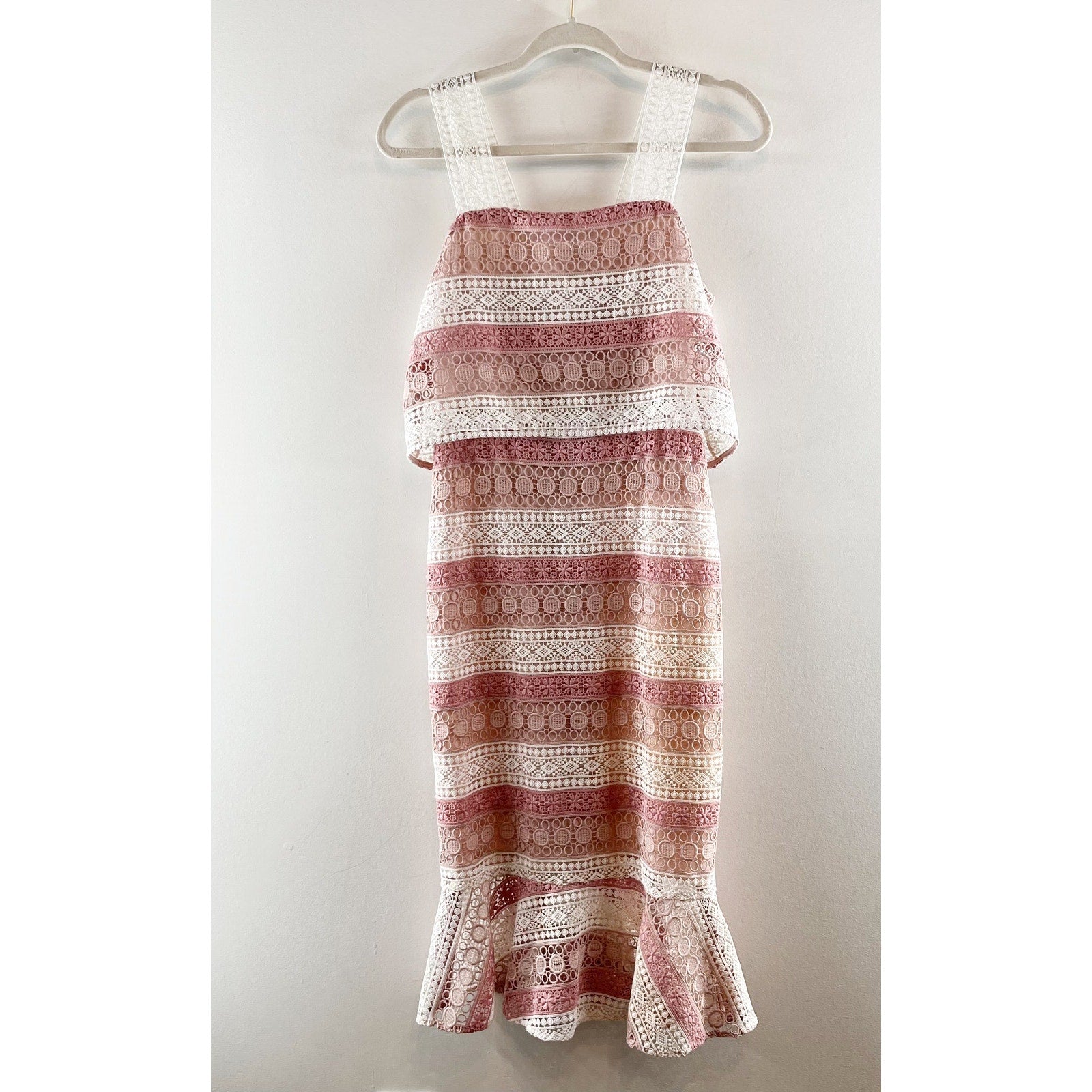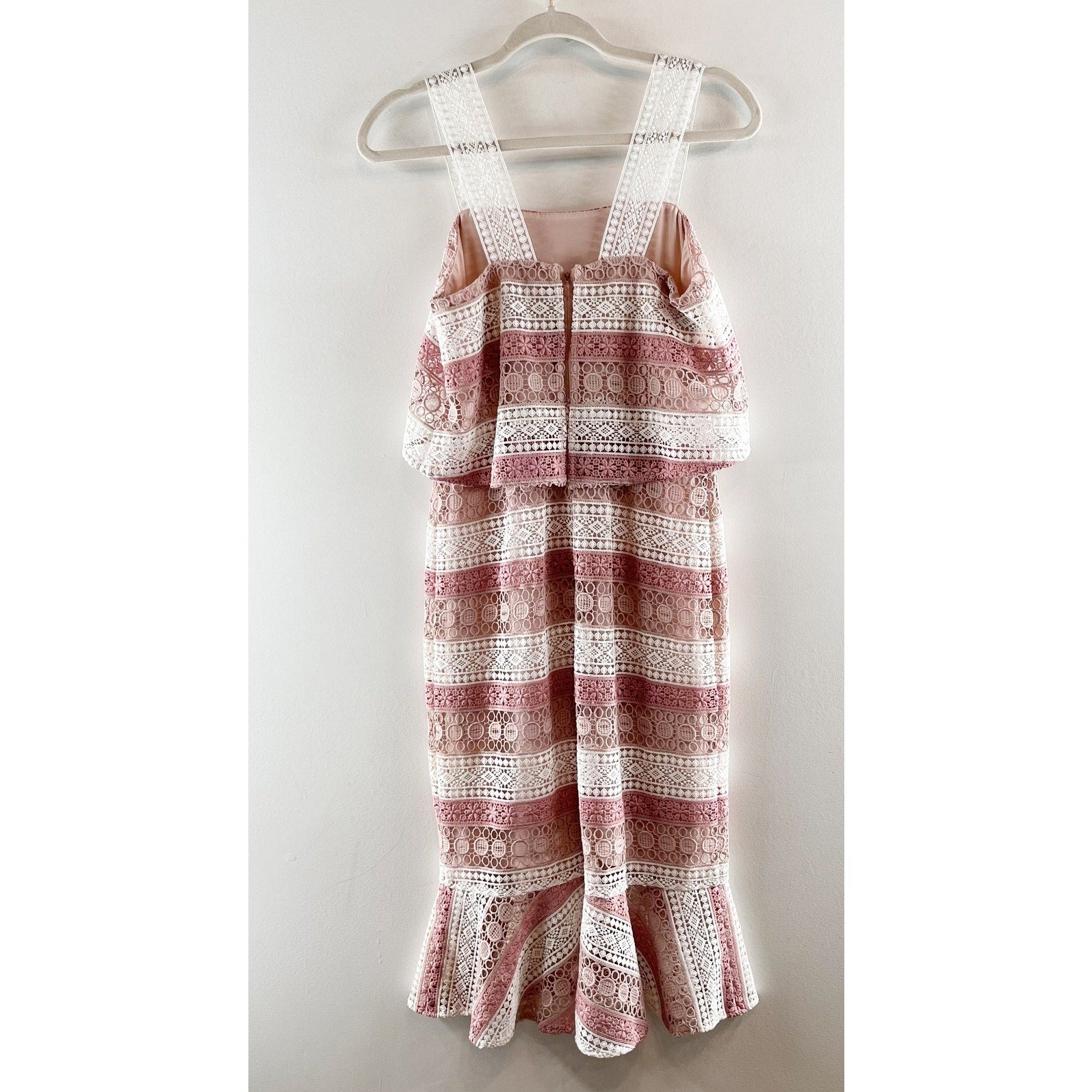 Shoshanna Dunham Striped Estepona Crochet Lace Midi Sheath Dress Pink White 0