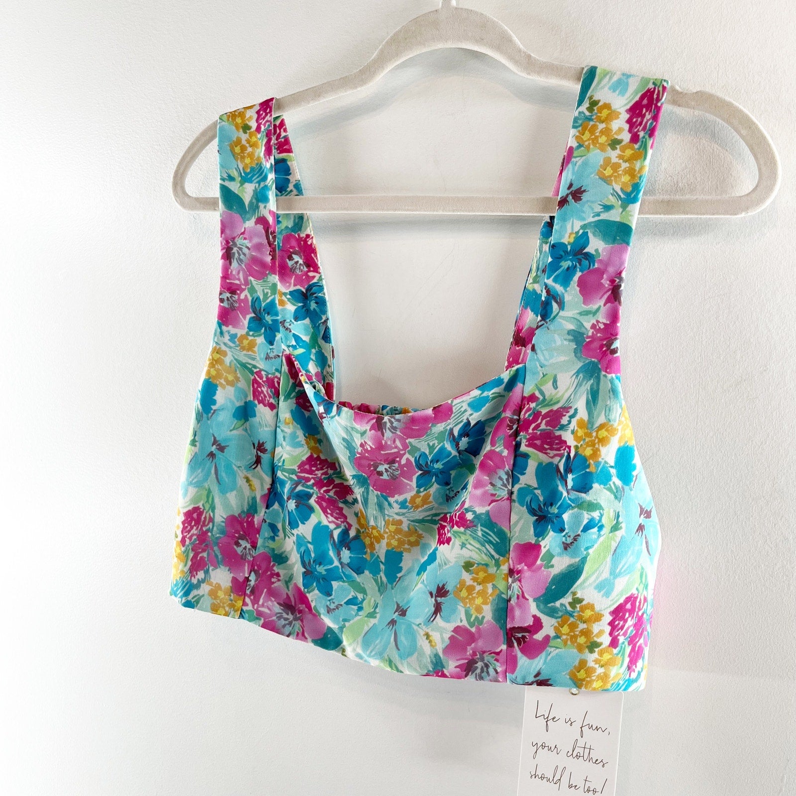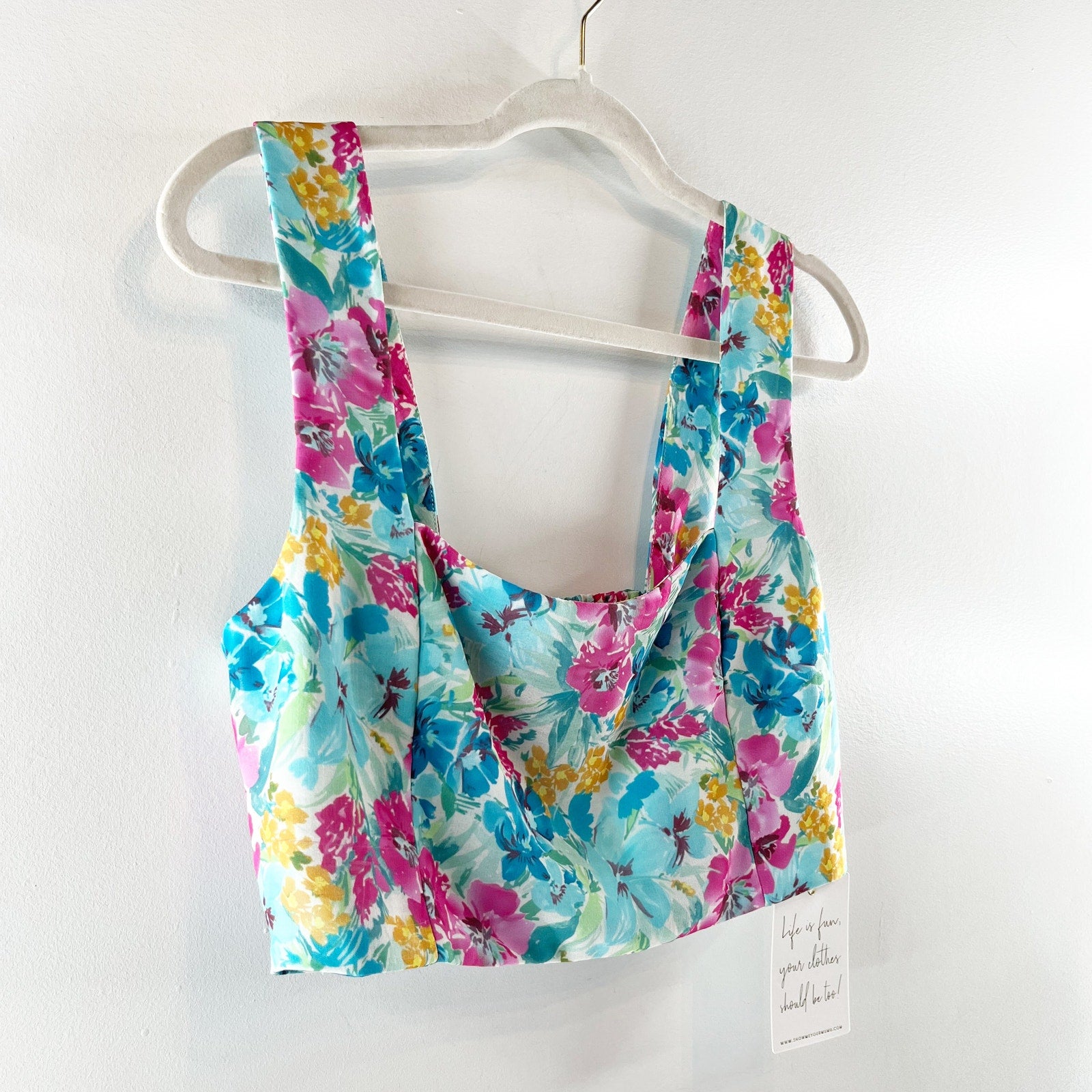 Show Me Your Mumu Square Neck Floral Crop Tank Top Blue Pink Large