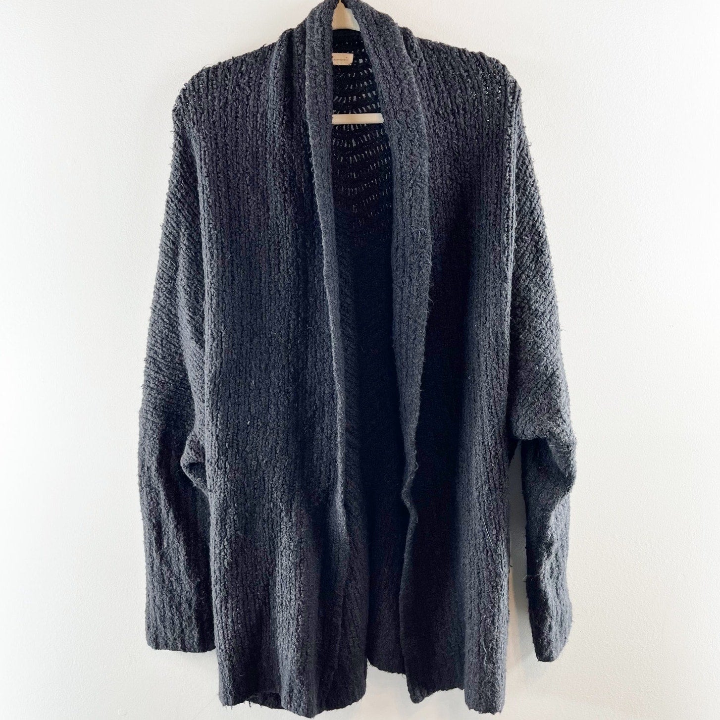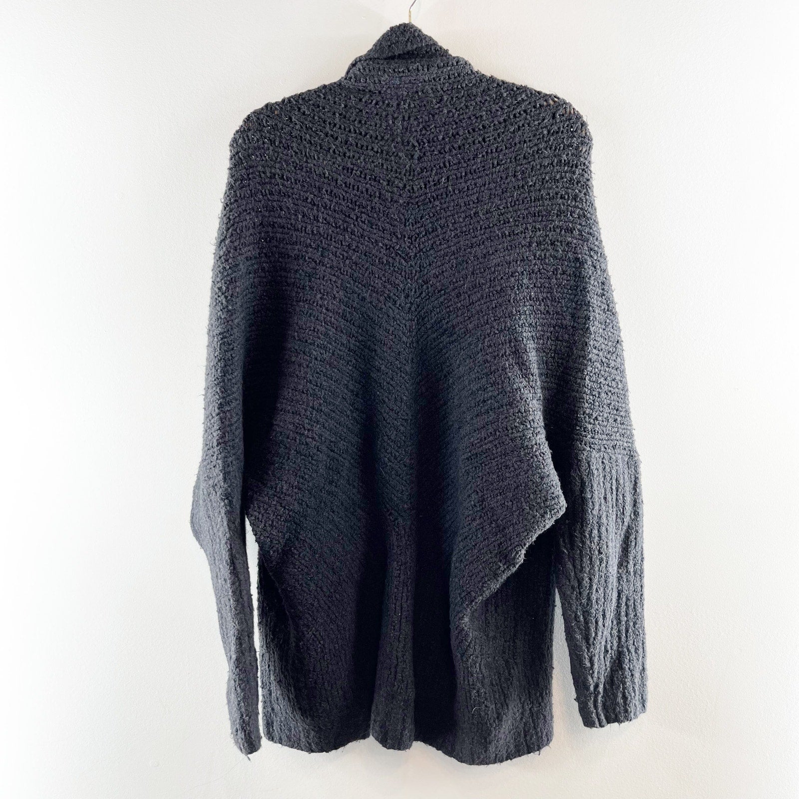 Sleeping on Snow Long Sleeve Open Knit Duster Cardigan Sweater Black Large