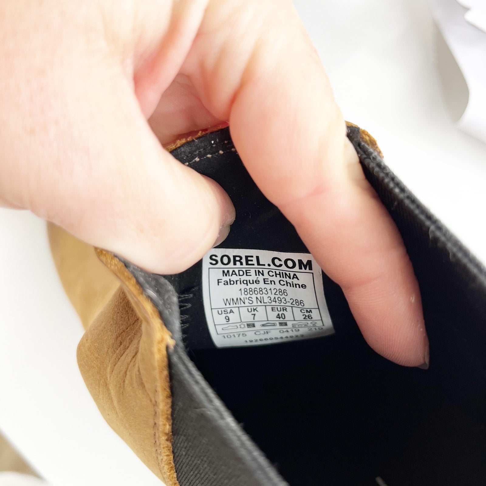 Sorel Joan of Arctic Wedge Leather Ankle Boots Booties Tan Brown 9