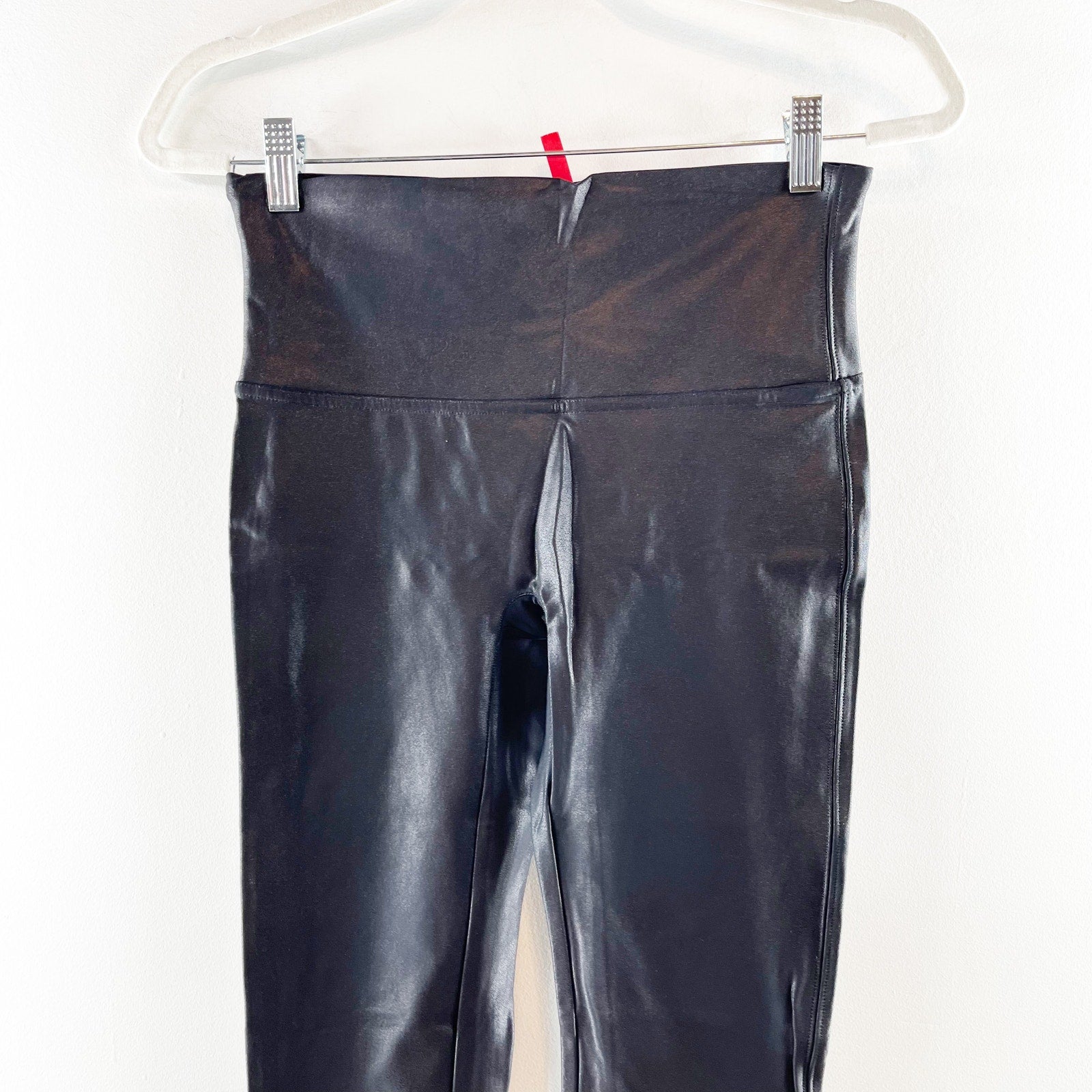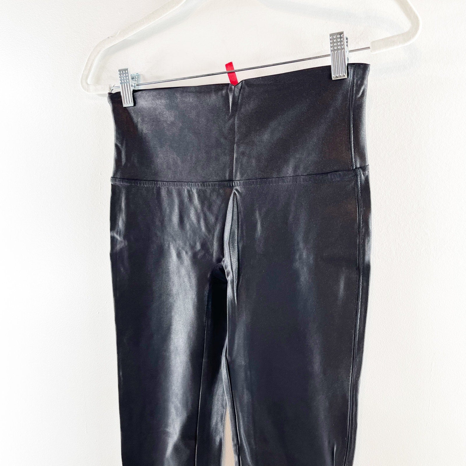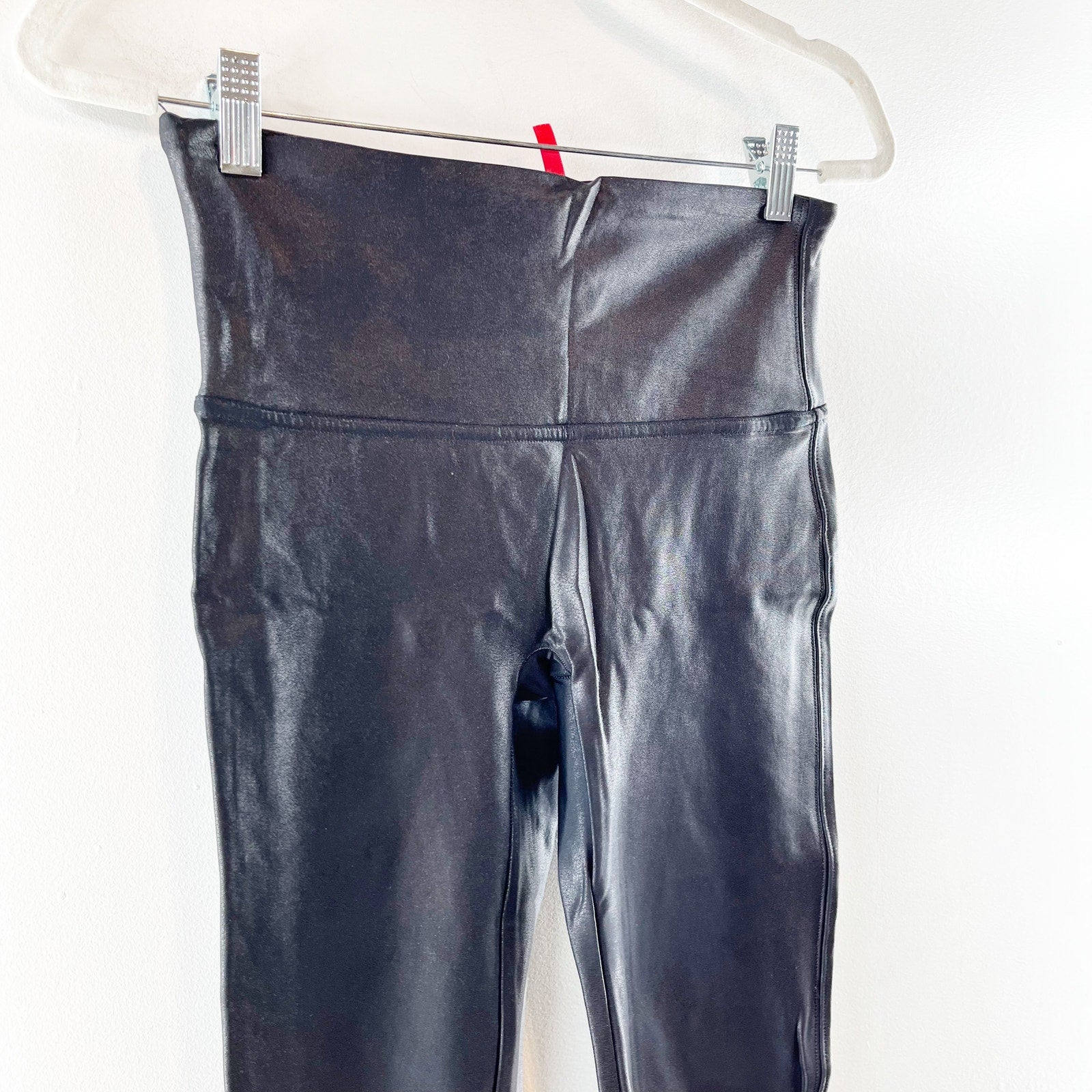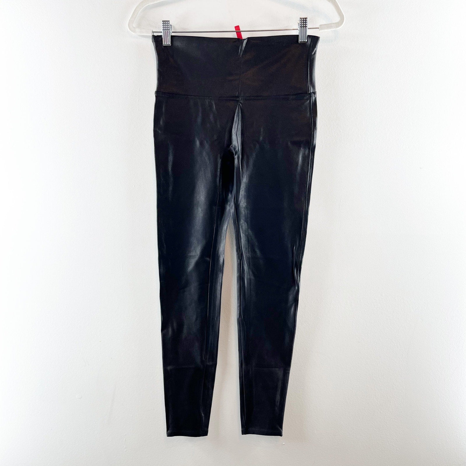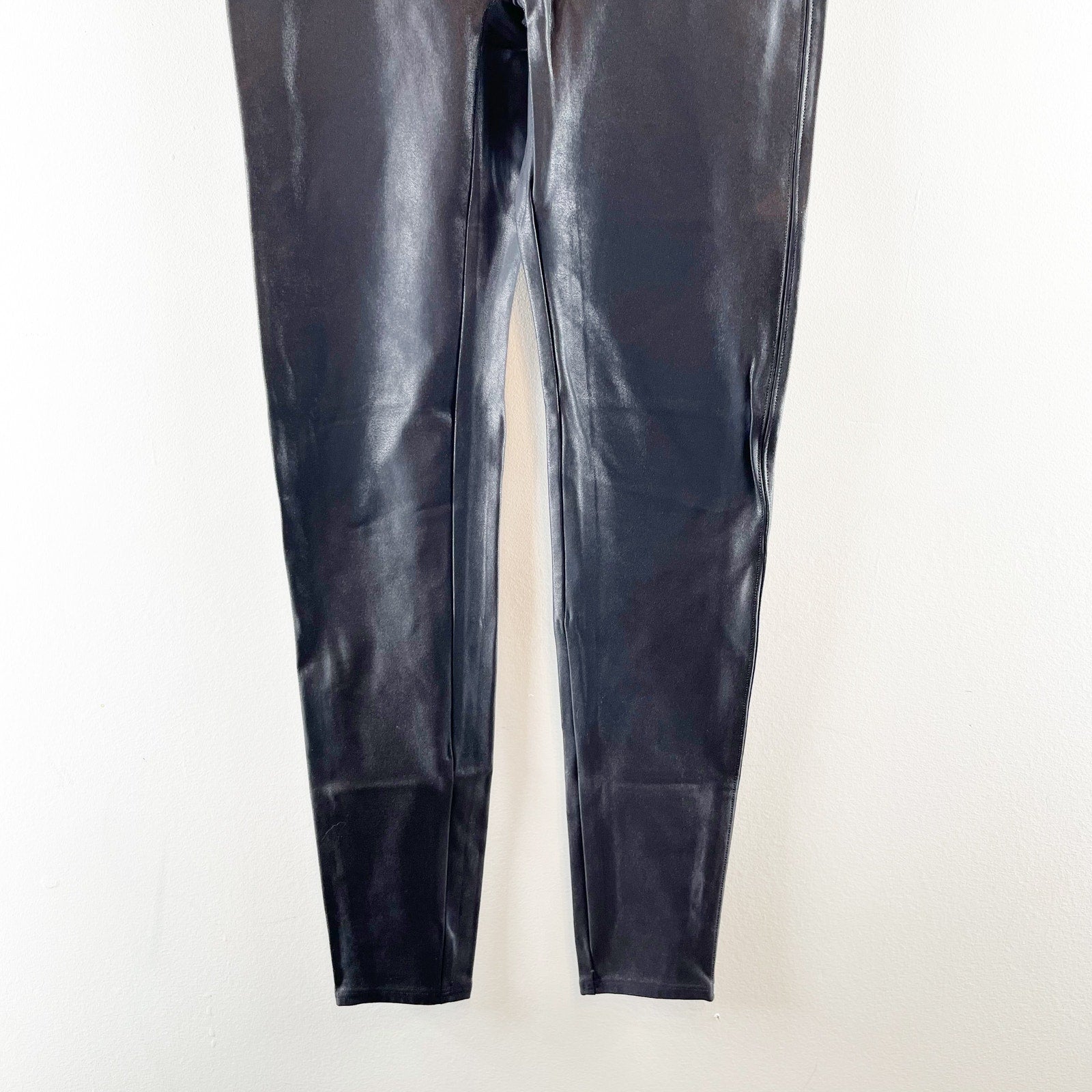 Spanx Compression Faux Leather Leggings Ankle High Rise Shaping Black Large
