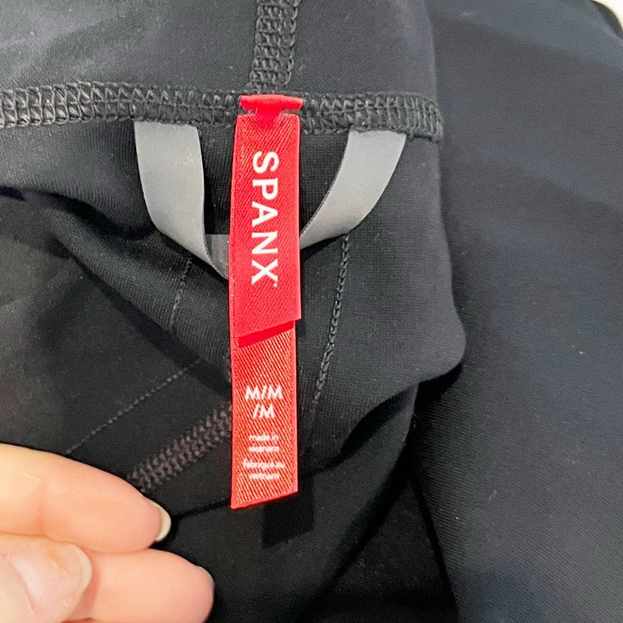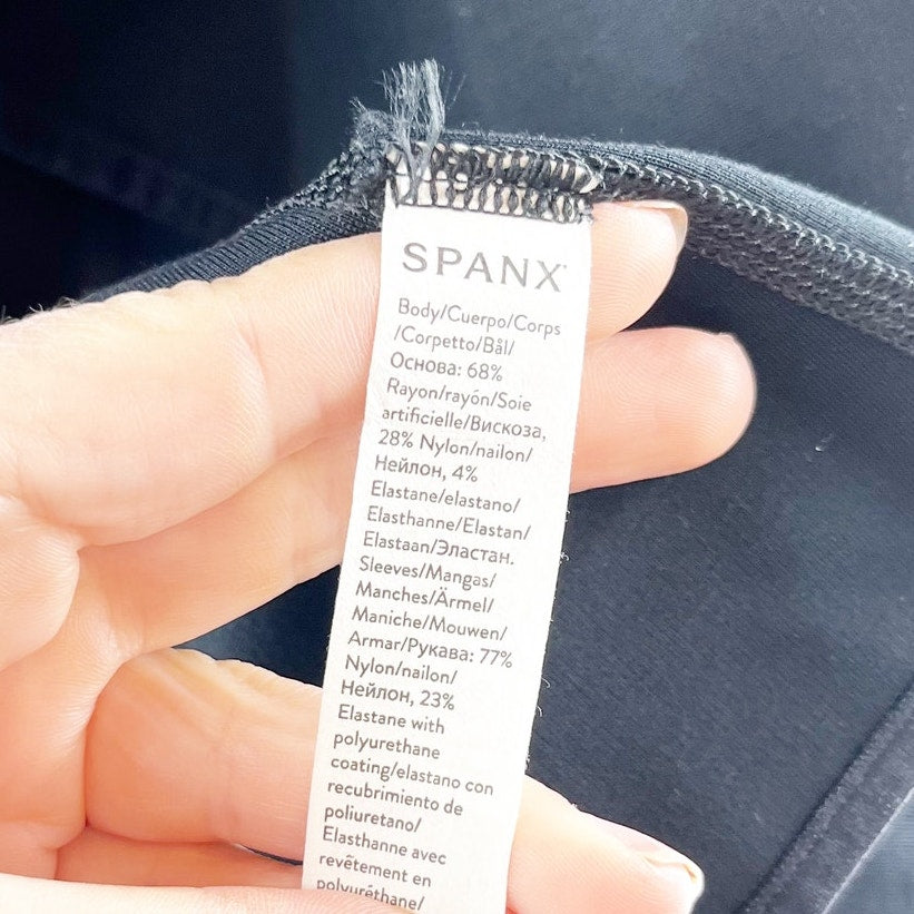 Spanx Long Sleeve Faux Leather Drape Front Blazer Jacket Black Medium
