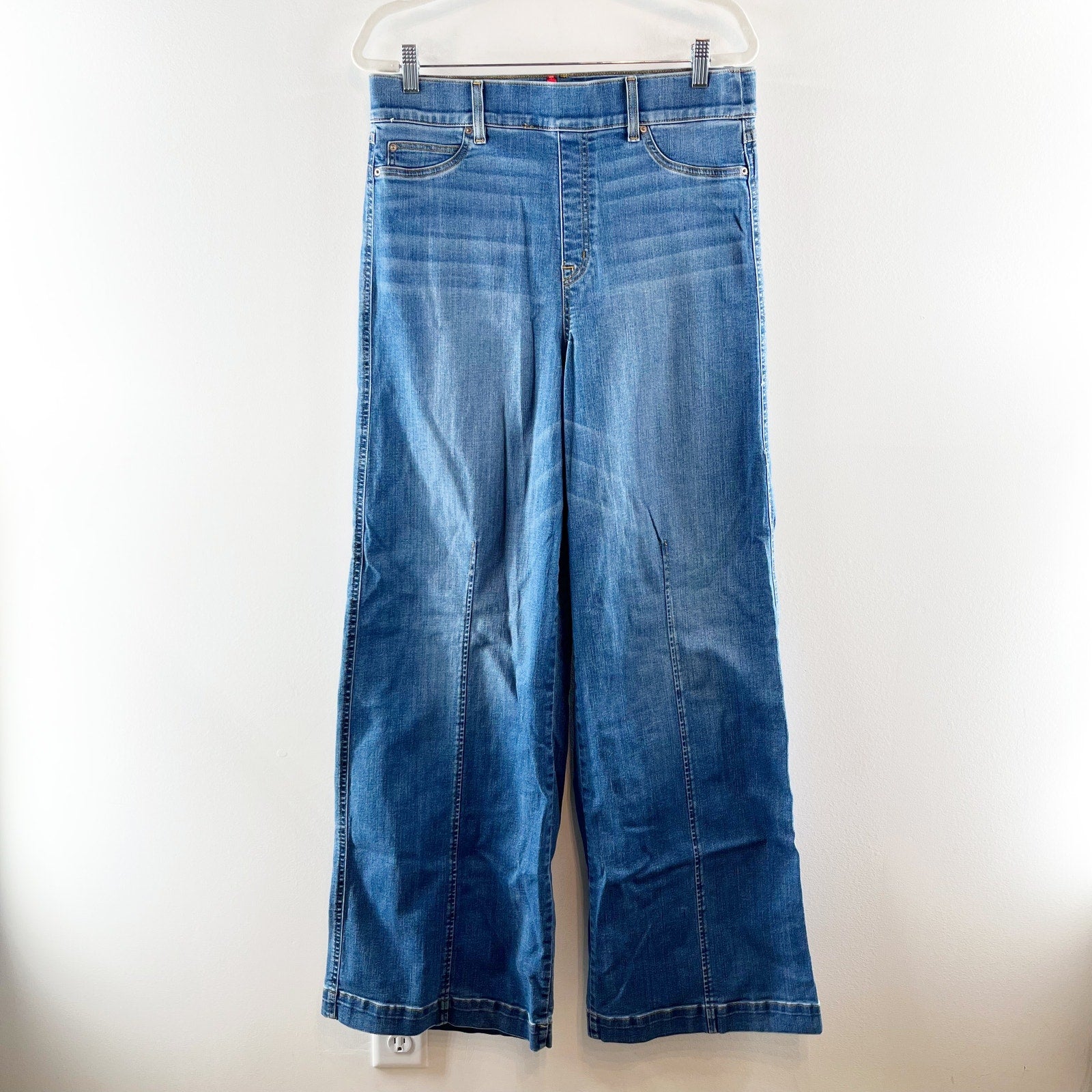 SPANX Seamed Front High Rise Wide Leg Stretch Jeans Blue XL
