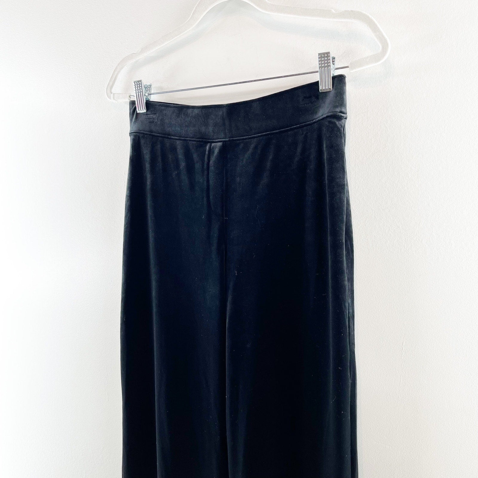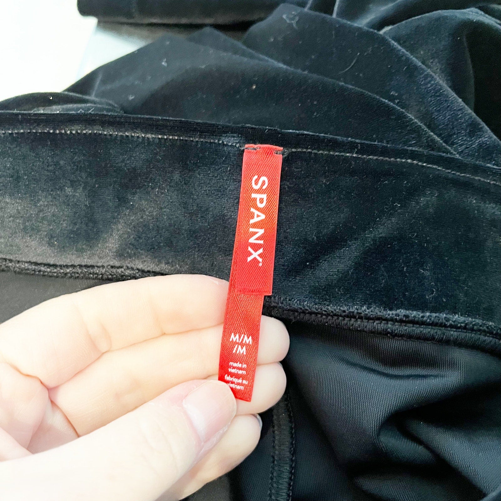 SPANX Velvet High Rise Wide Leg Split Hem Velvet Pants Black Medium