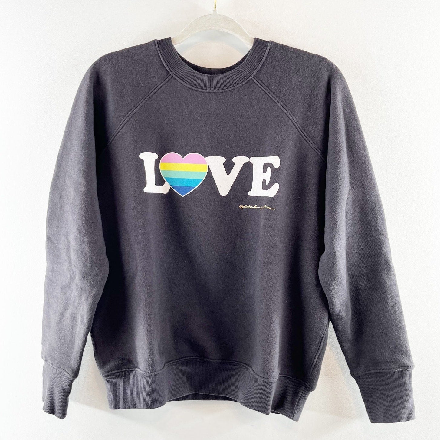 crewneck, long sleeve, graphic, love, rainbow, heart, cotton, soft, lounge, cozy, gray, pullover, sweatshirt