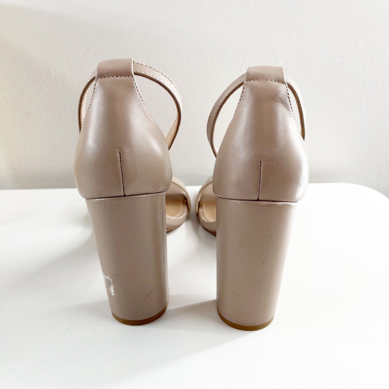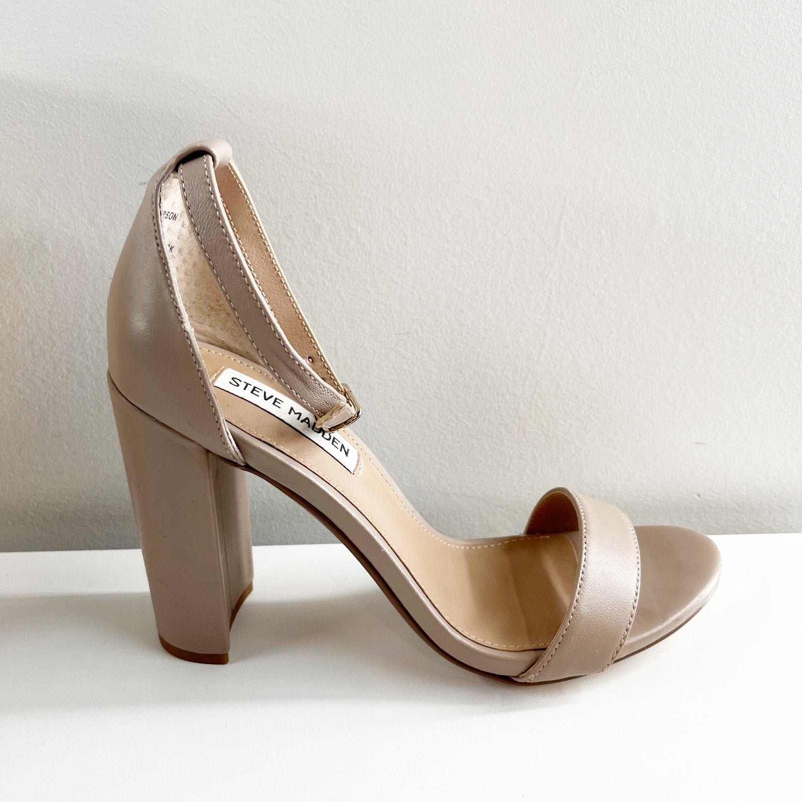 Steve Madden Carrson Ankle Strap Suede Block High Heel Pumps Sandals Blush 7.5