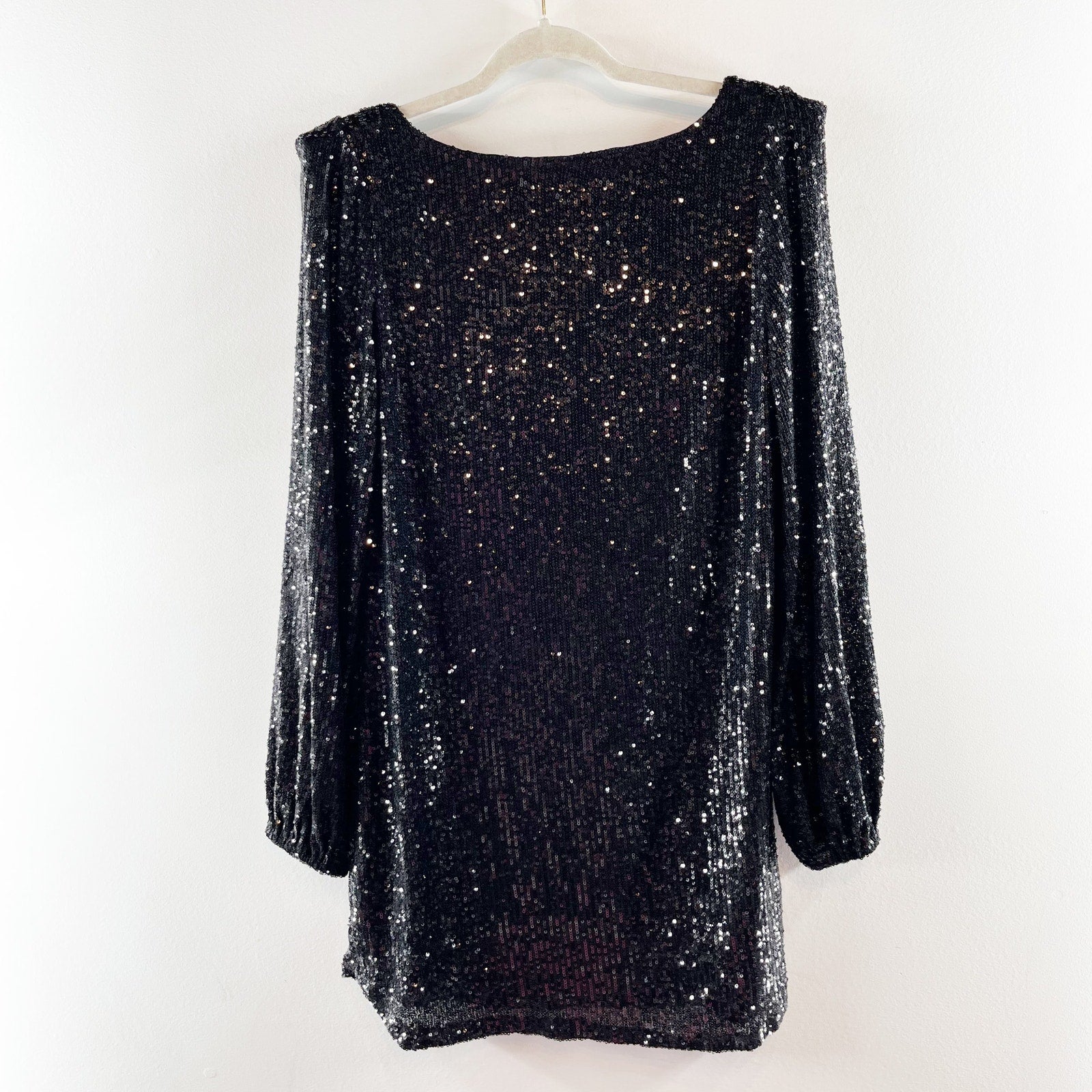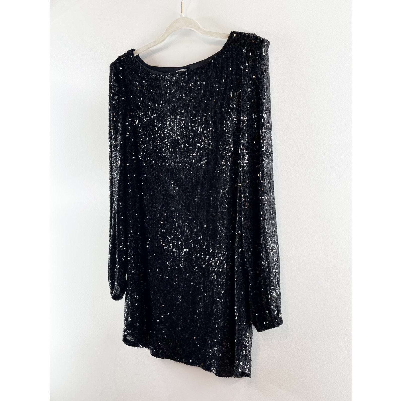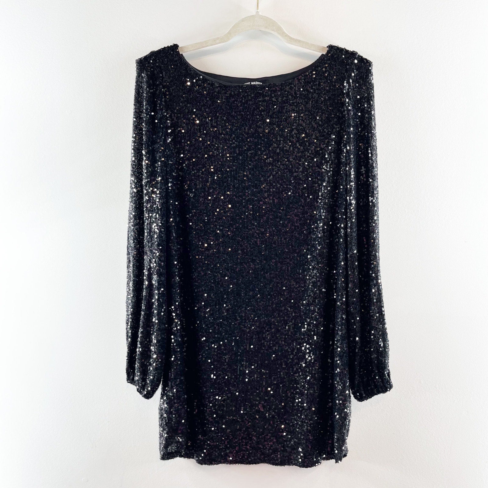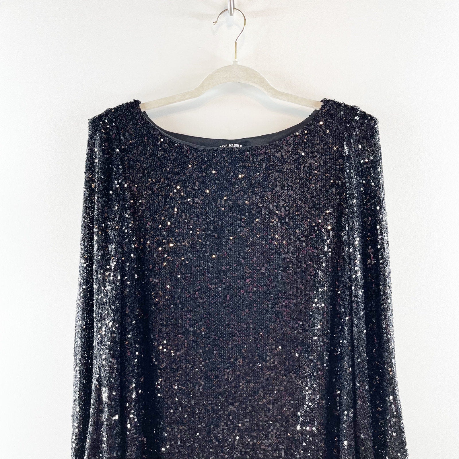 Steve Madden Delorean Long Sleeve Sequin Mini Dress Black Medium