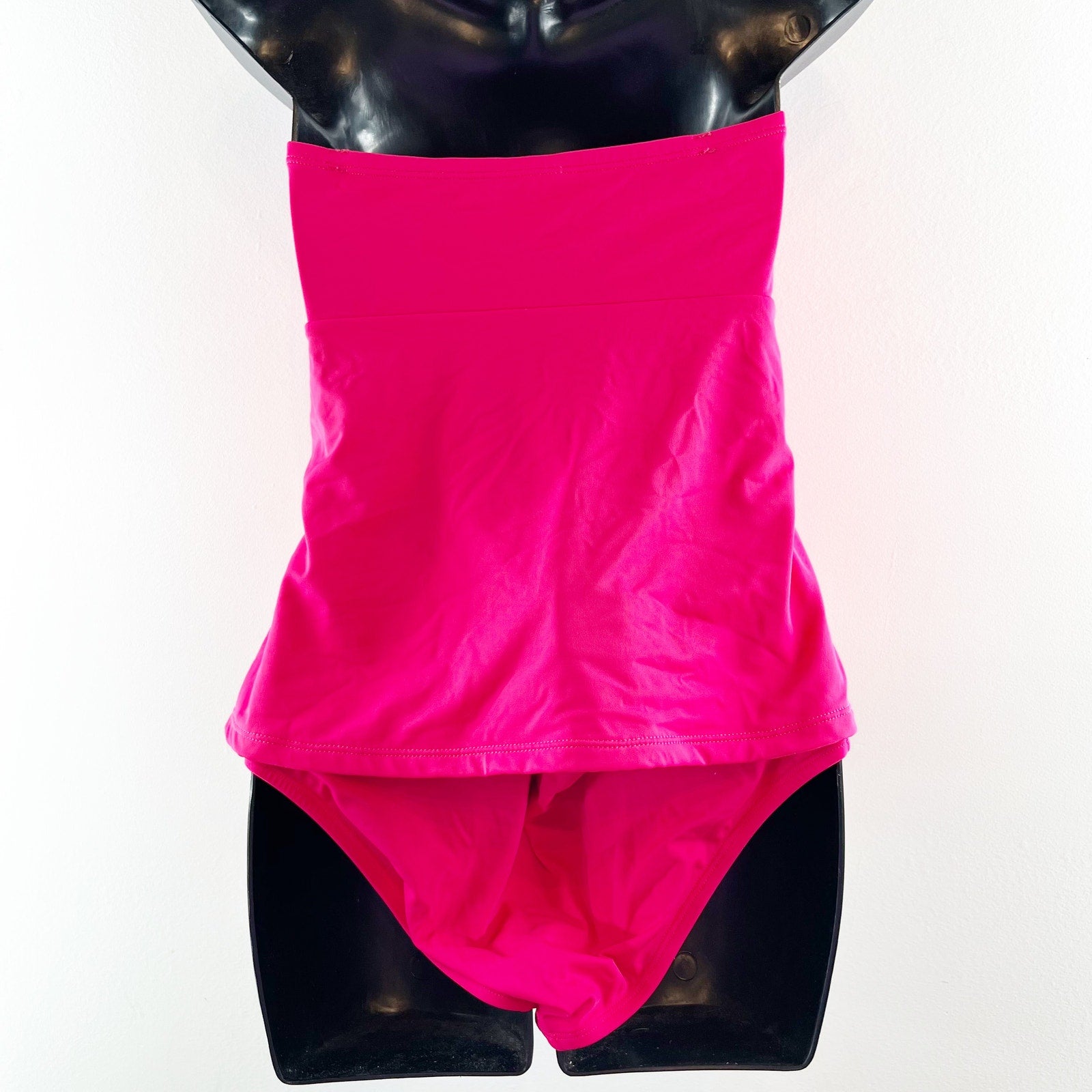 strapless, tankini, two piece, bathing suit, swimsuit, mesh, pink, summer