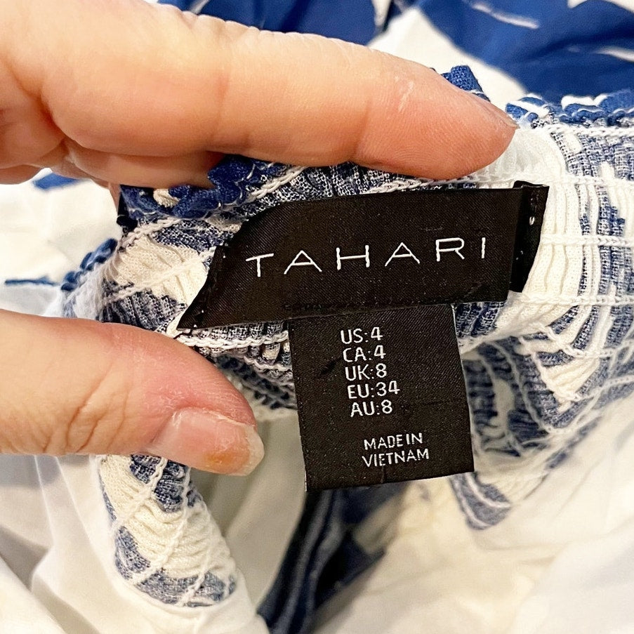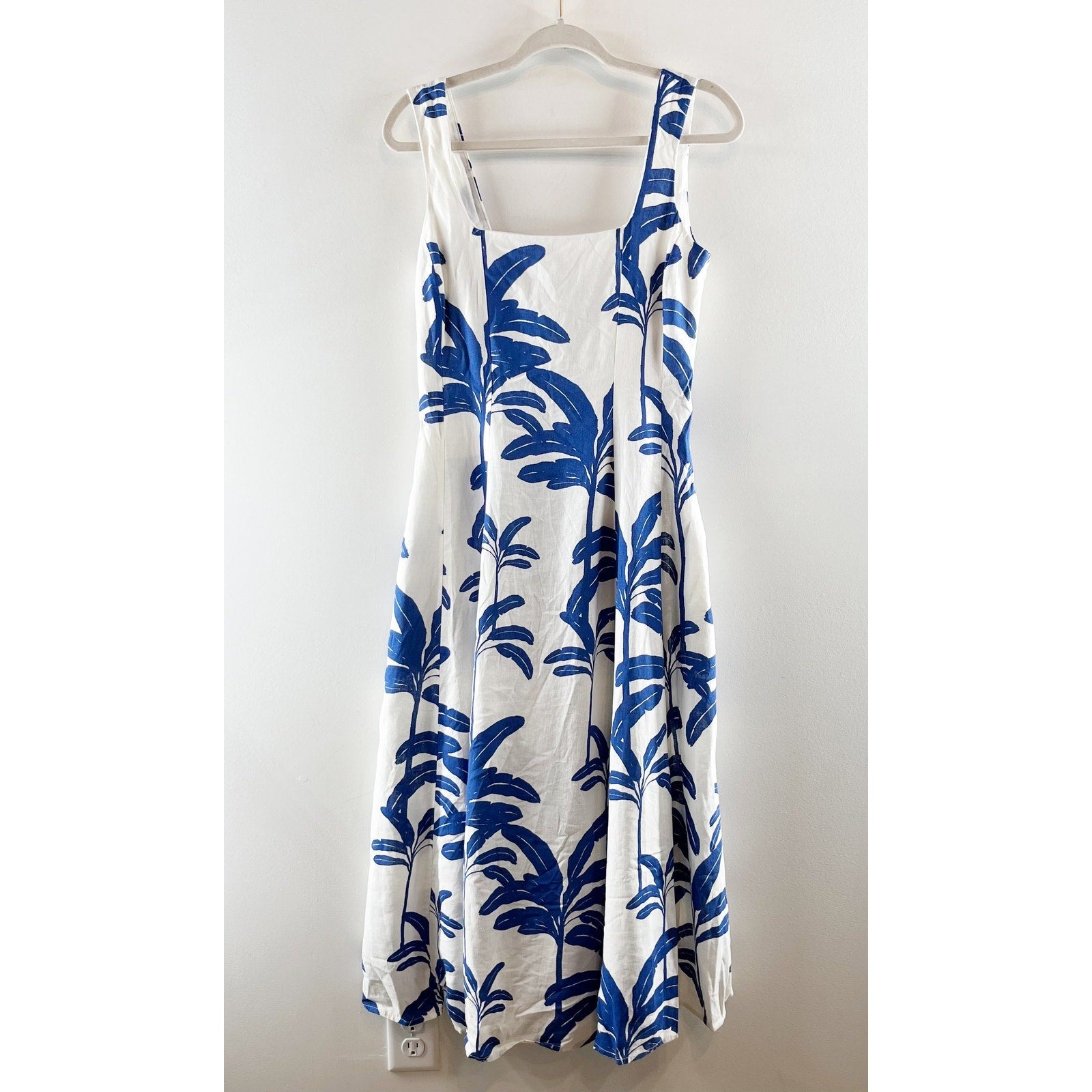 Tahari Linen Blend Floral Tropical Square Neck Sleeveless Midi Dress White 4