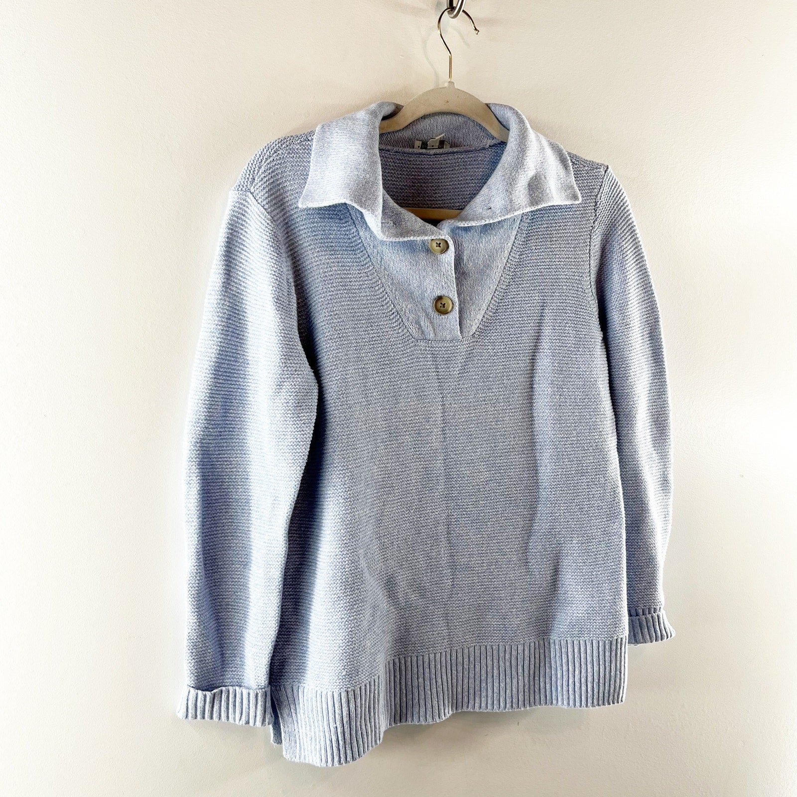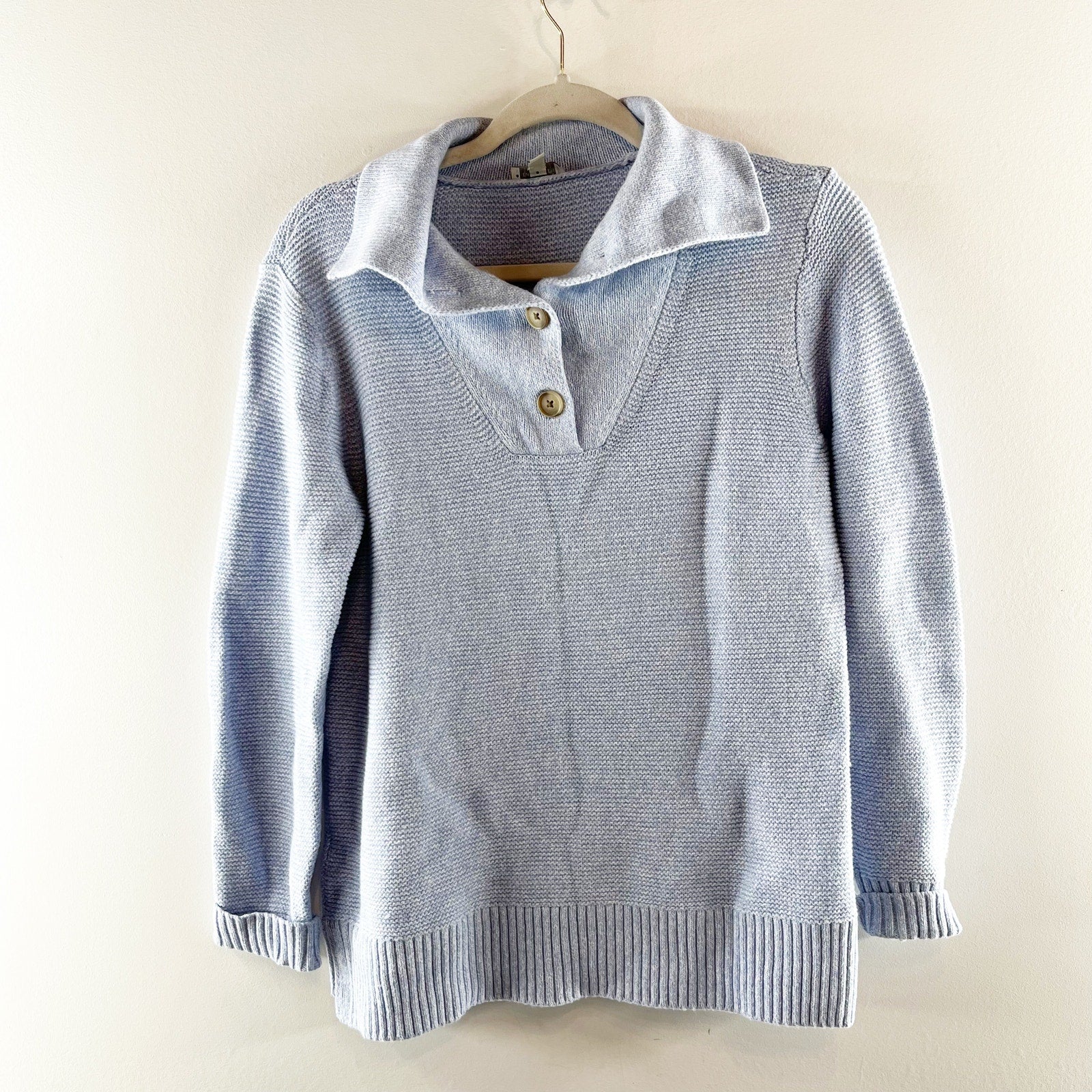 Talbots Button Front Ribbed Breton Long Sleeve Pullover Sweater Blue Small