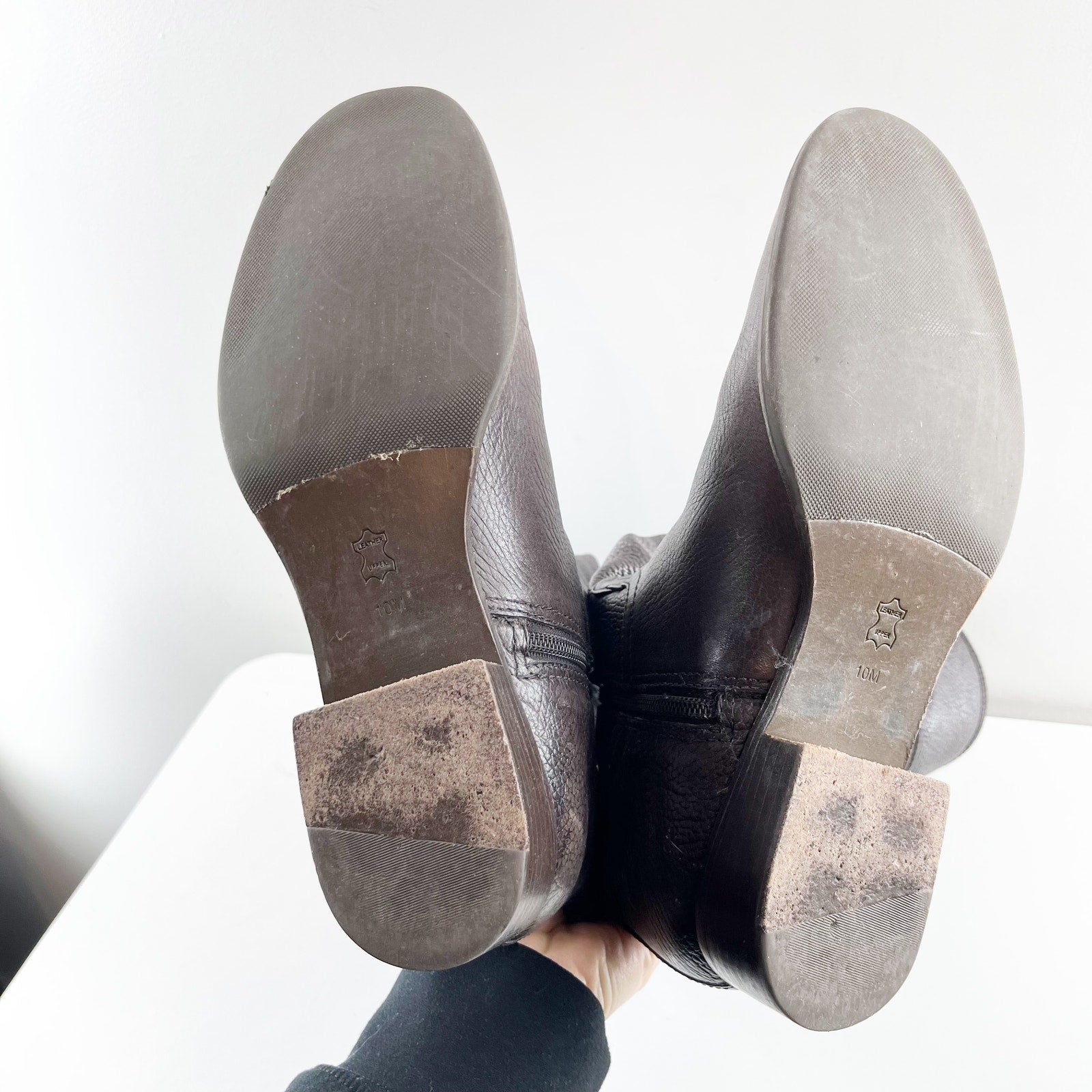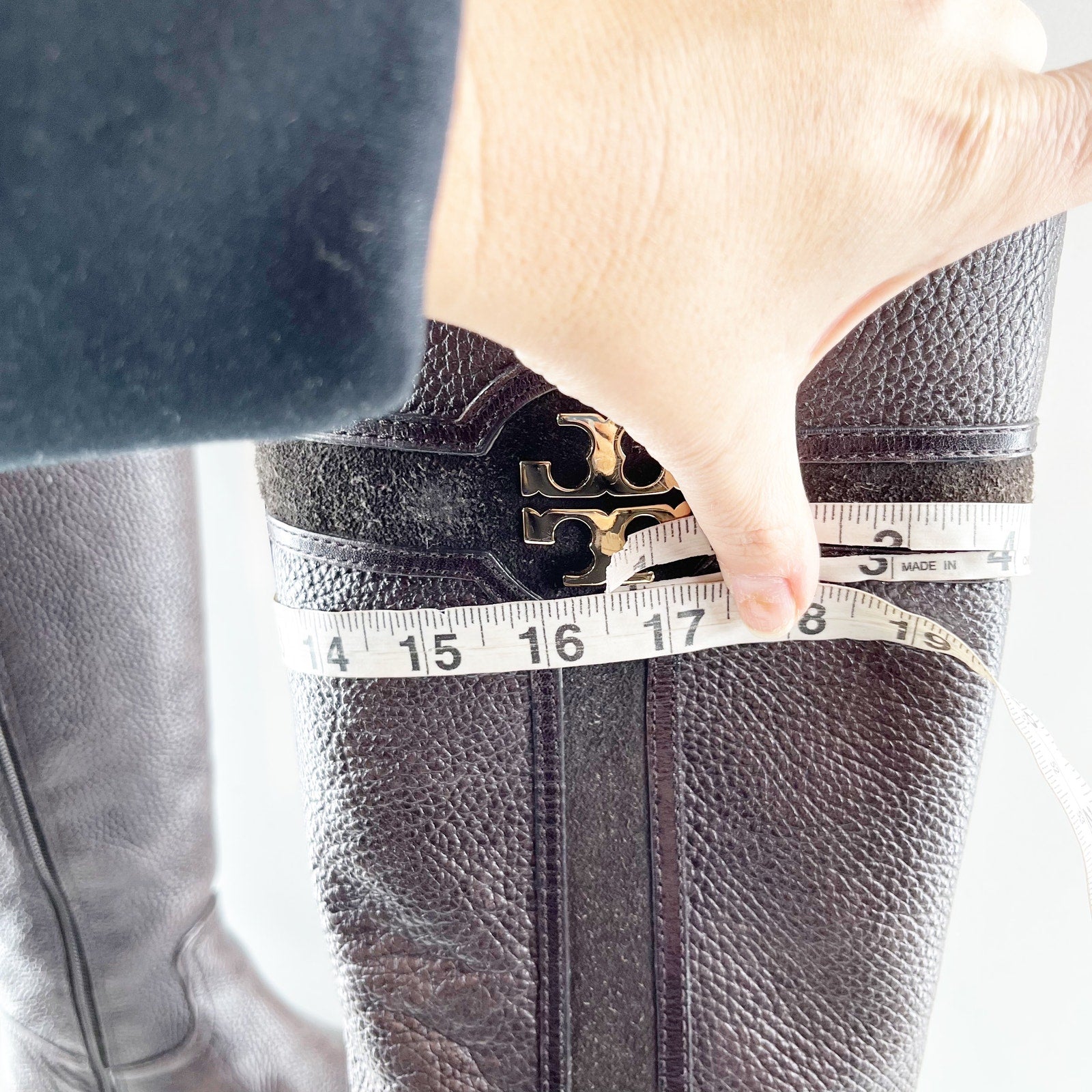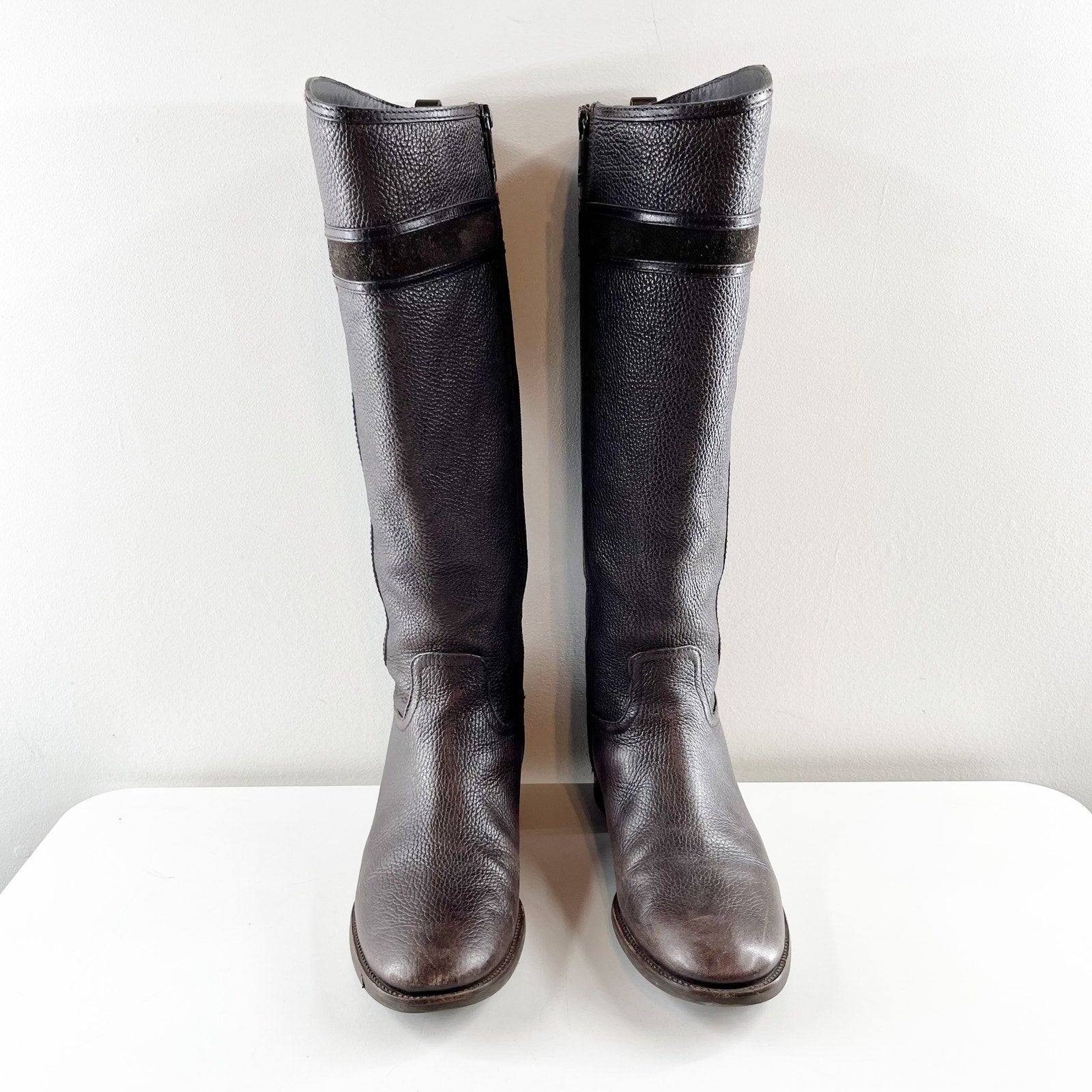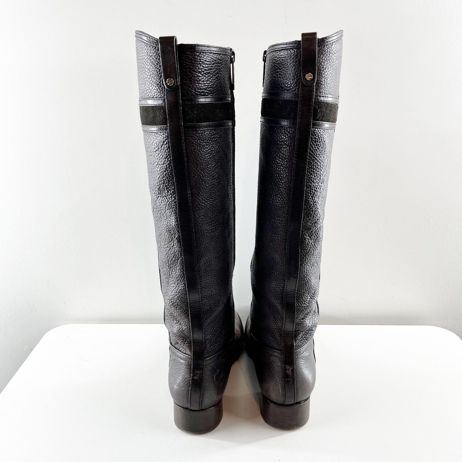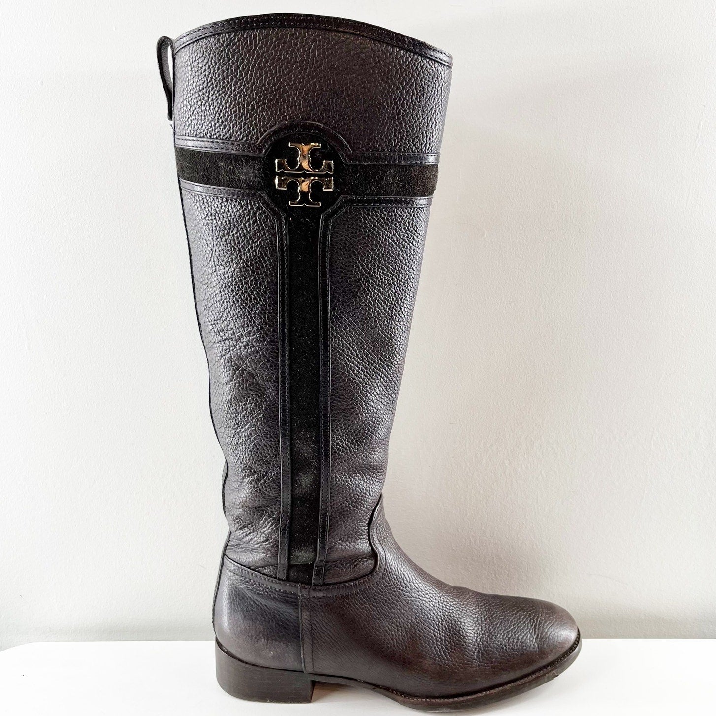 Tory Burch Alaina Pebbled Leather Tall Riding Boots Black Dark Brown 10