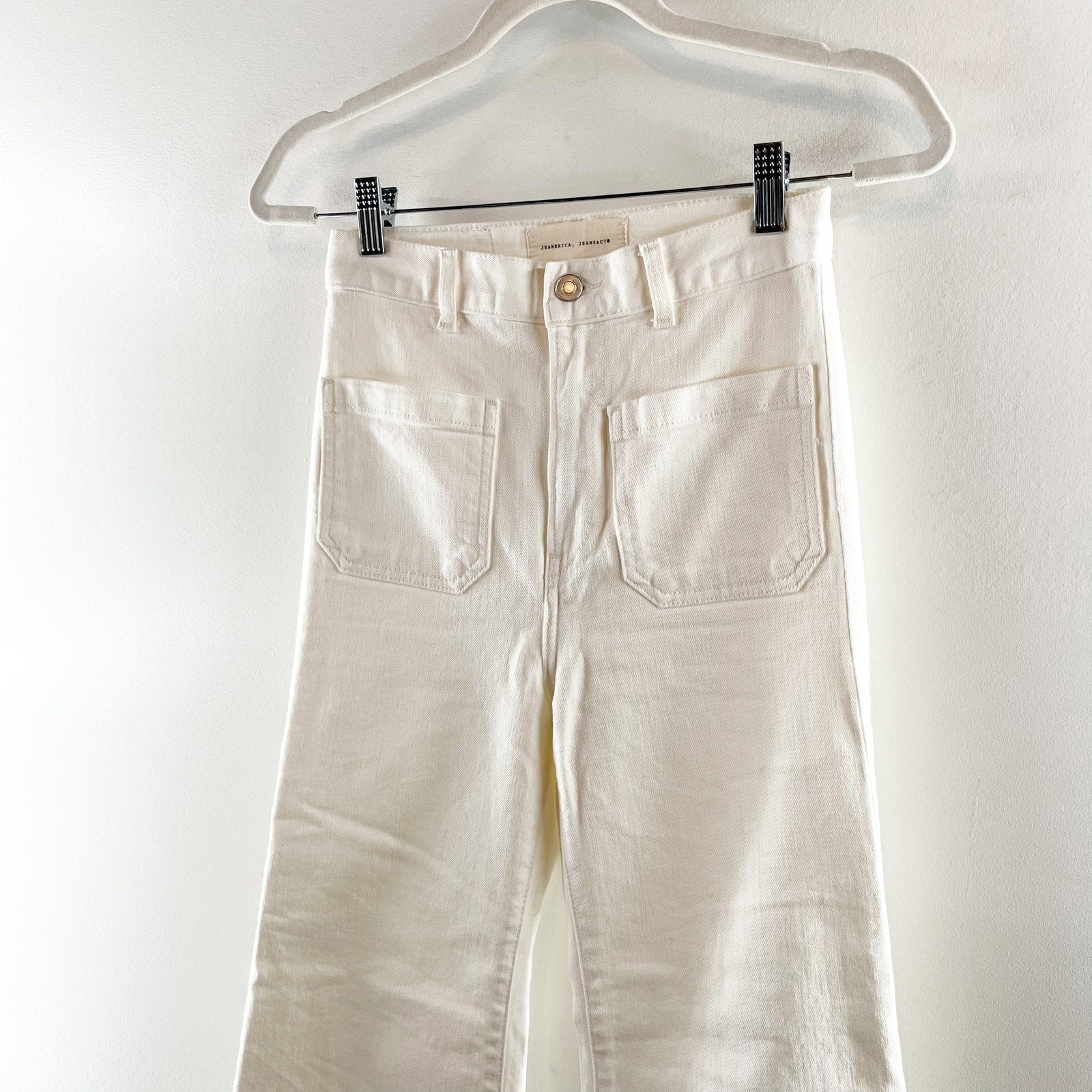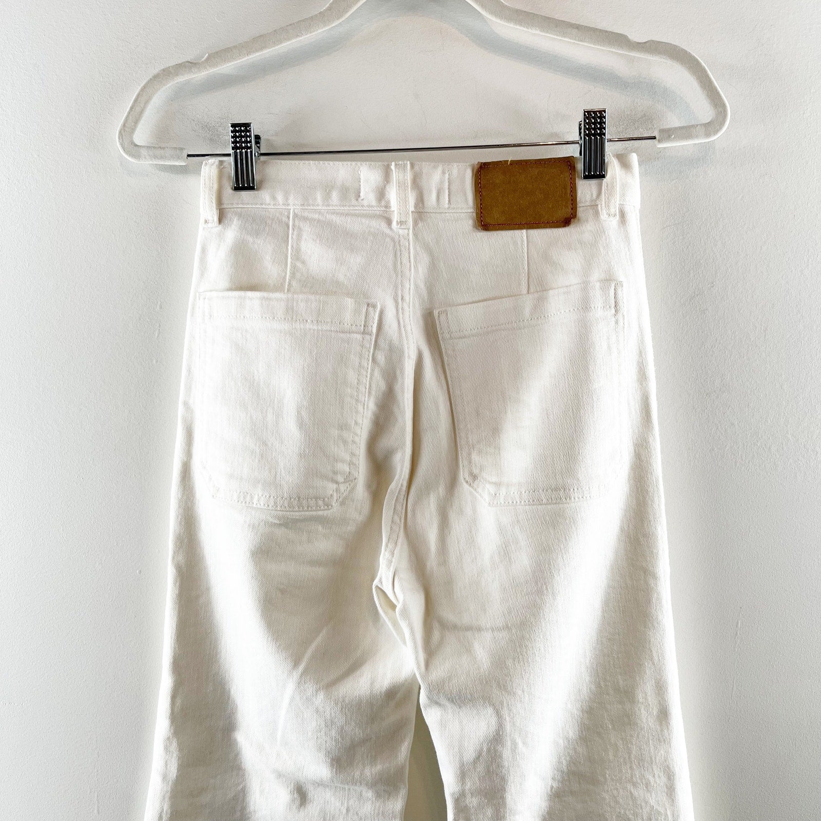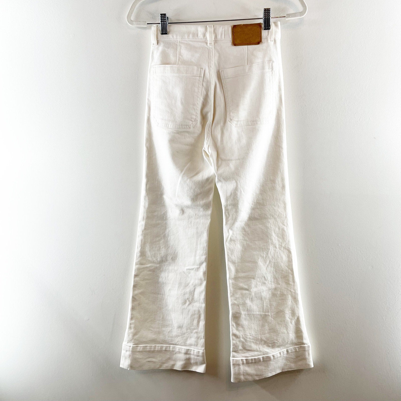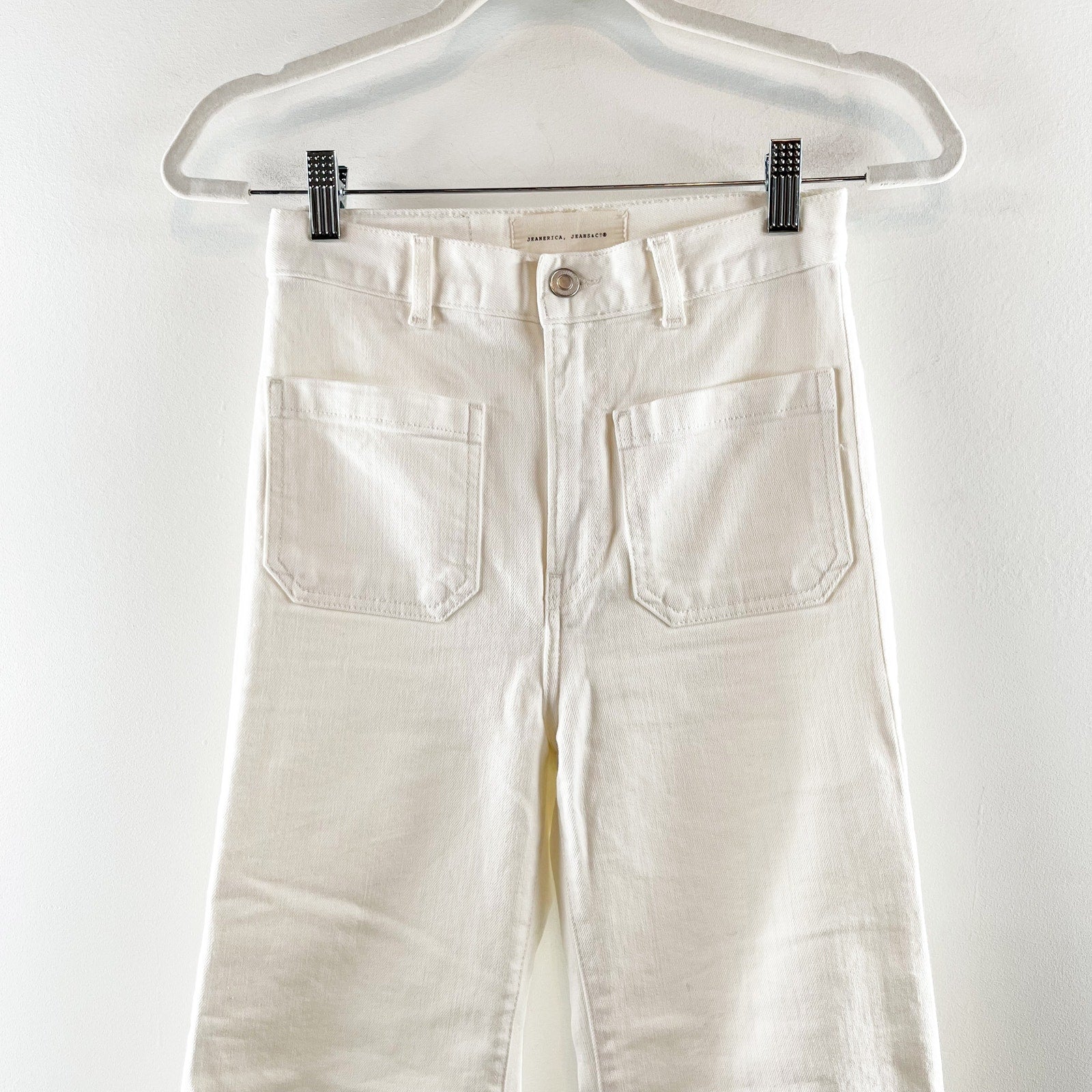 Tuckernuck Jeanerica High Rise Patch Pocket Flare Jeans Natural White 24
