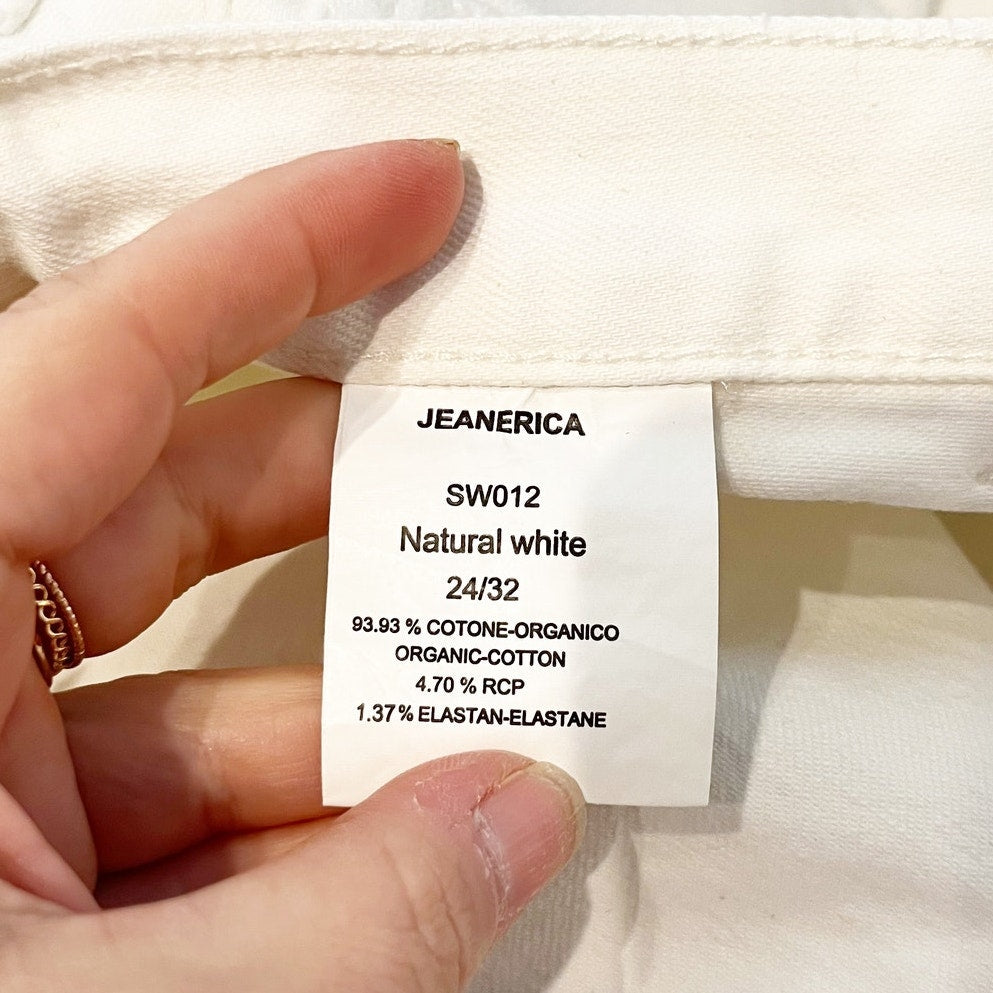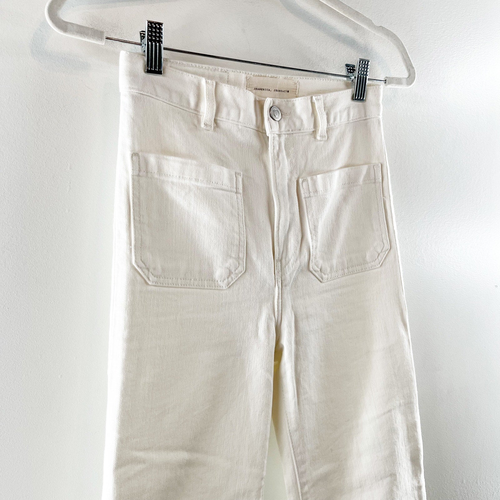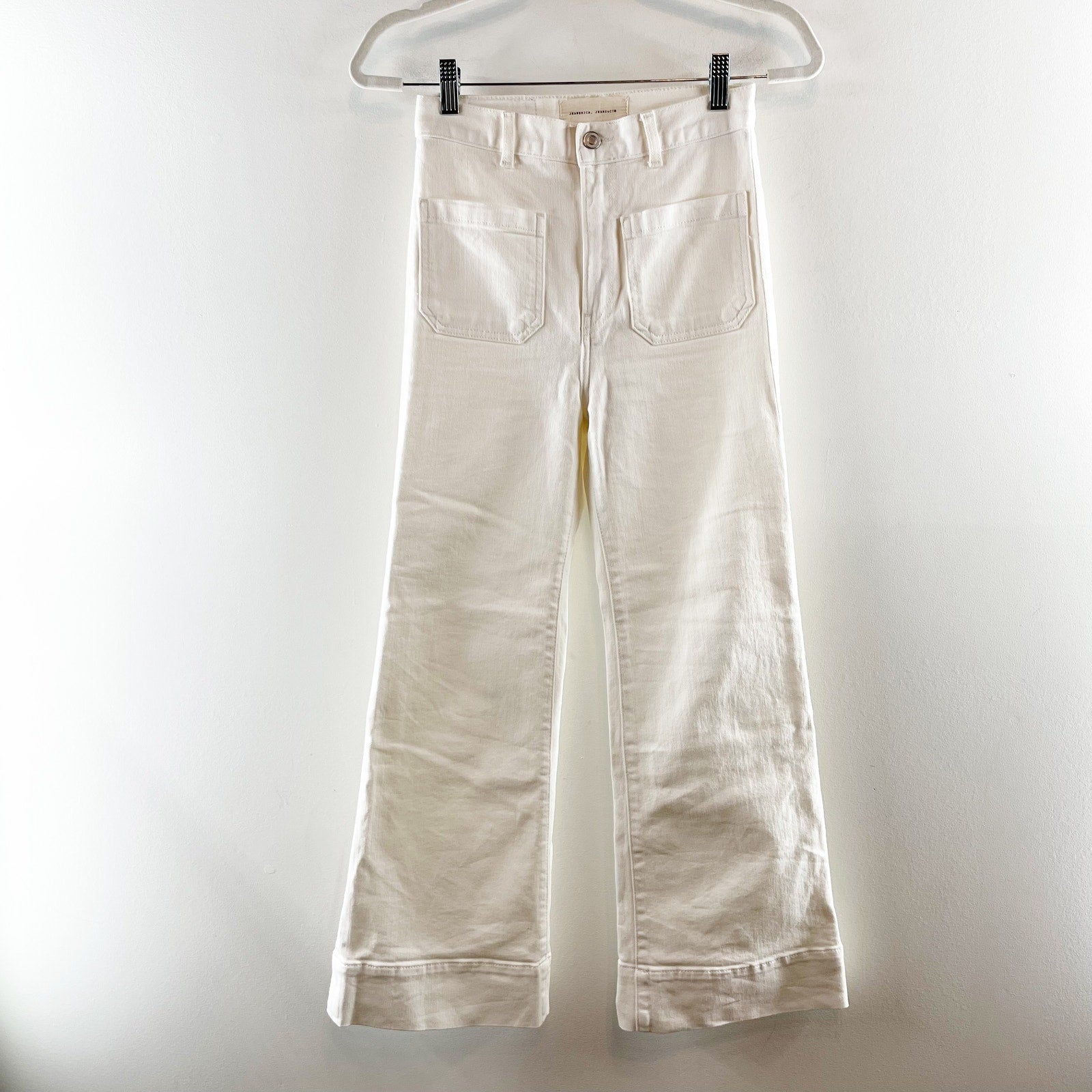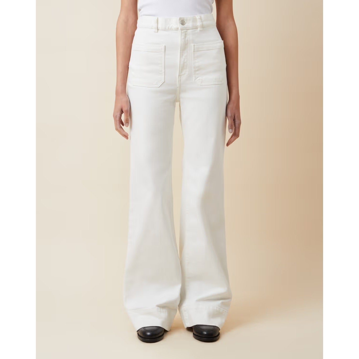Tuckernuck Jeanerica High Rise Patch Pocket Flare Jeans Natural White 24