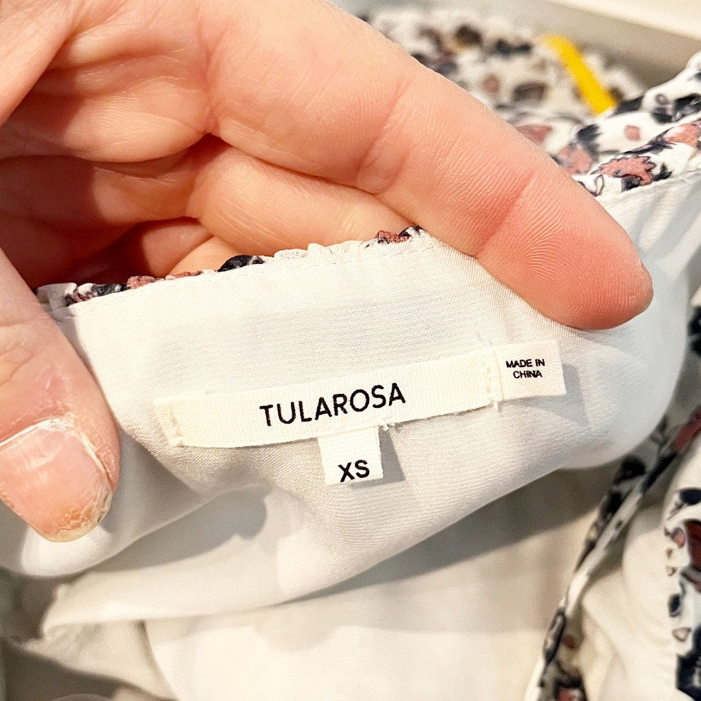 Tularosa Gloria Floral Tiered Ruffle Tie Strap Mini Dress White Blue XS