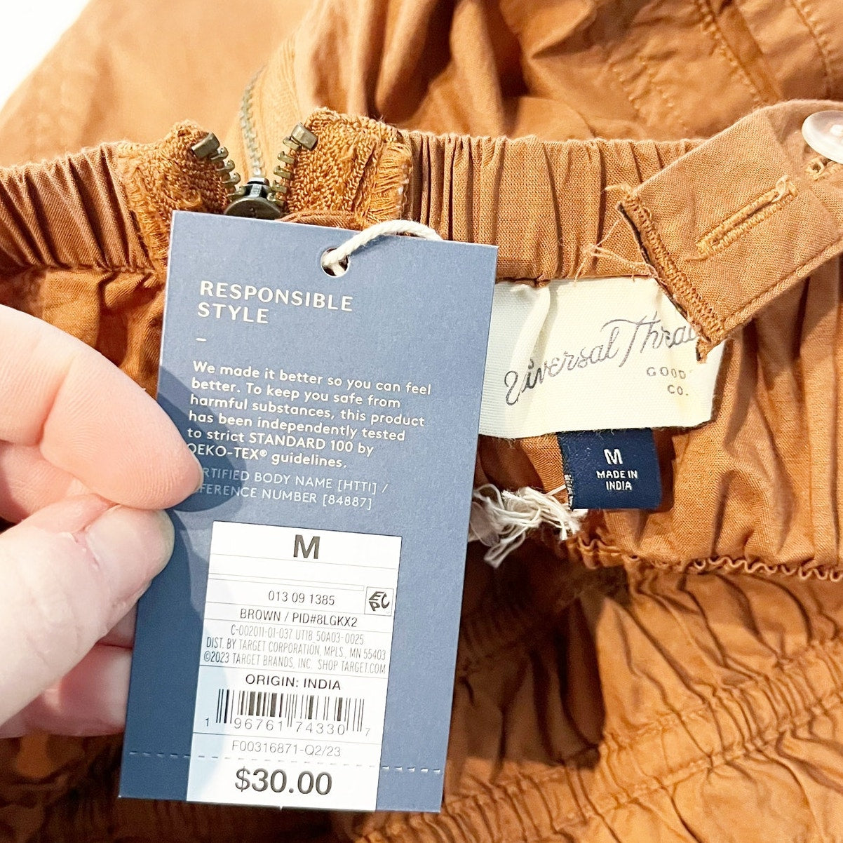 Universal Thread Smocked Waist Square Neck Straight Leg Jumpsuit Brown Medium
