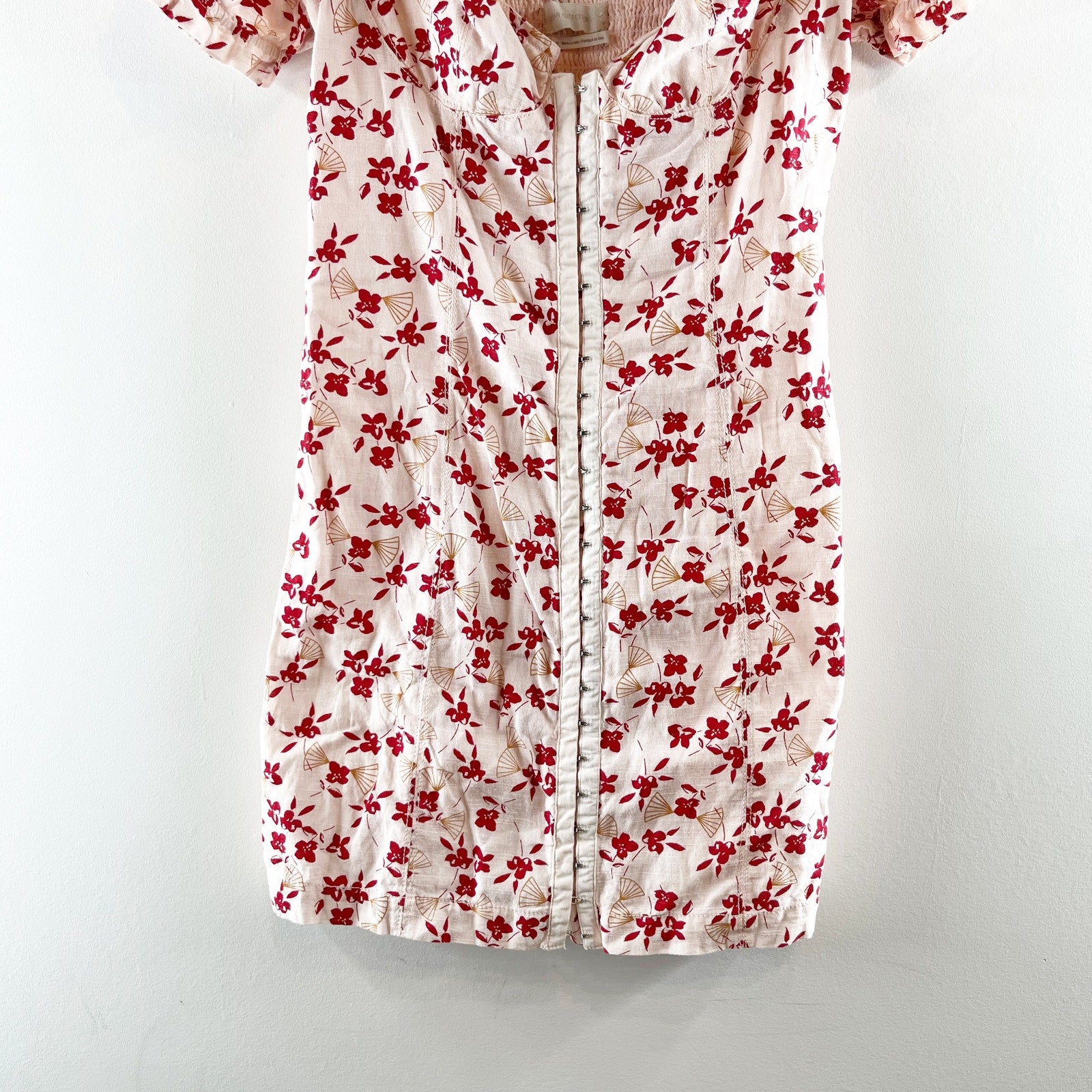 Urban Outfitters Britney Hook & Eye Puff Short Sleeve Mini Dress White Red Small