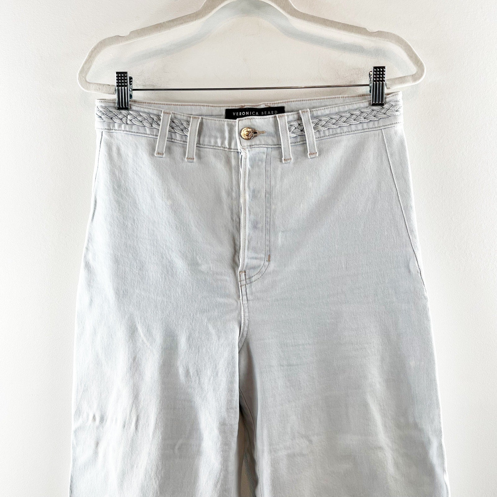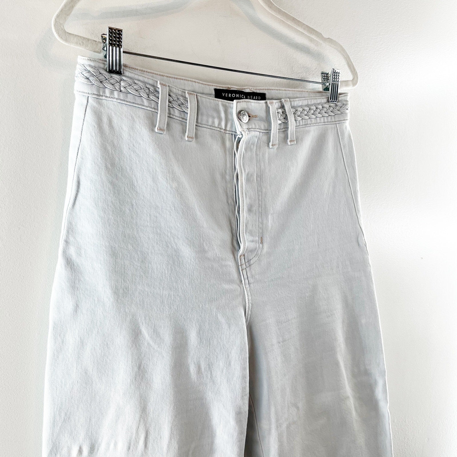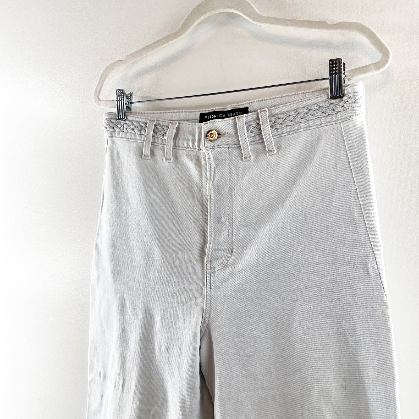 Veronica Beard Grant Braided Waist Extra High Rise Wide Leg Jeans Aspen Blue 10
