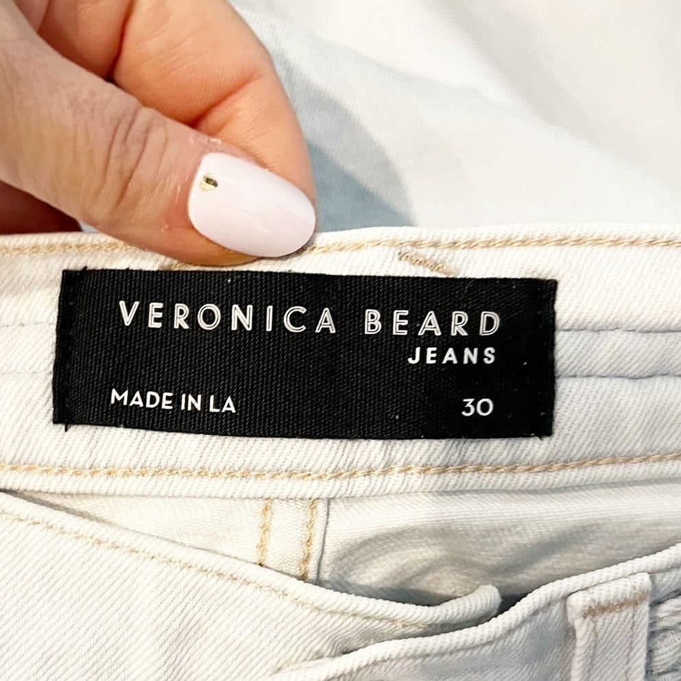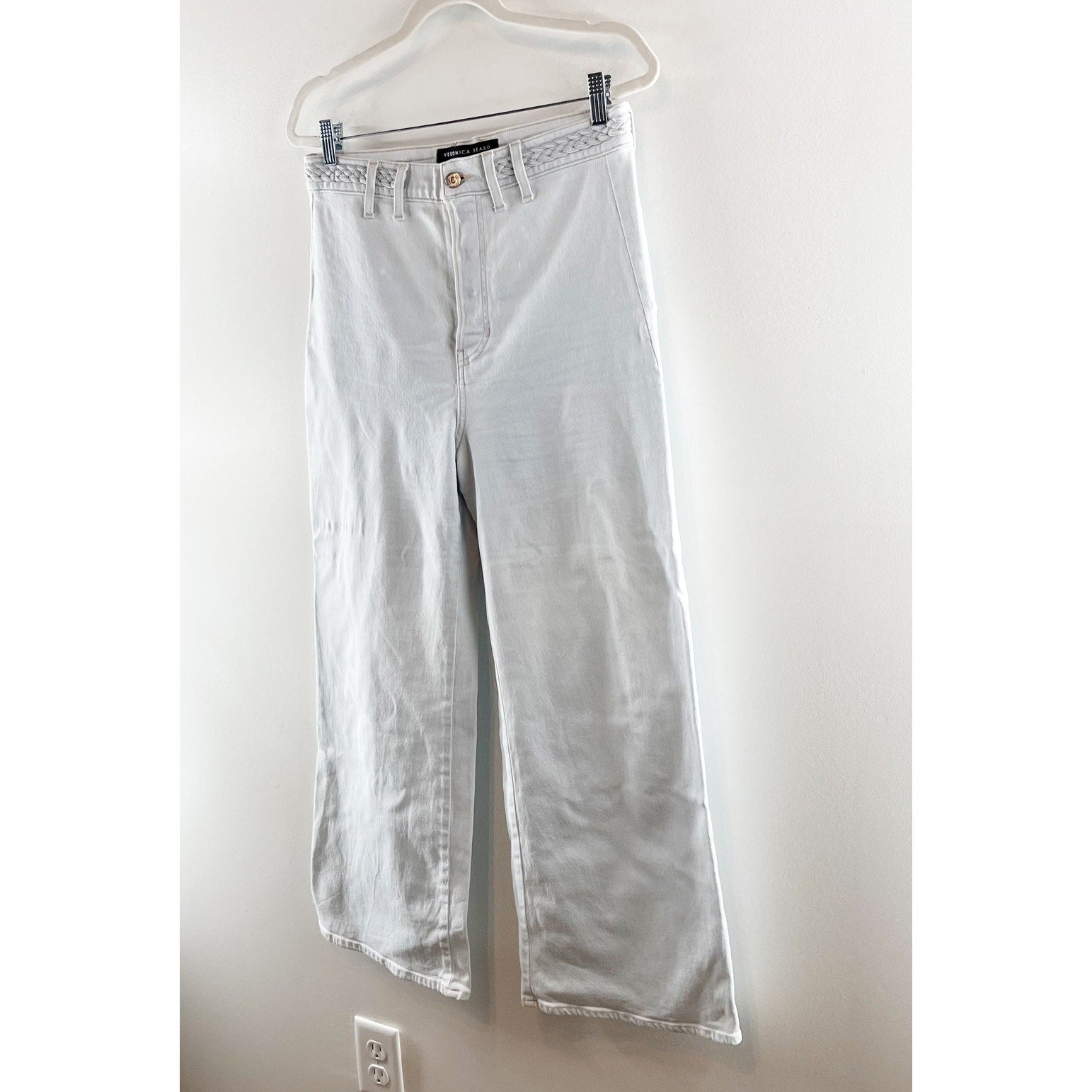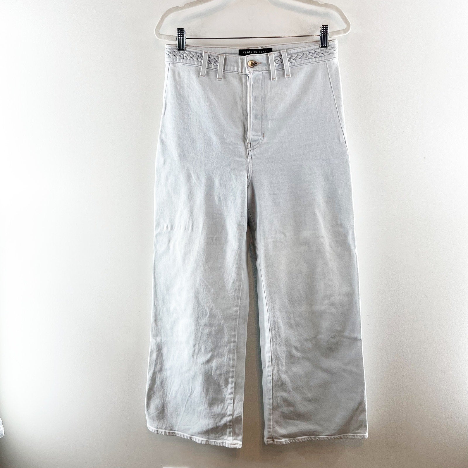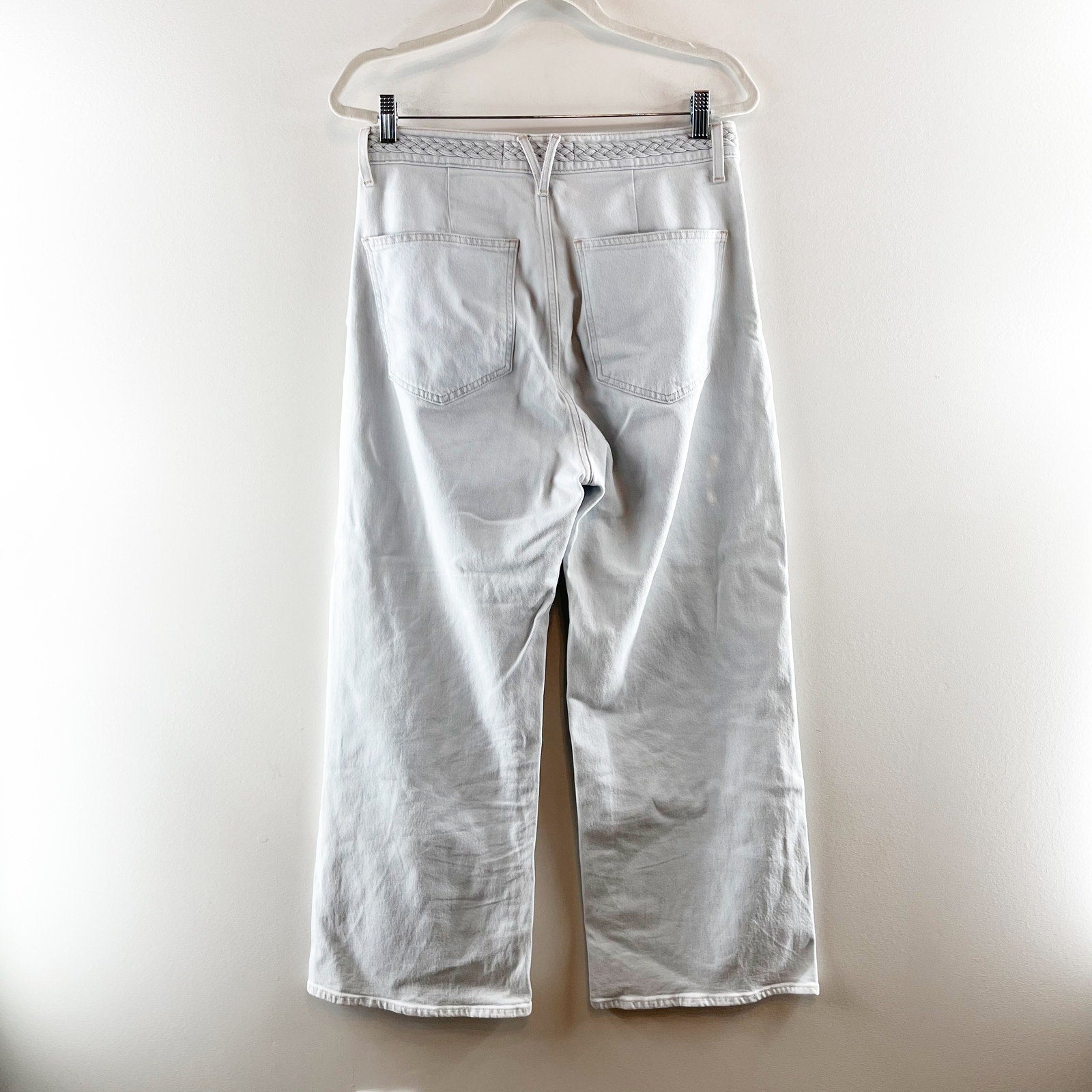 Veronica Beard Grant Braided Waist Extra High Rise Wide Leg Jeans Aspen Blue 10