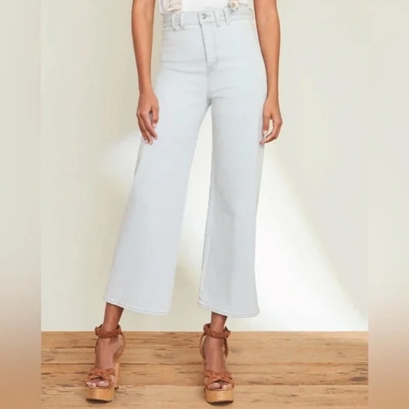 braided waist detail, wide leg, cropped, high waisted, light blue wash, denim, jeans