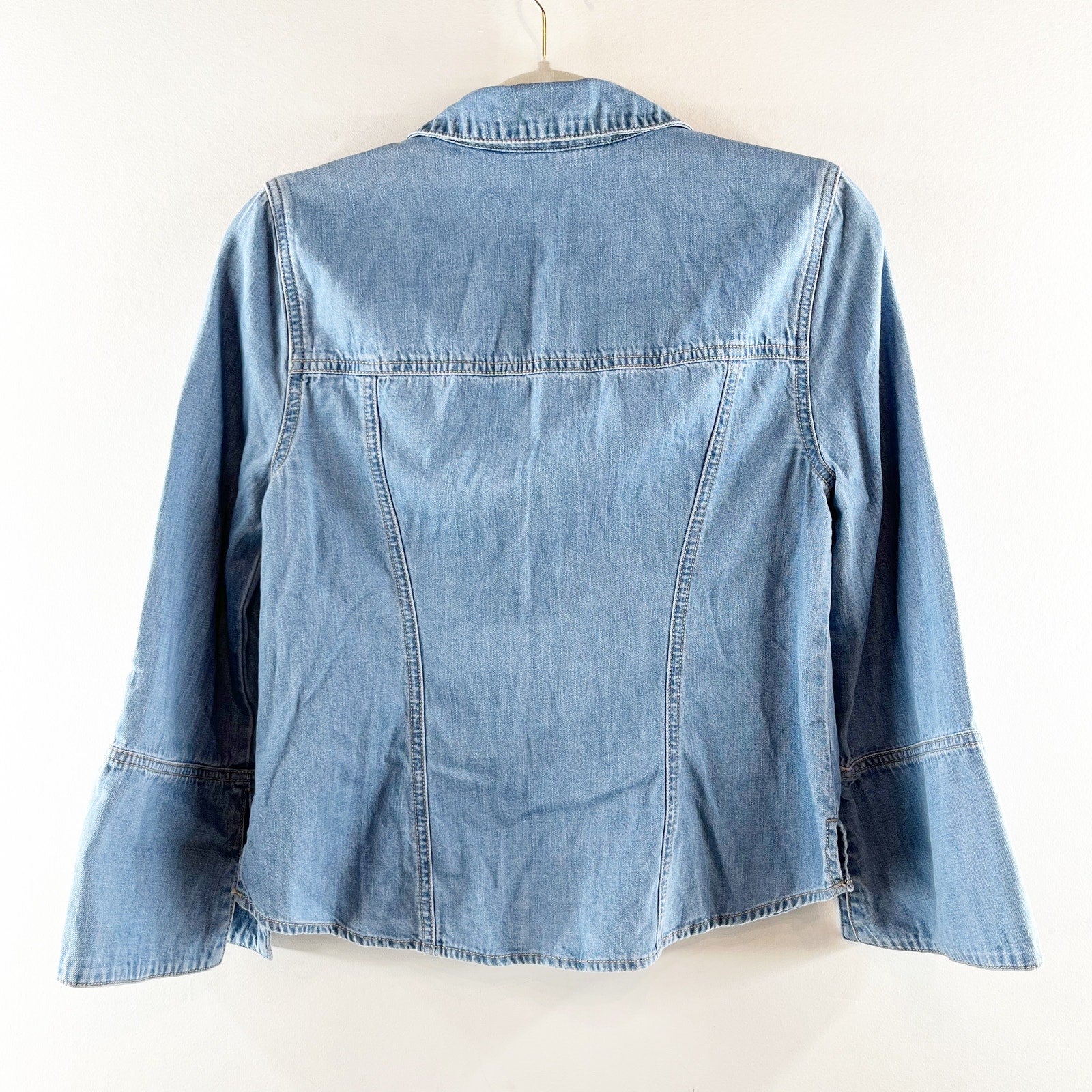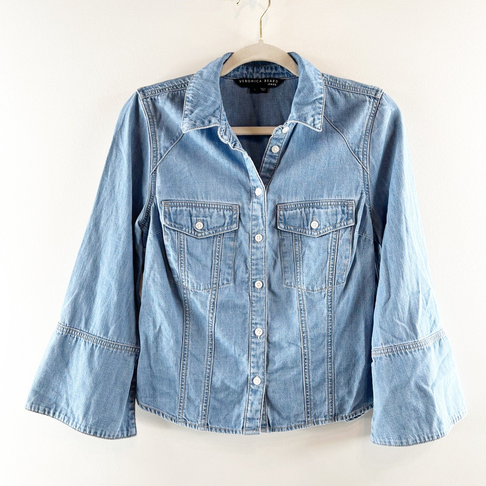 Veronica Beard Tivi Long Sleeve Chambray Denim Button-Down Shirt Iceberg Small