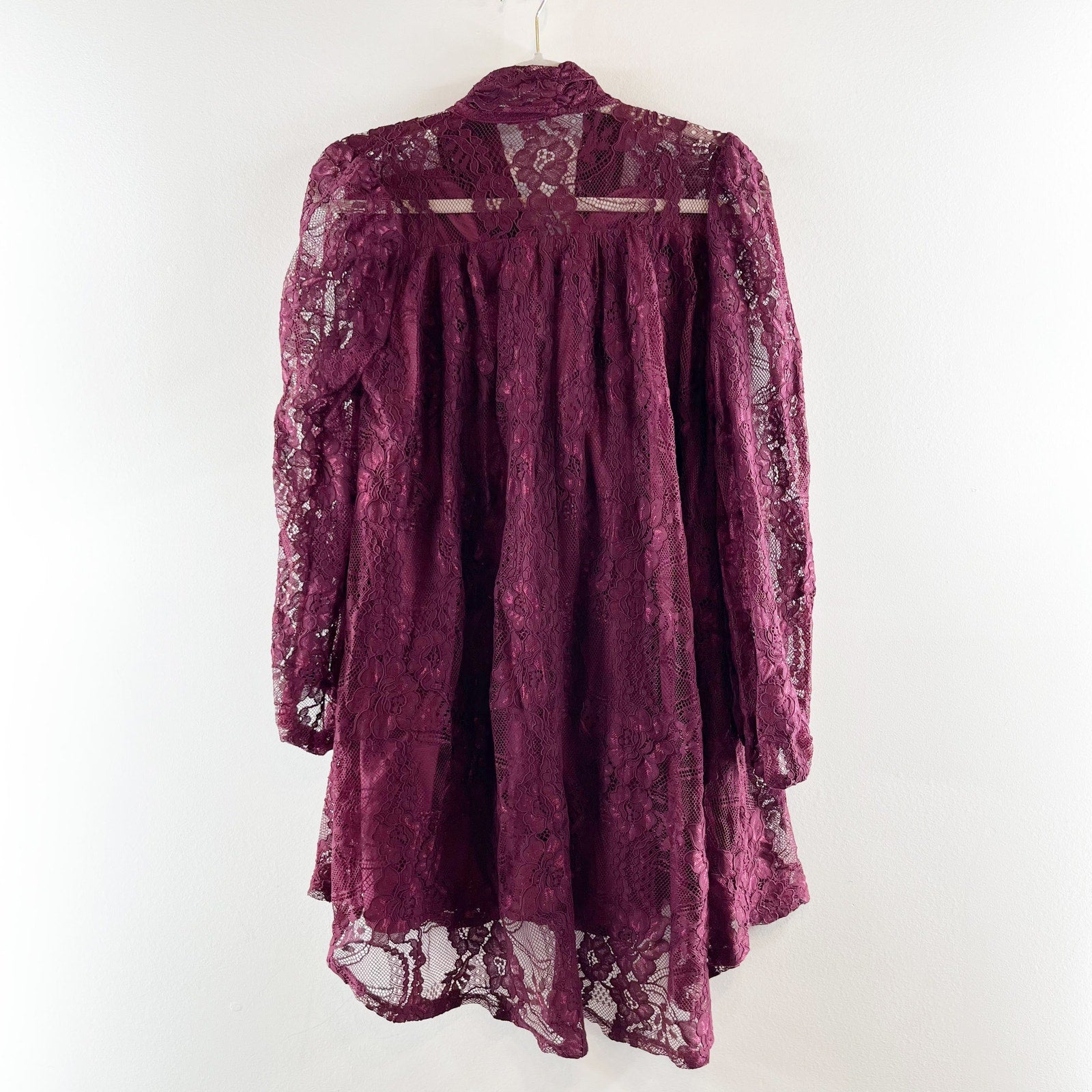 VICI Rather Be Necktie Lace Long Sleeve Tunic Mini Dress Maroon Burgundy Small