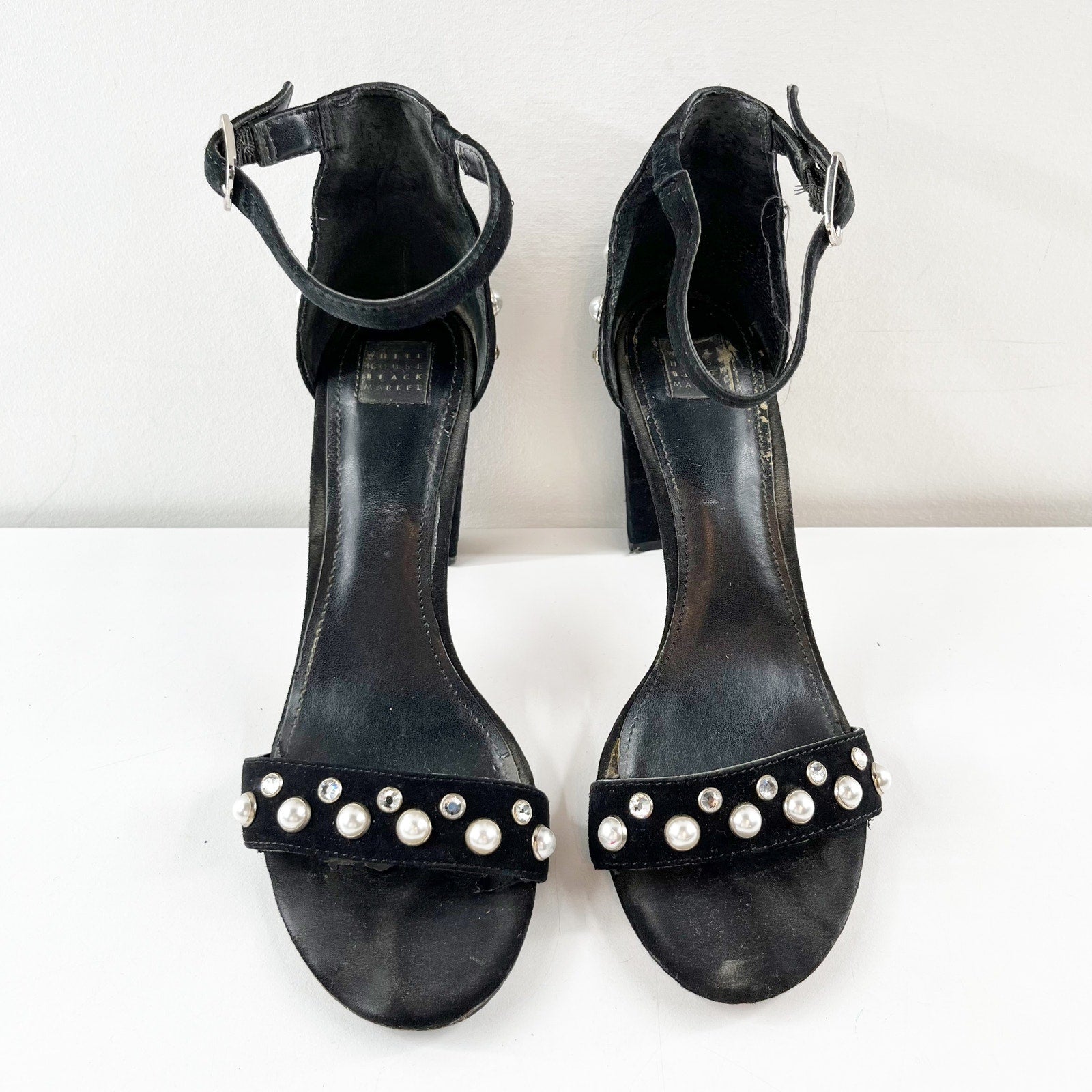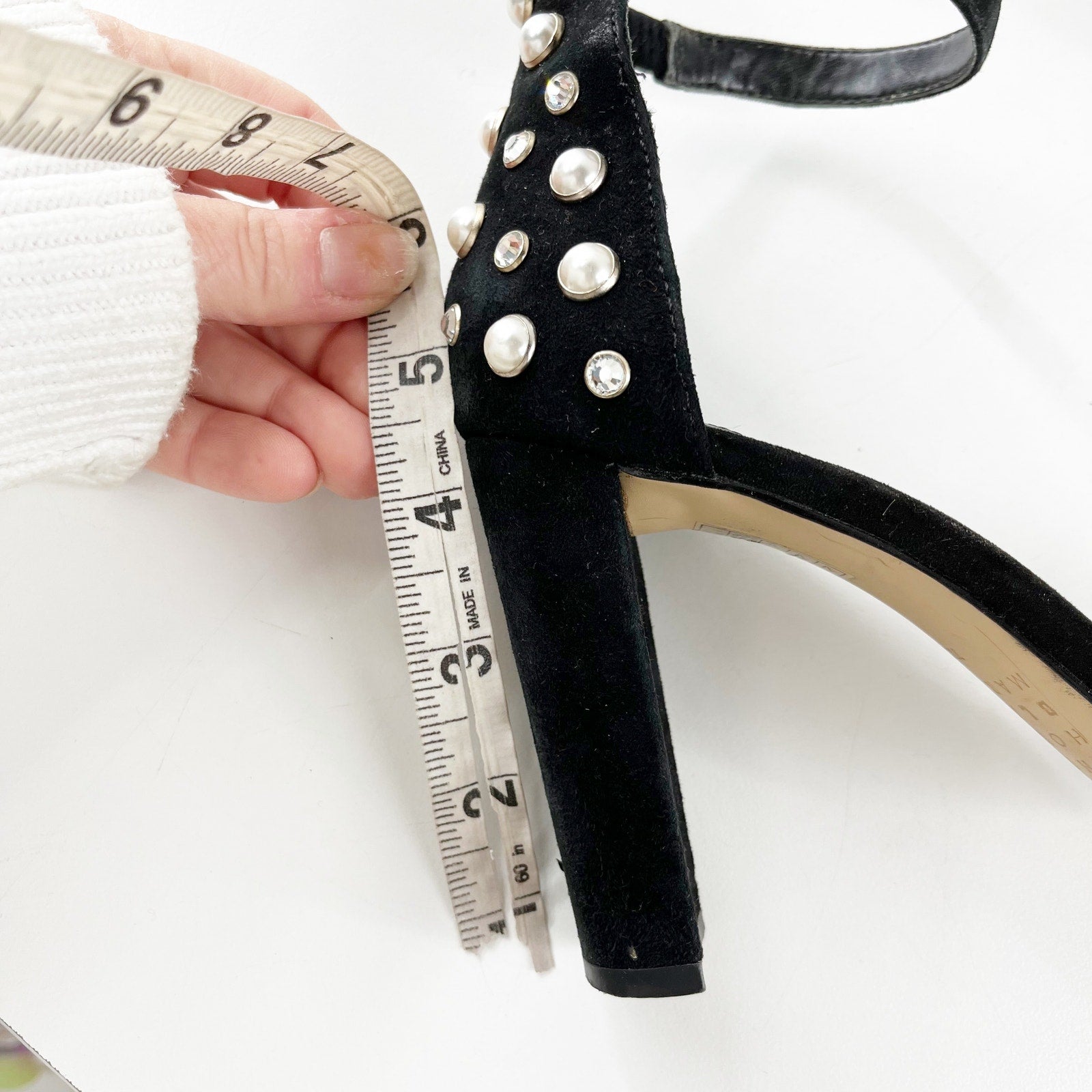 White House Black Market Mylah Pearl Rhinestone Block Heel Sandals Black 7.5